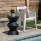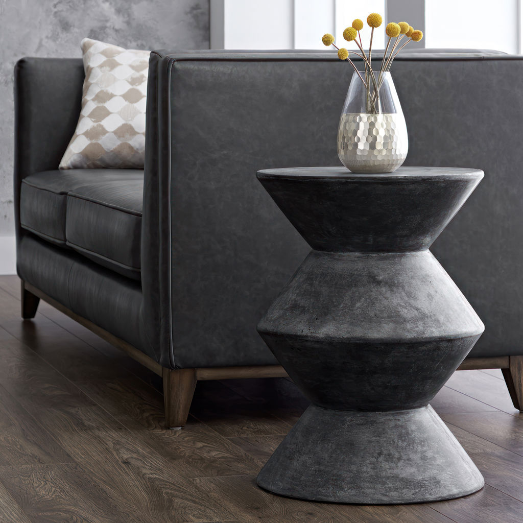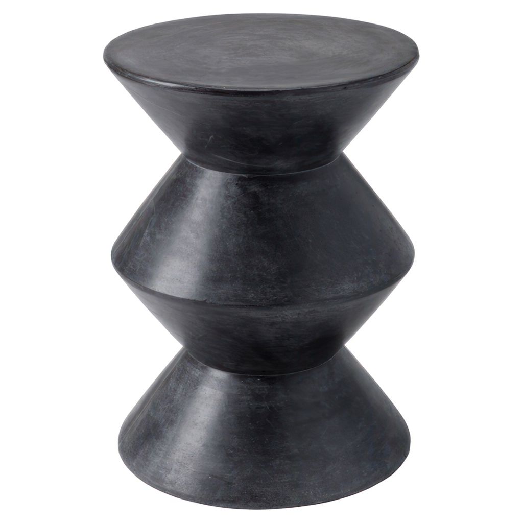 The layers of this cylindrical end table provide dimension and style. Available in white, black and charcoal gray concrete. Each piece is different for a unique vintage finish. Suitable for indoor and outdoor covered spaces.