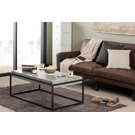 Add an industrial touch to your living room with this coffee table with graphic lines. The rectangular-shaped metal edges seem to support the tabletop and give it an airy look.