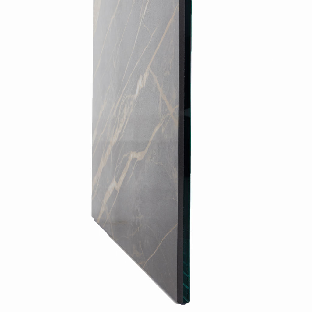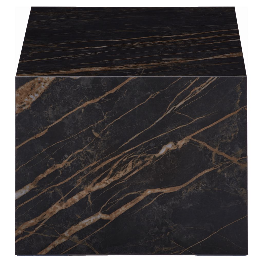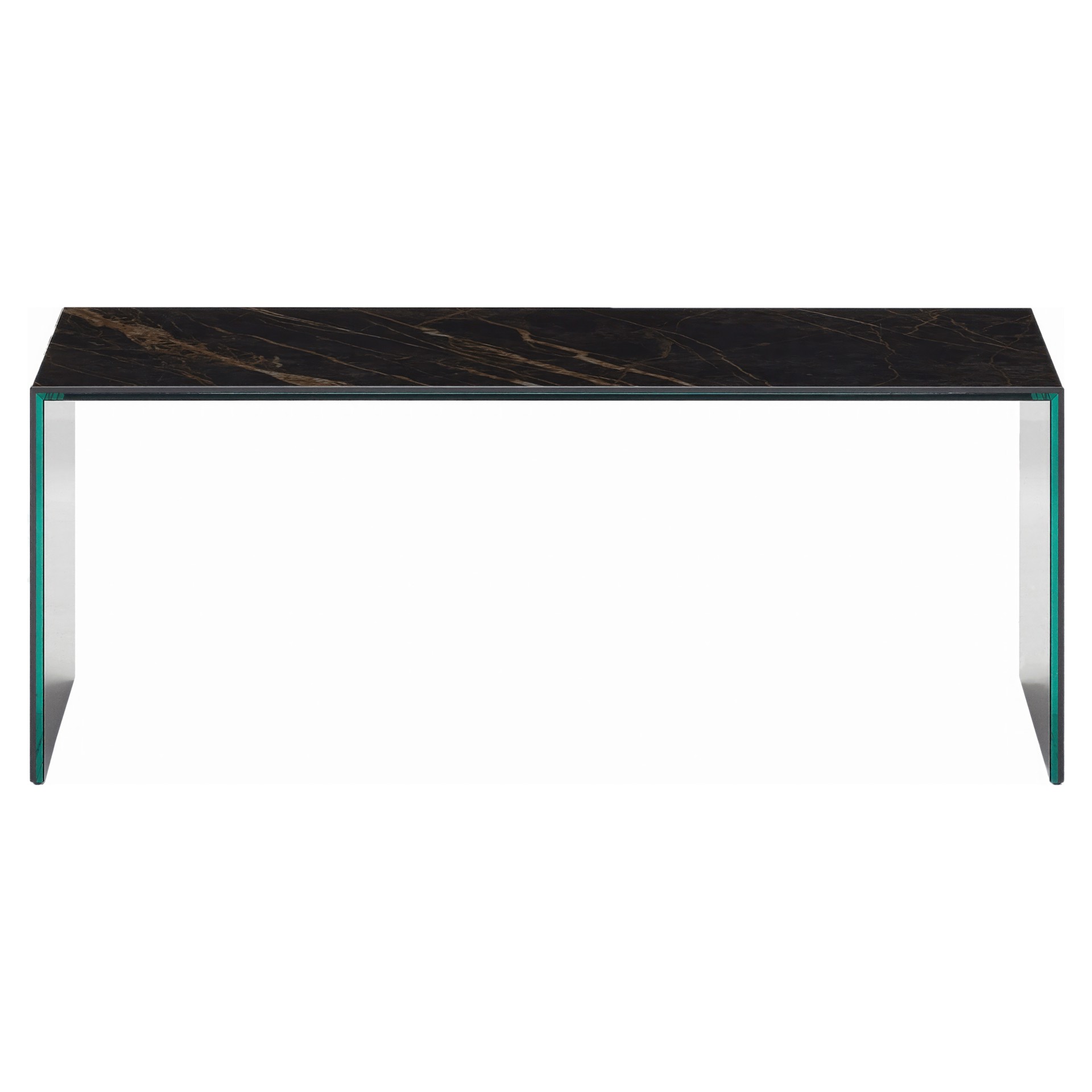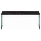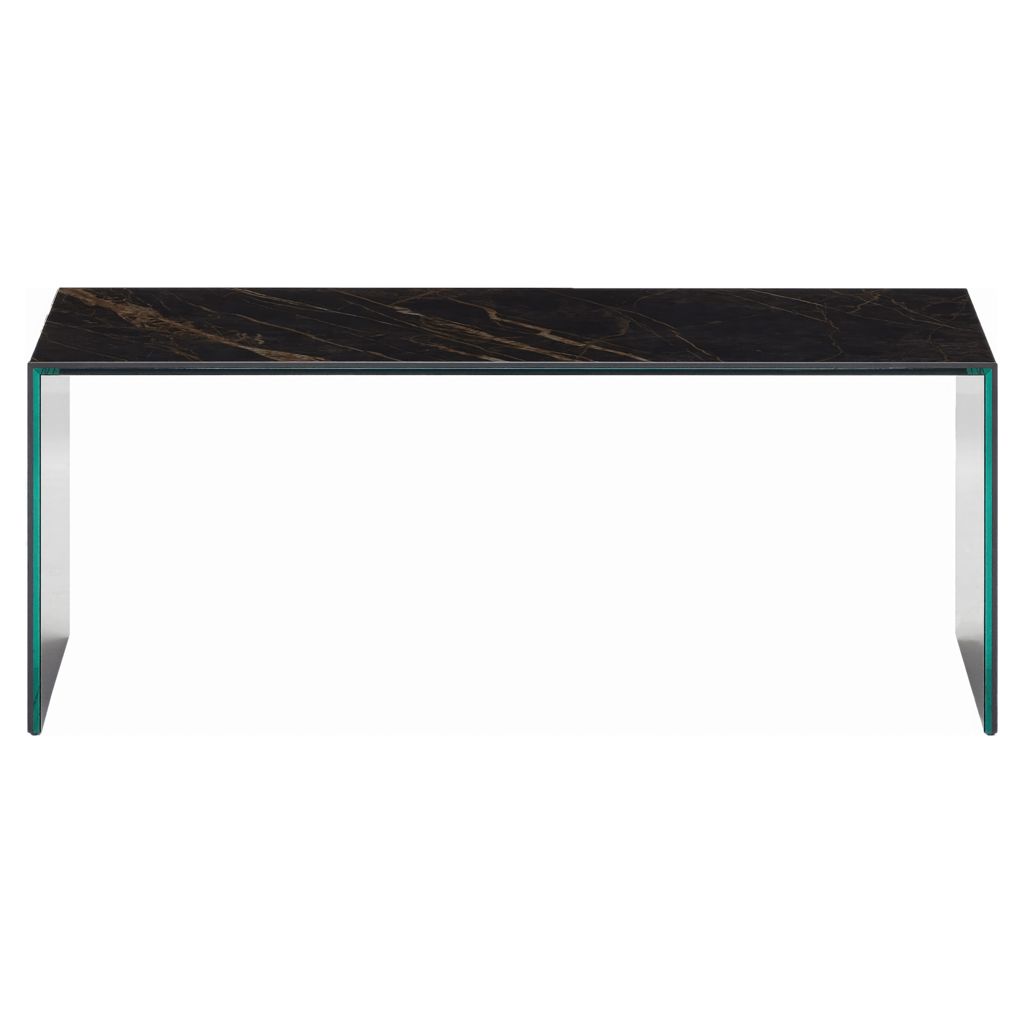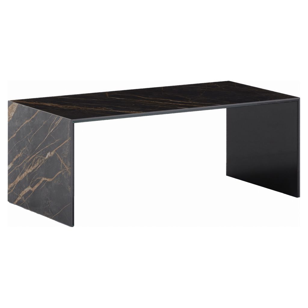 This coffee table embodies contemporary elegance with its bold U-shaped structure. Crafted from a material with sophisticated natural veining, it reveals shades of gray and gold that capture the light in a striking way.