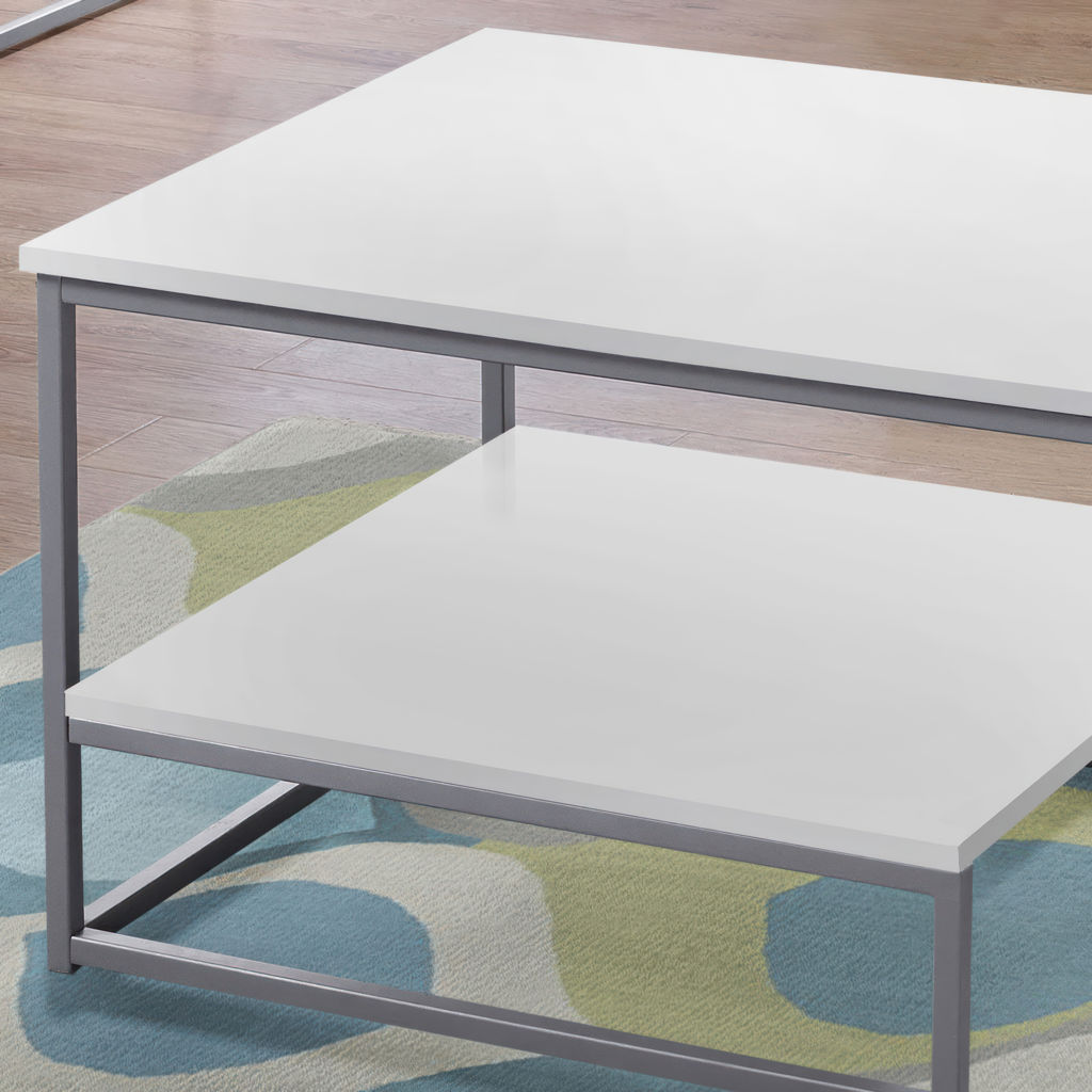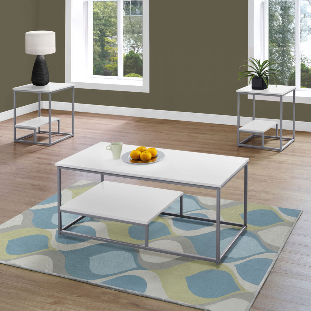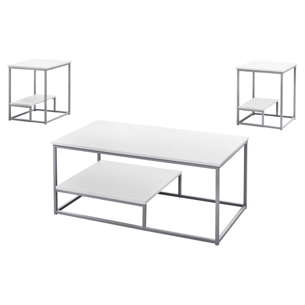 Transform your living space with this modern table set that combines functionality and elegance. The white melamine surface offers exceptional resistance to scratches and stains, making it perfect for everyday use. The silver metal frame ensures remarkable stability while maintaining a sleek, minimalist look.