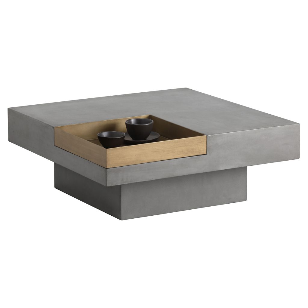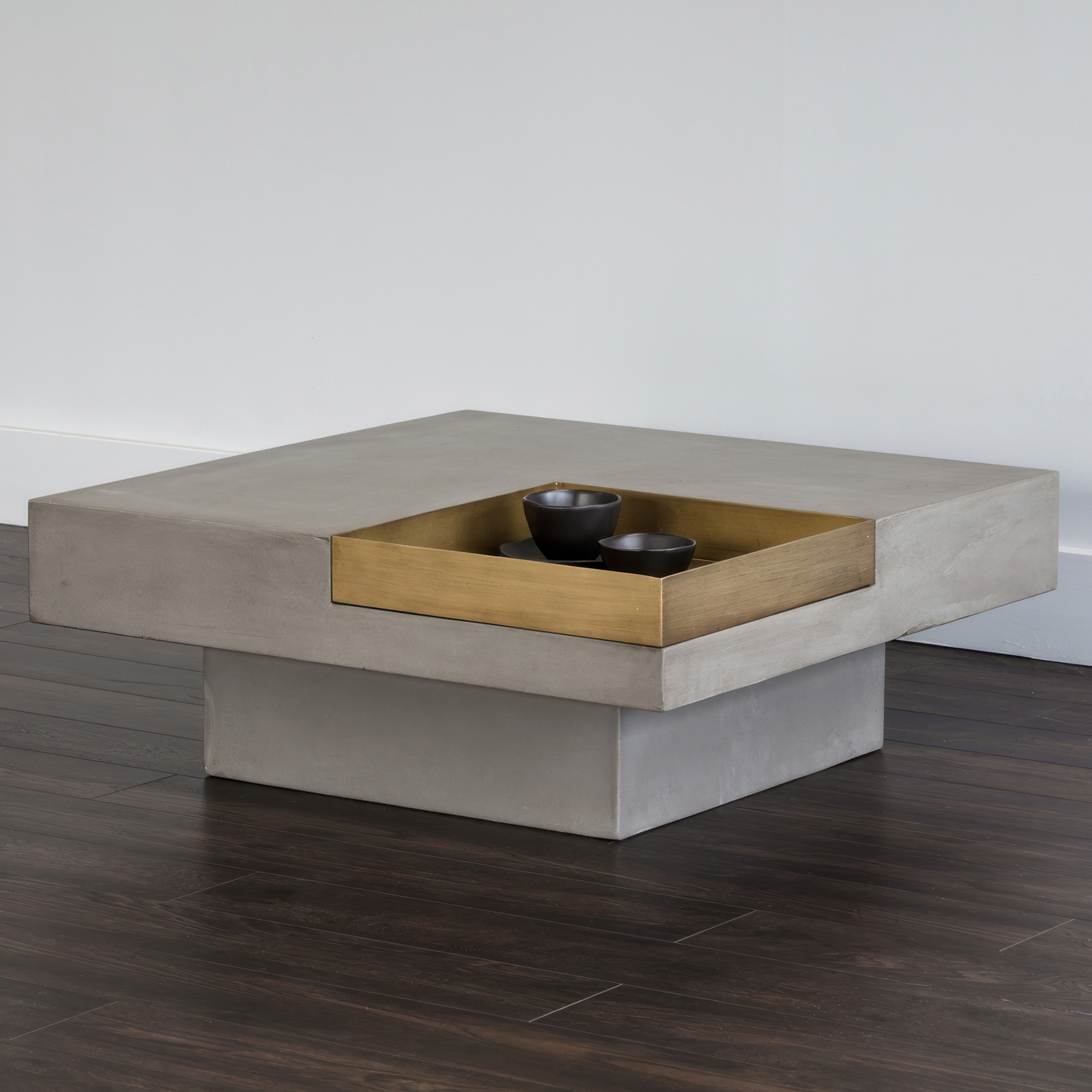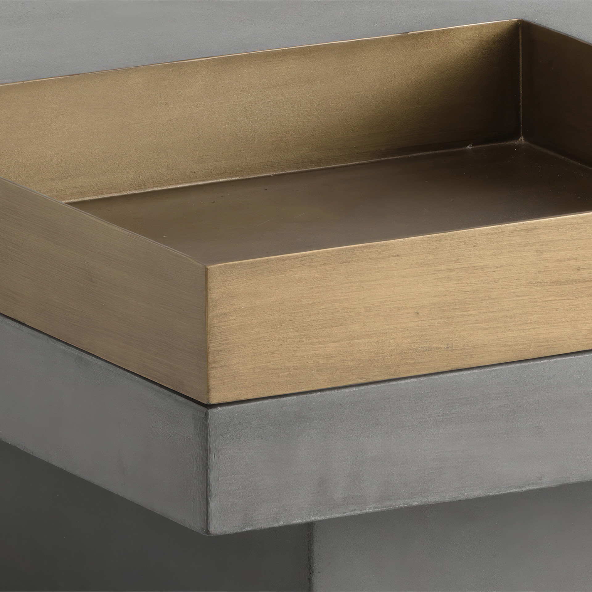 The striking contrast between the industrial modernity of concrete and the golden patina of brass adds a luxurious dimension to your interior. Functional yet sophisticated, it stands as a true piece of contemporary craftsmanship.