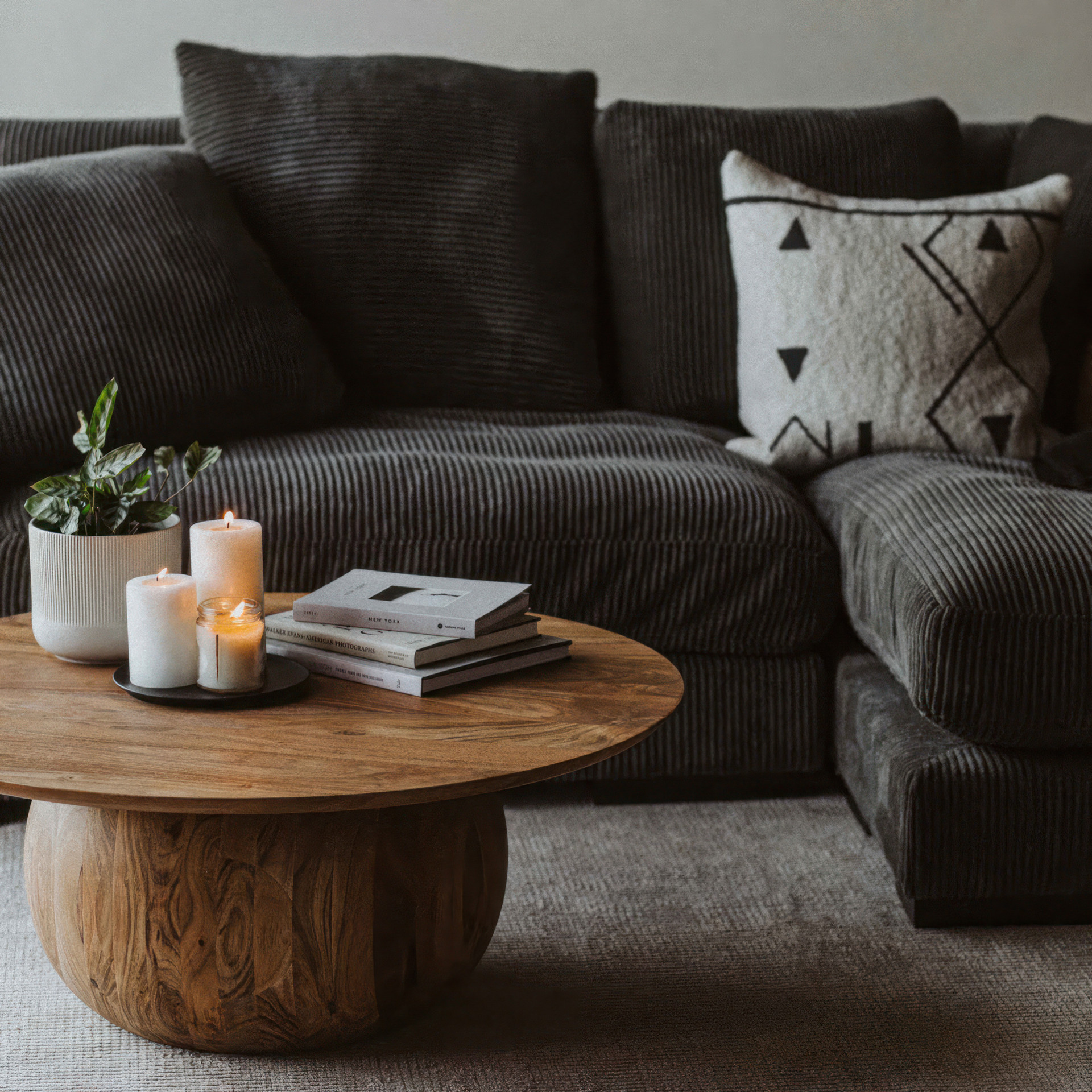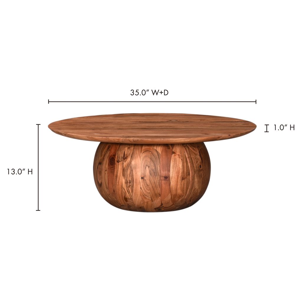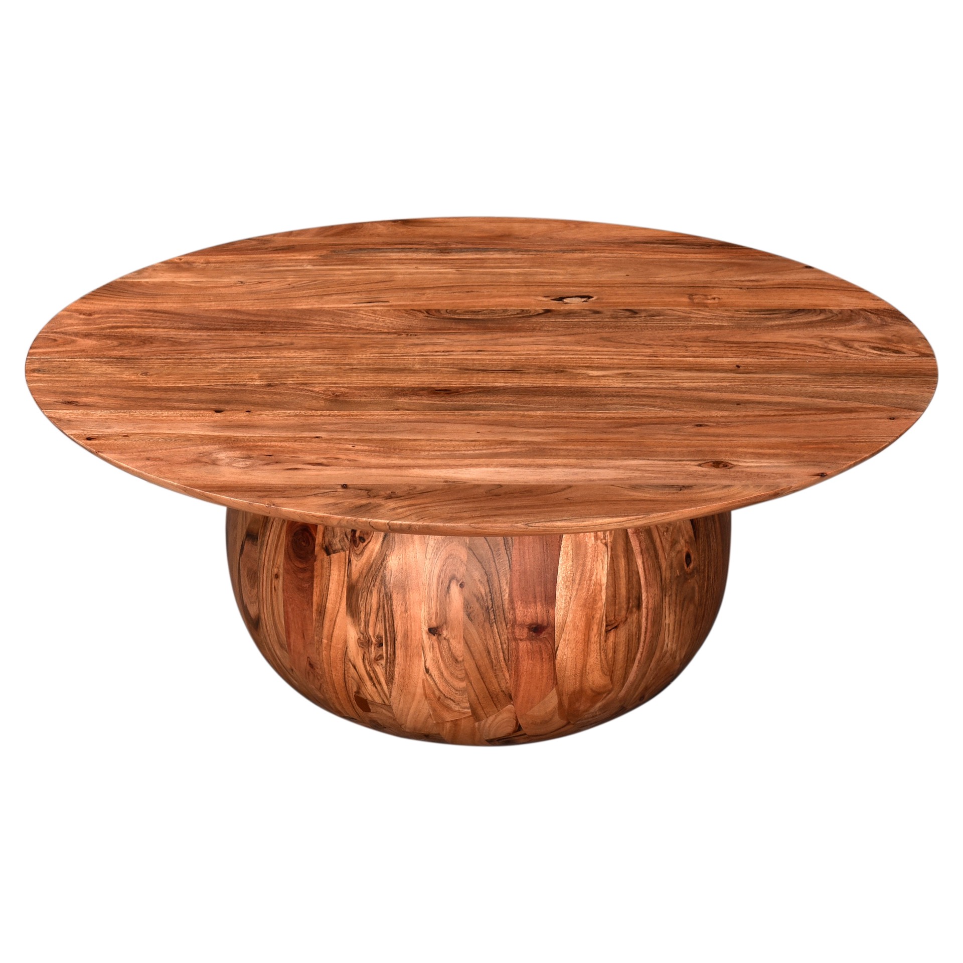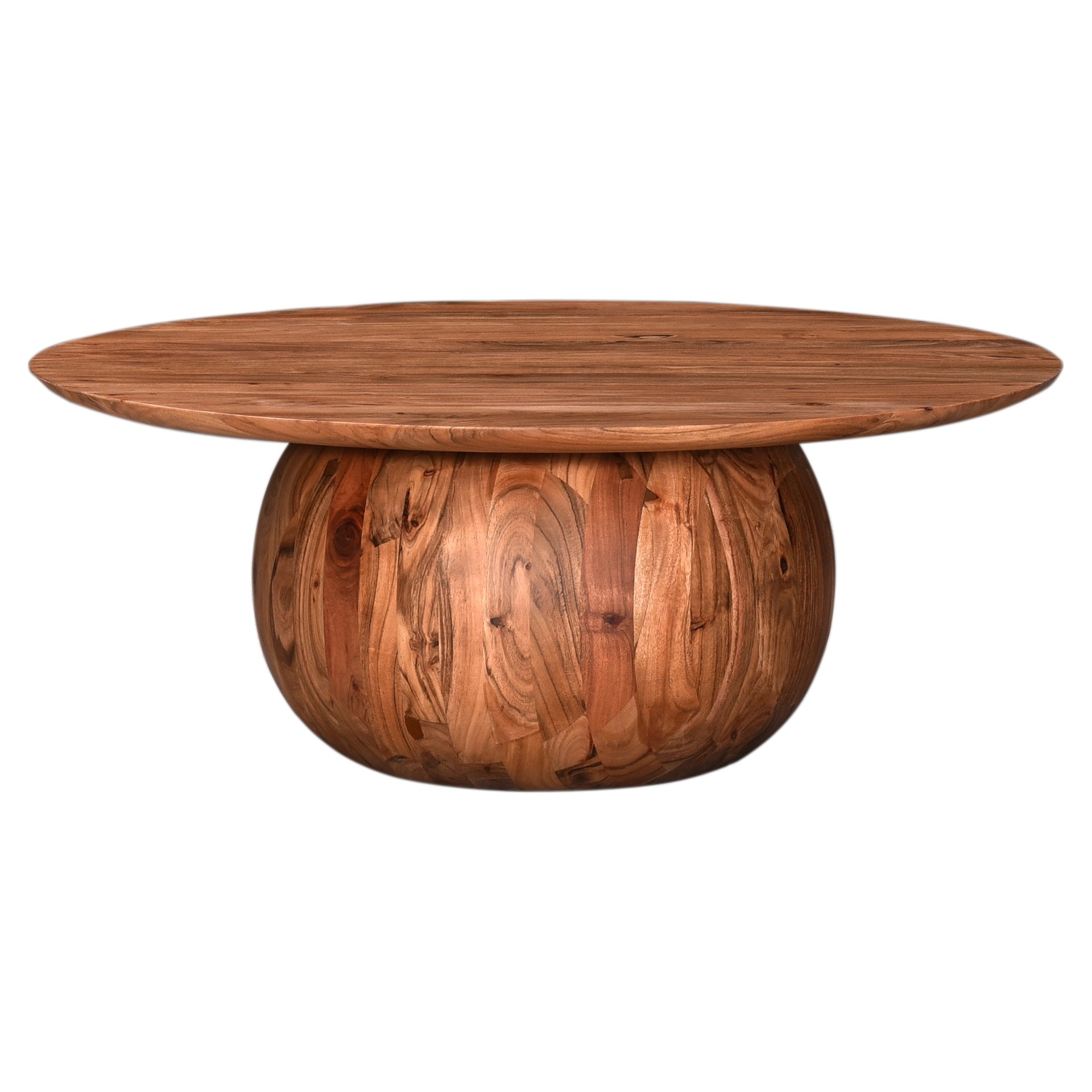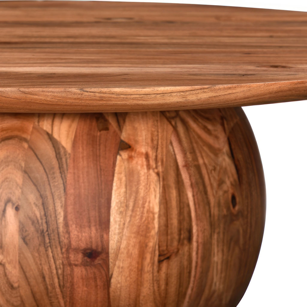 This stunning solid acacia coffee table brings a touch of natural warmth to your interior. Its unique design, featuring a rounded base sculpted from a single block, strikes the perfect balance between elegance and originality.