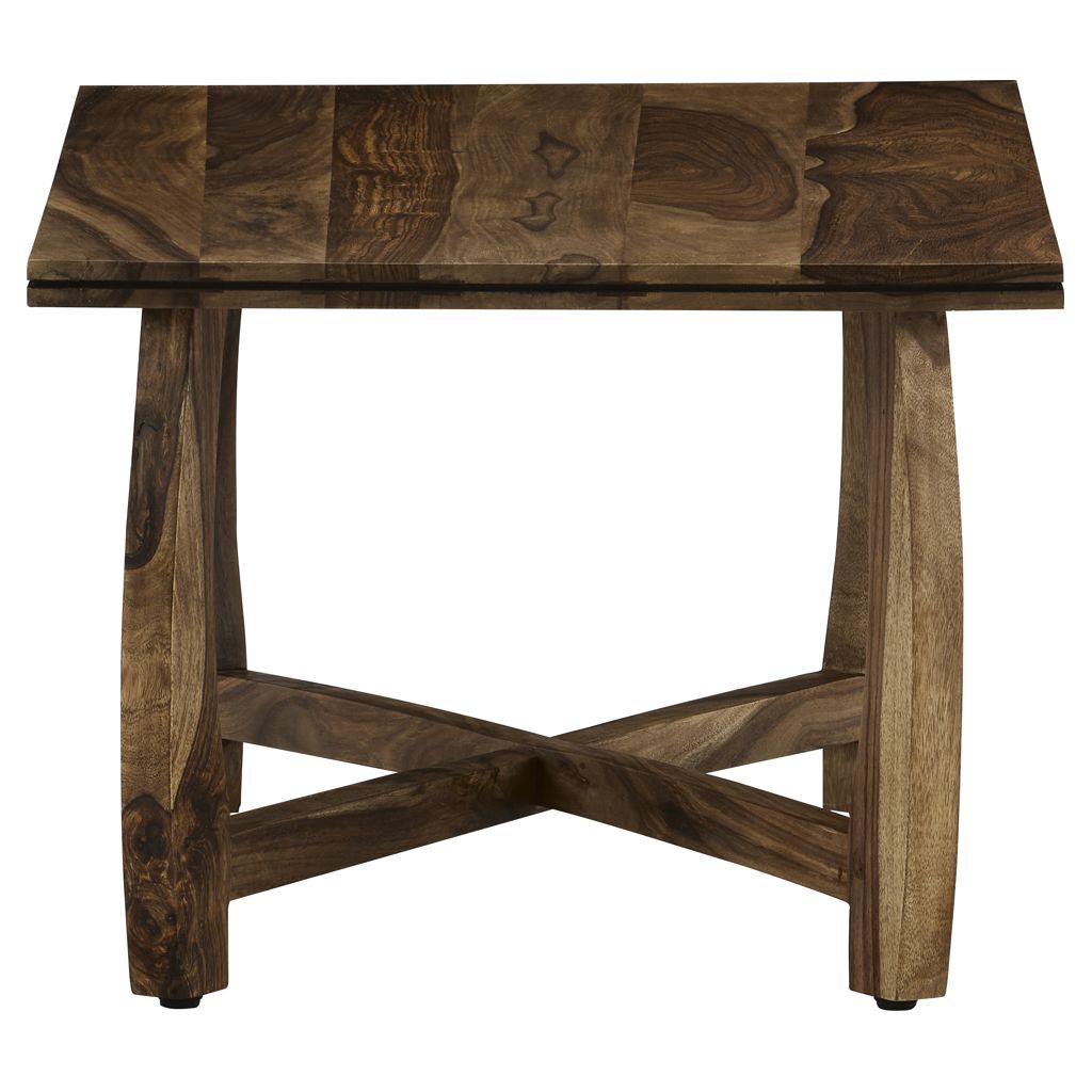Its generous tabletop offers the perfect space for moments of relaxation, while the crossed stretcher base ensures remarkable stability. Each piece is unique, thanks to the natural variations in the wood grain, giving your interior a distinctive character.