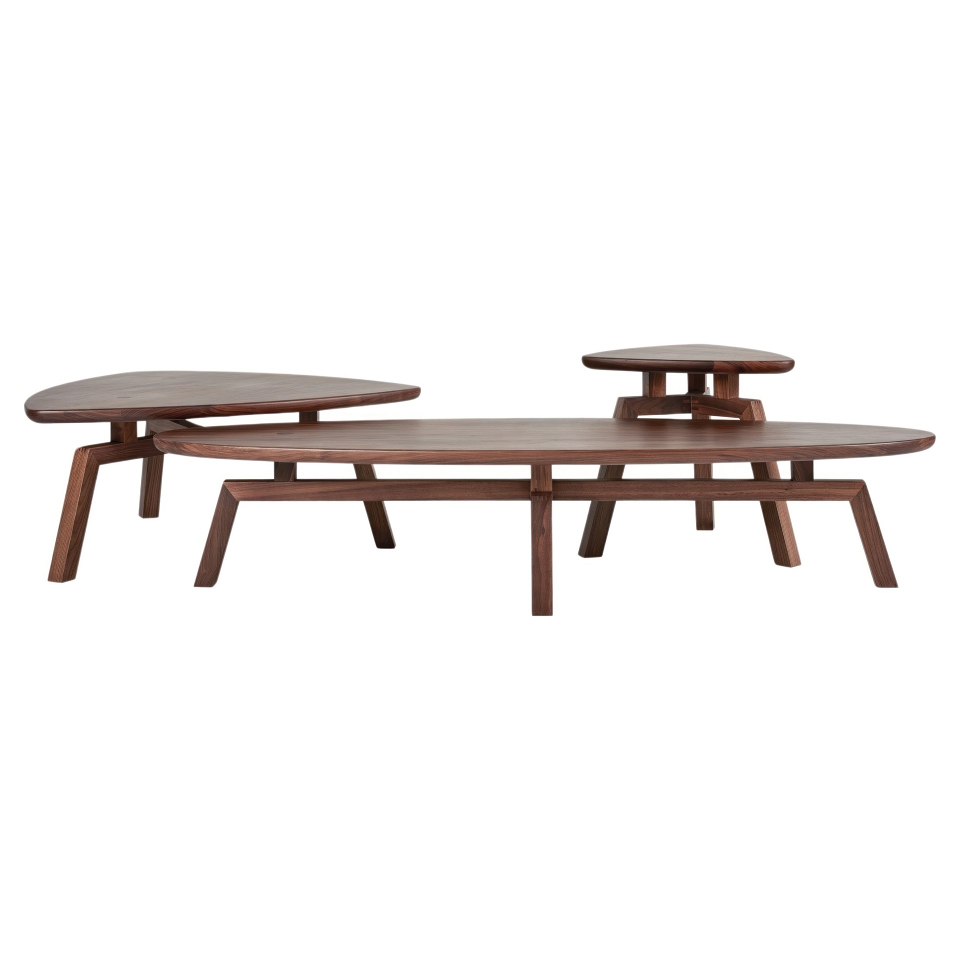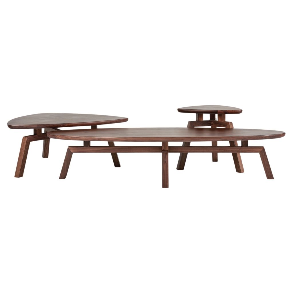 Combining classic mid-century style with the casual vibe of 1970s modernism, the Solana triangular coffee table showcases solid wood craftsmanship and sculptural beauty.