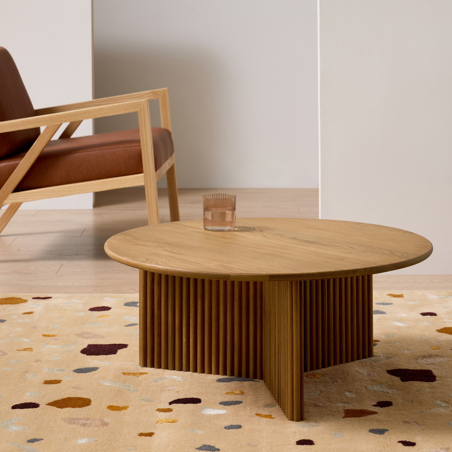 From every angle, these tables reveal qualities that gently juxtapose and interplay: a scalloped base with a smooth tabletop; textured, organic wood grain in painted or natural finish; soft curves balanced by chiseled lines.