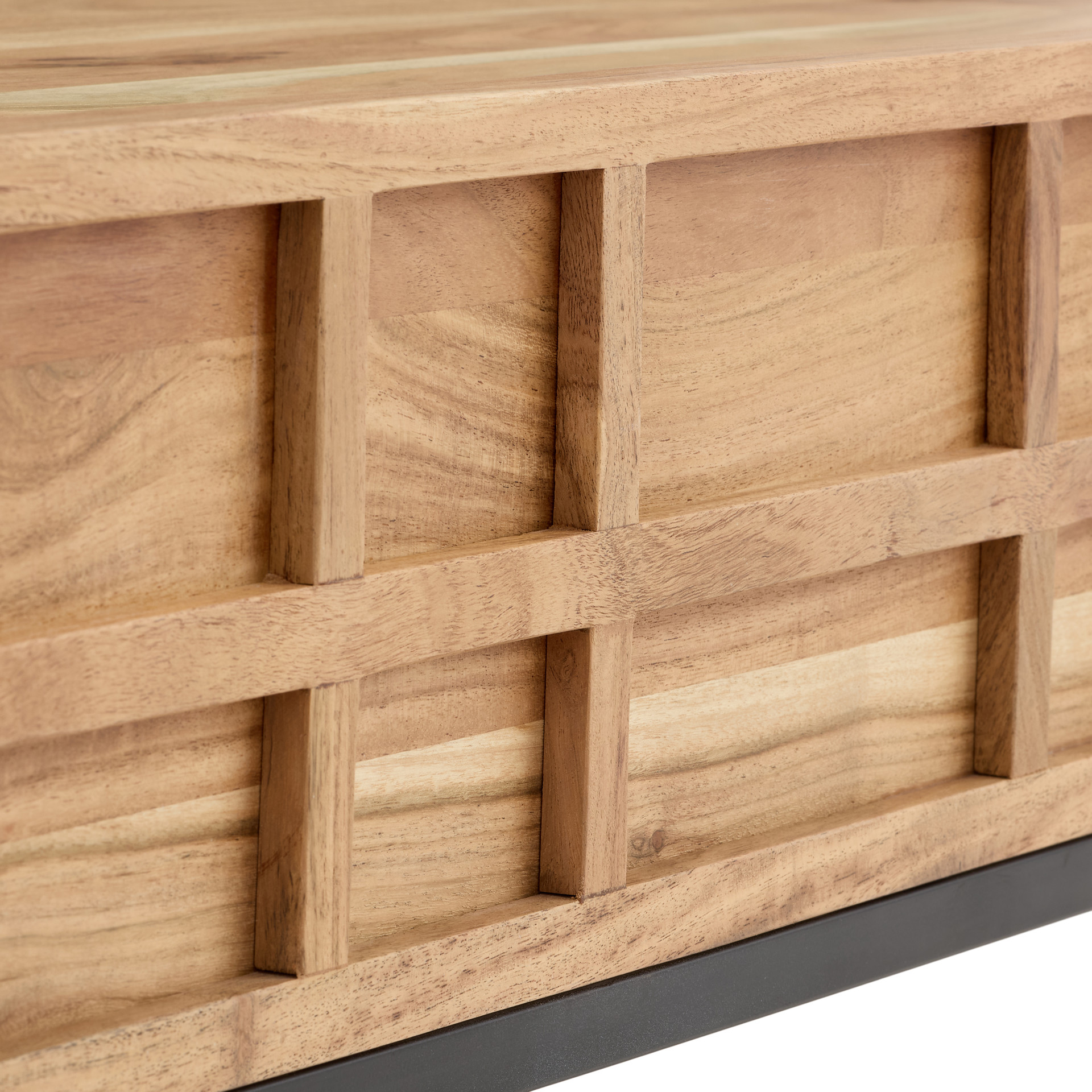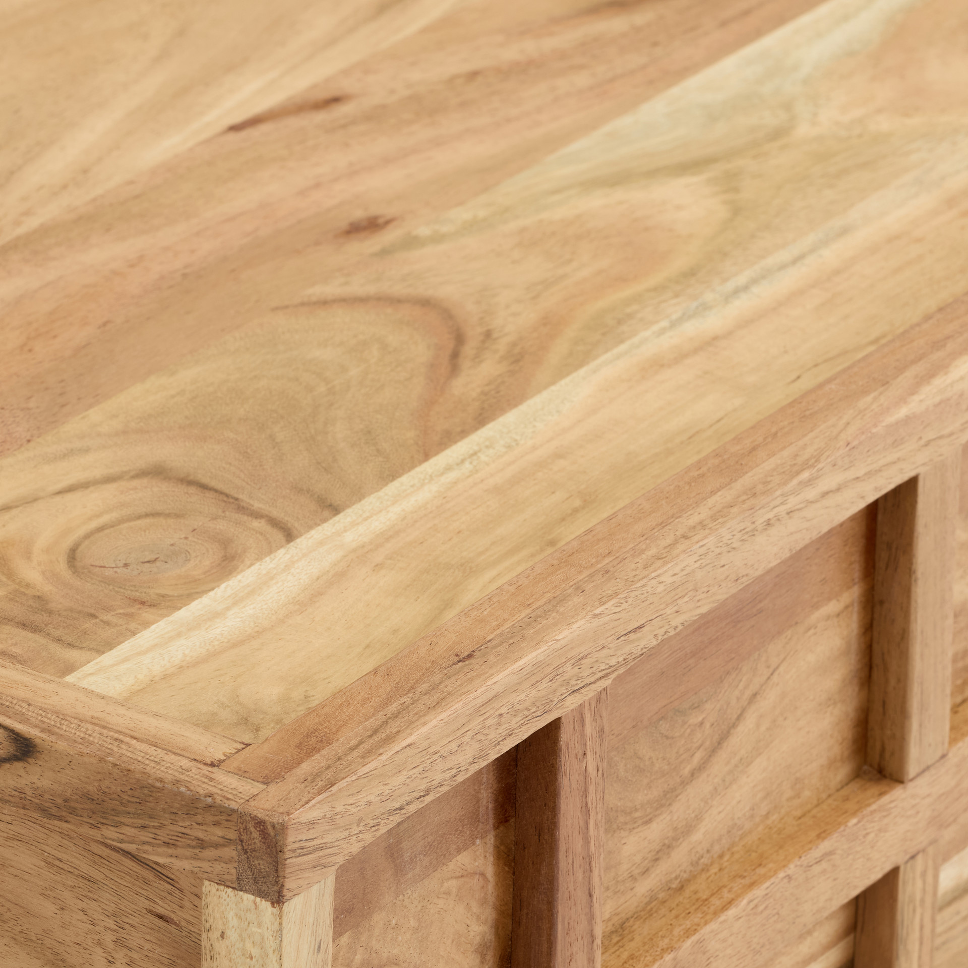 Bring warmth and character to your space with this acacia wood coffee table. Its top showcases the natural, unique variations of each piece of wood, offering authentic and timeless charm.