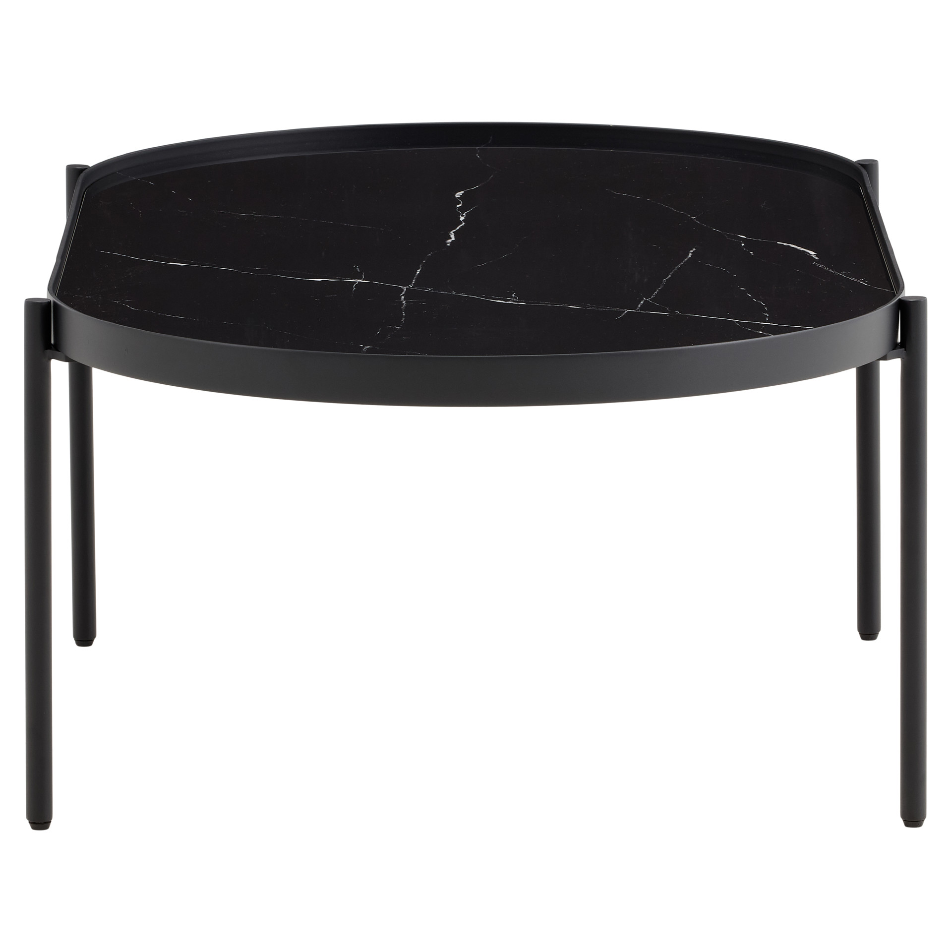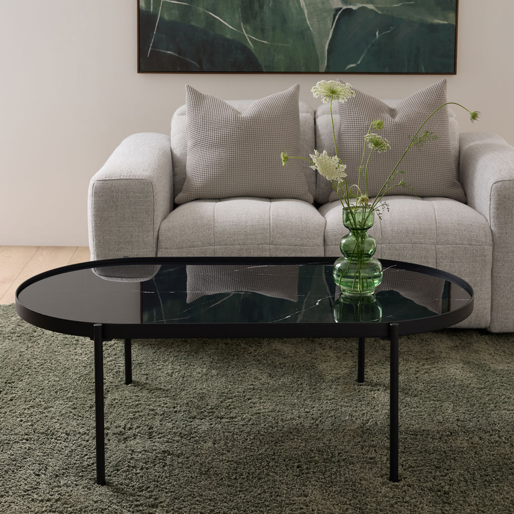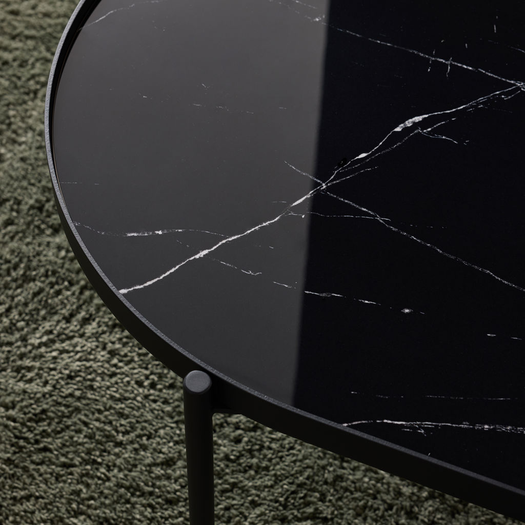 Bring a refined touch to your space with this ceramic coffee table in a black marble finish.
