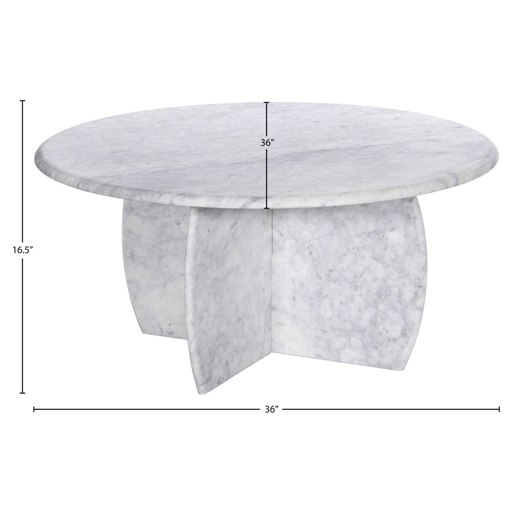 Lend your room a refined, elegant look with this Formentera coffee table. This table oozes sophistication from its white marble with light grey veining construction to its uniquely shaped base.