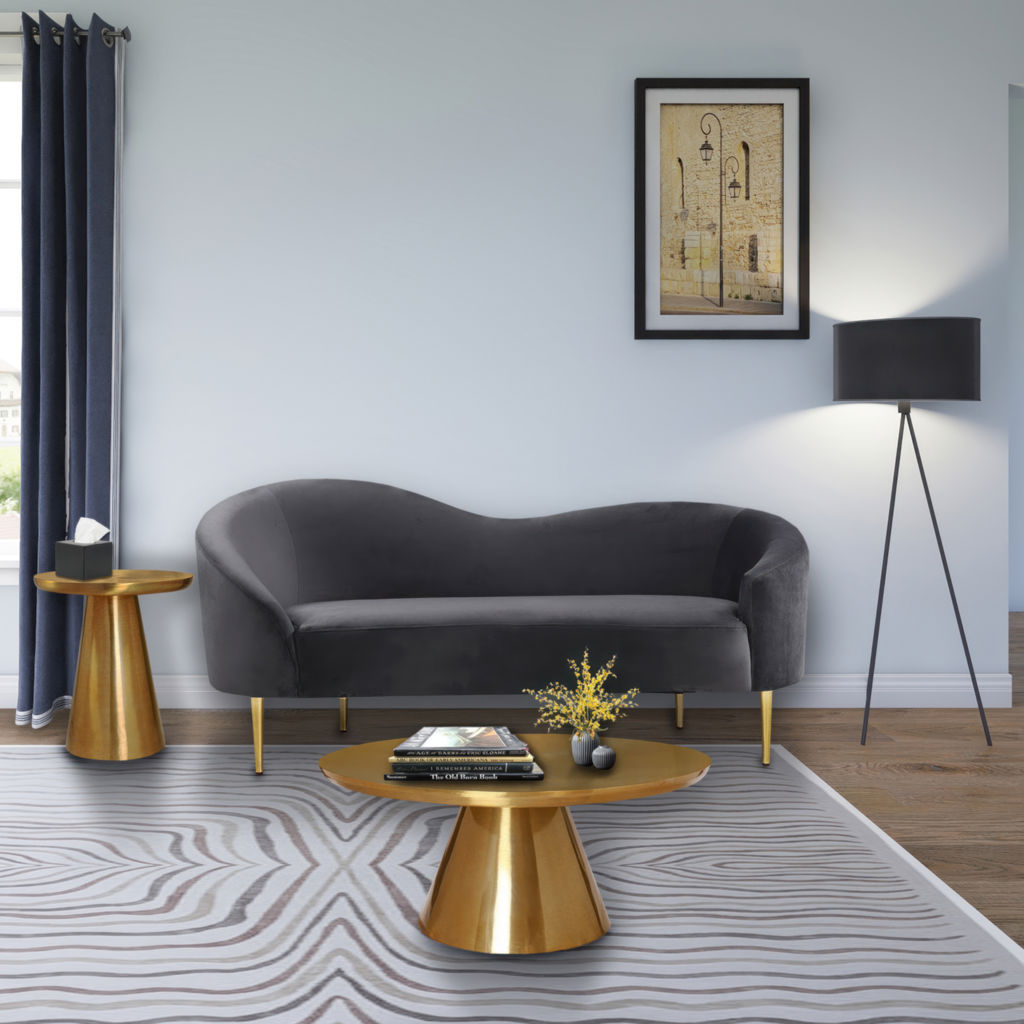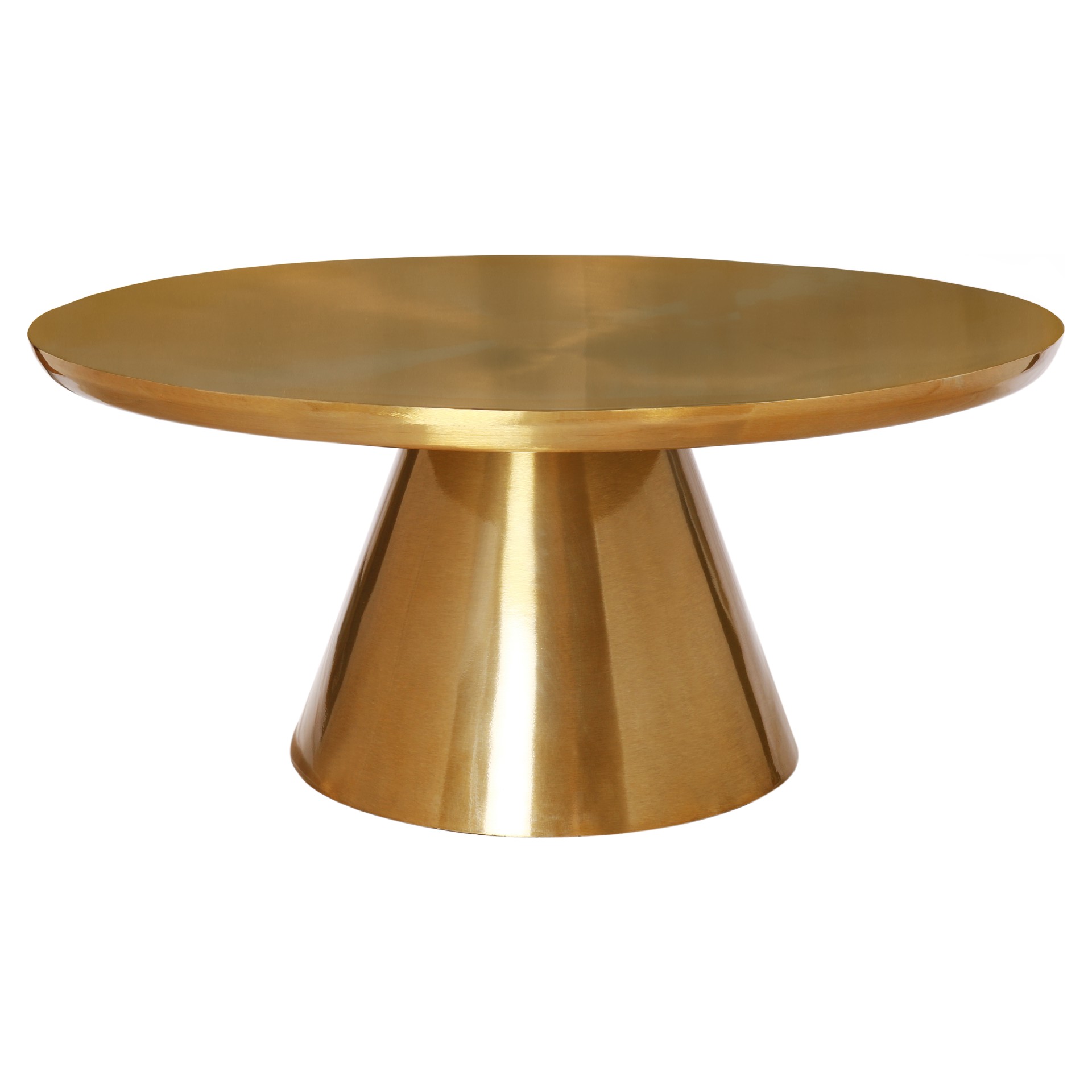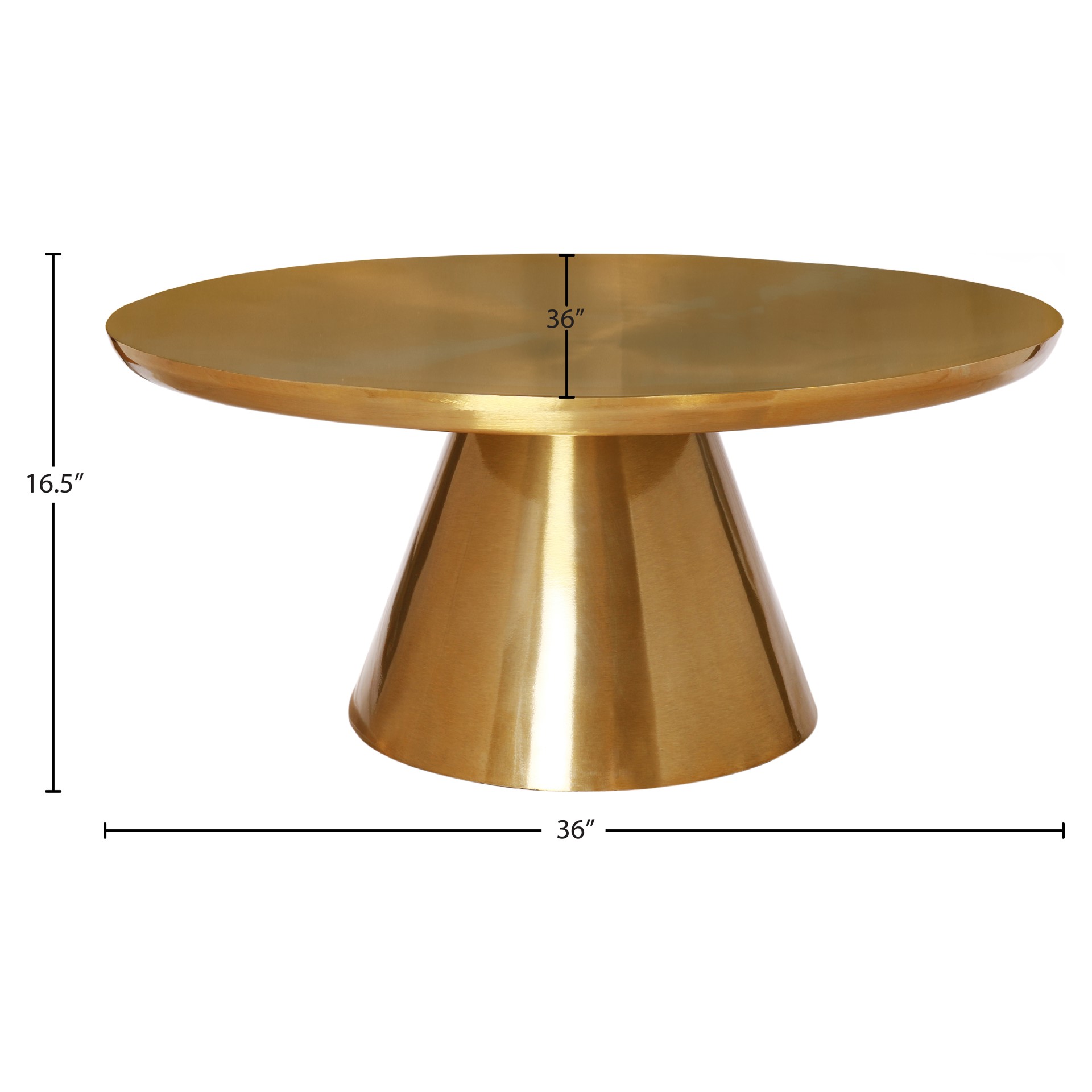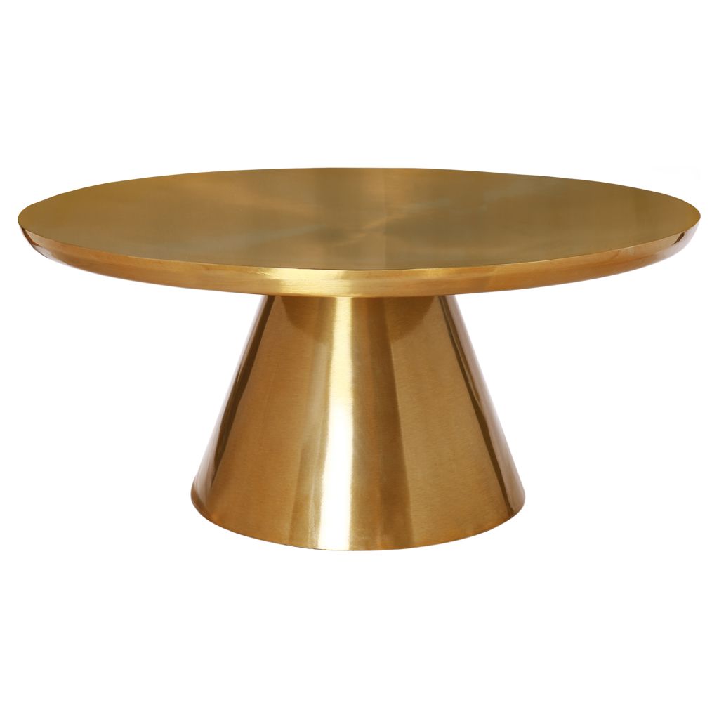 Bring your living space to life with this bold Martini Brushed Gold Coffee table from Meridian Furniture. Featuring a round brushed gold metal table top and matching base, this contemporary table is the perfect complement to any gold-themed furniture or home decor.