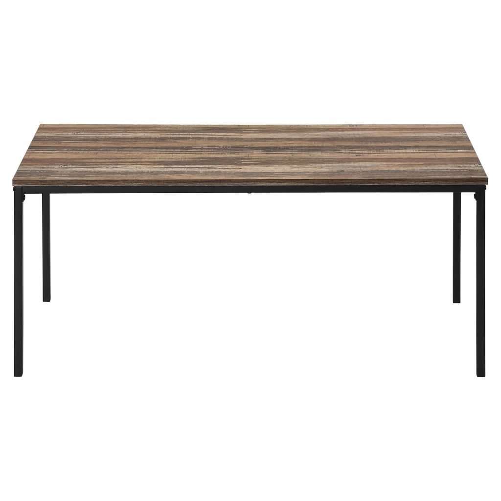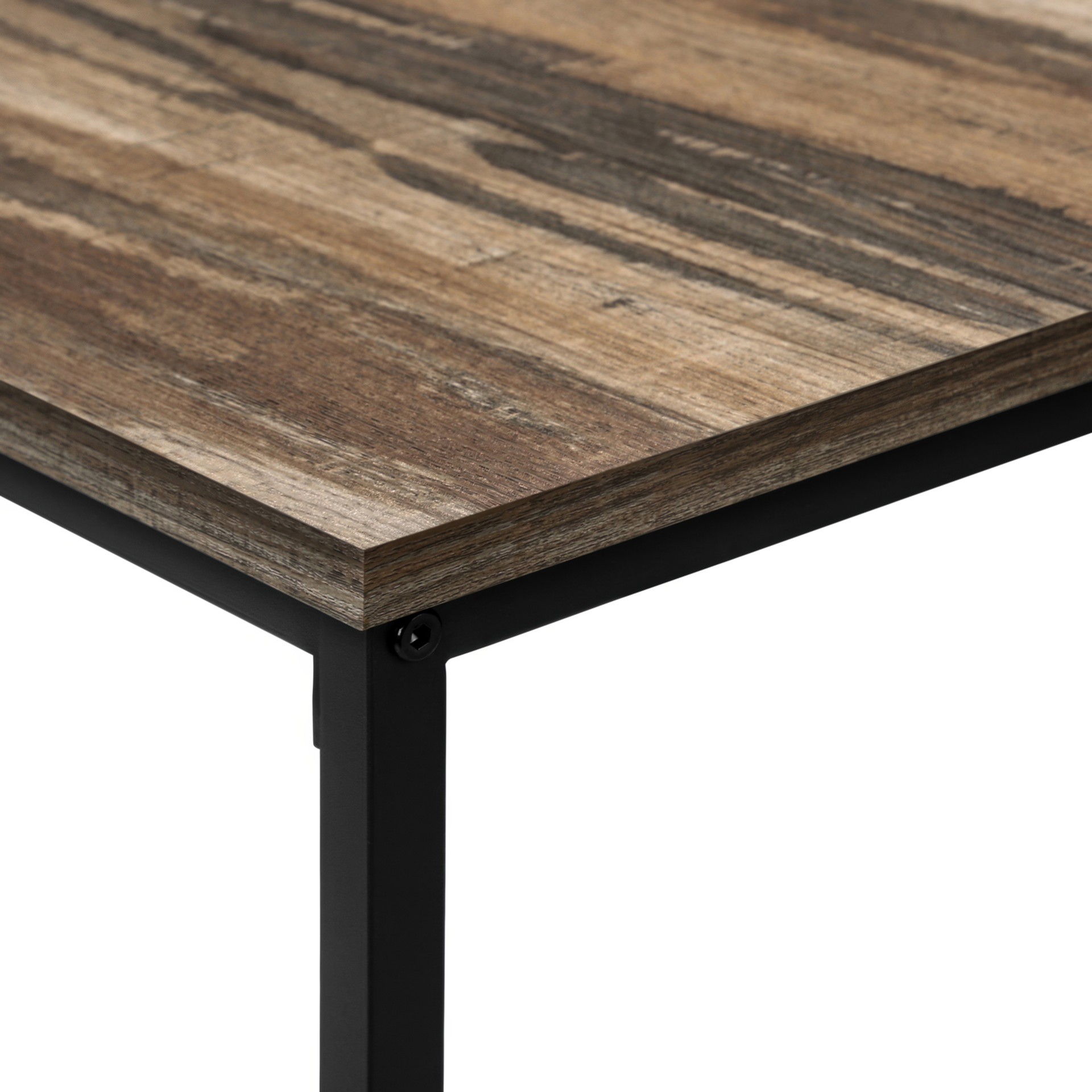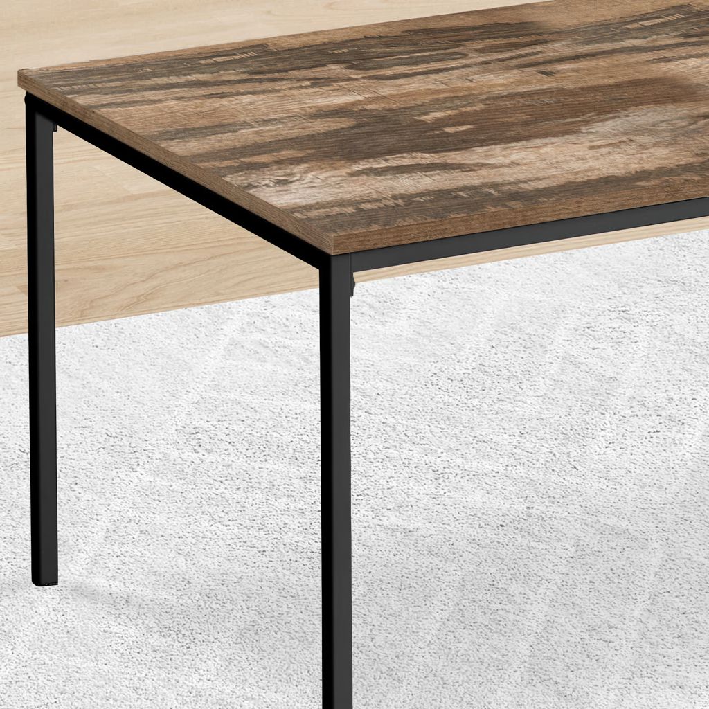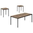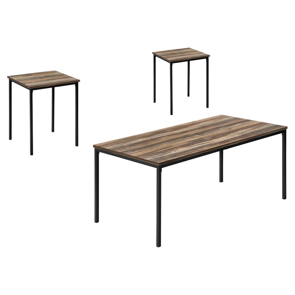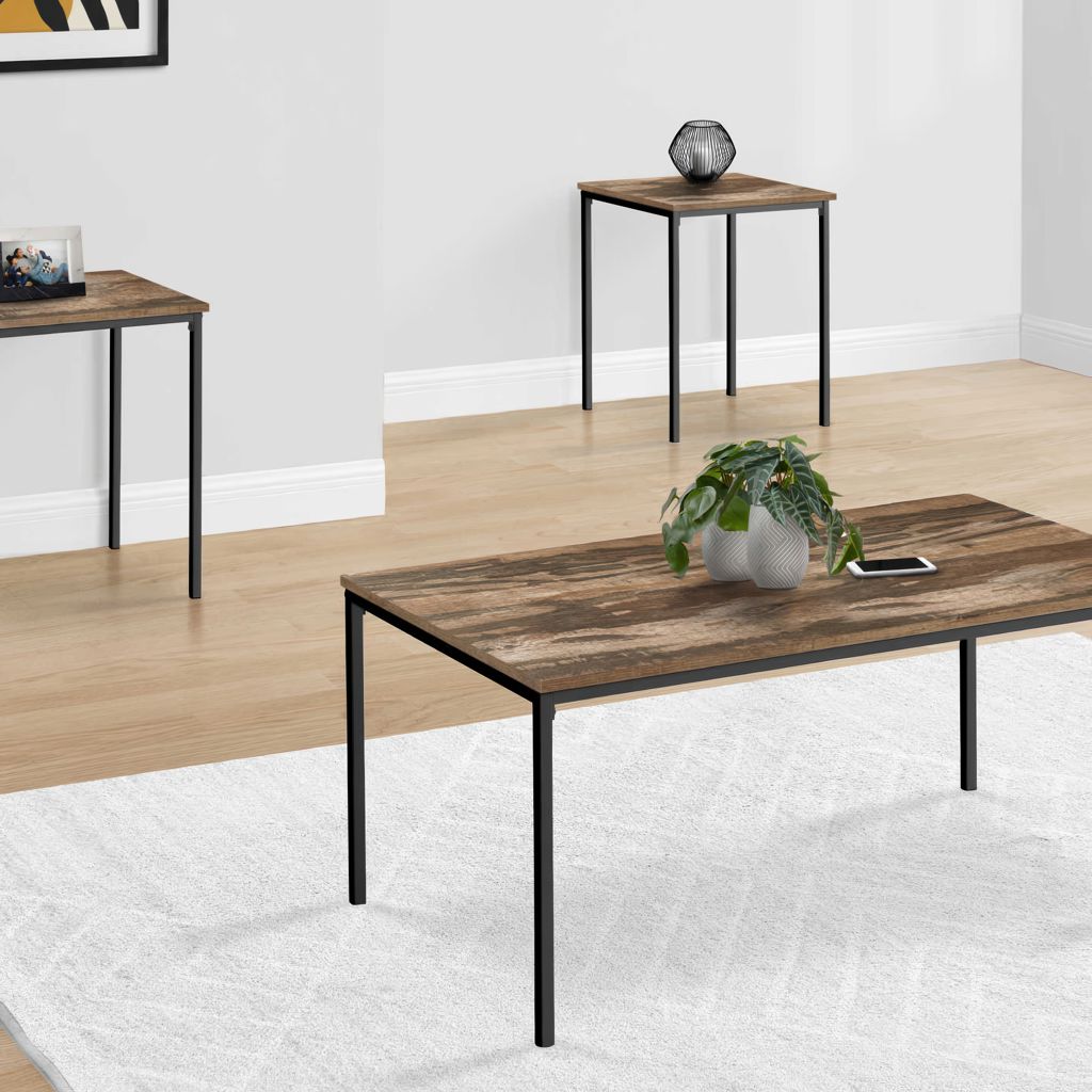Create a stylish living room setup with this 3 piece table set. This fashionable set includes one coffee table and two end tables, each with a sleek wood color laminate top and durable black metal frame.