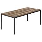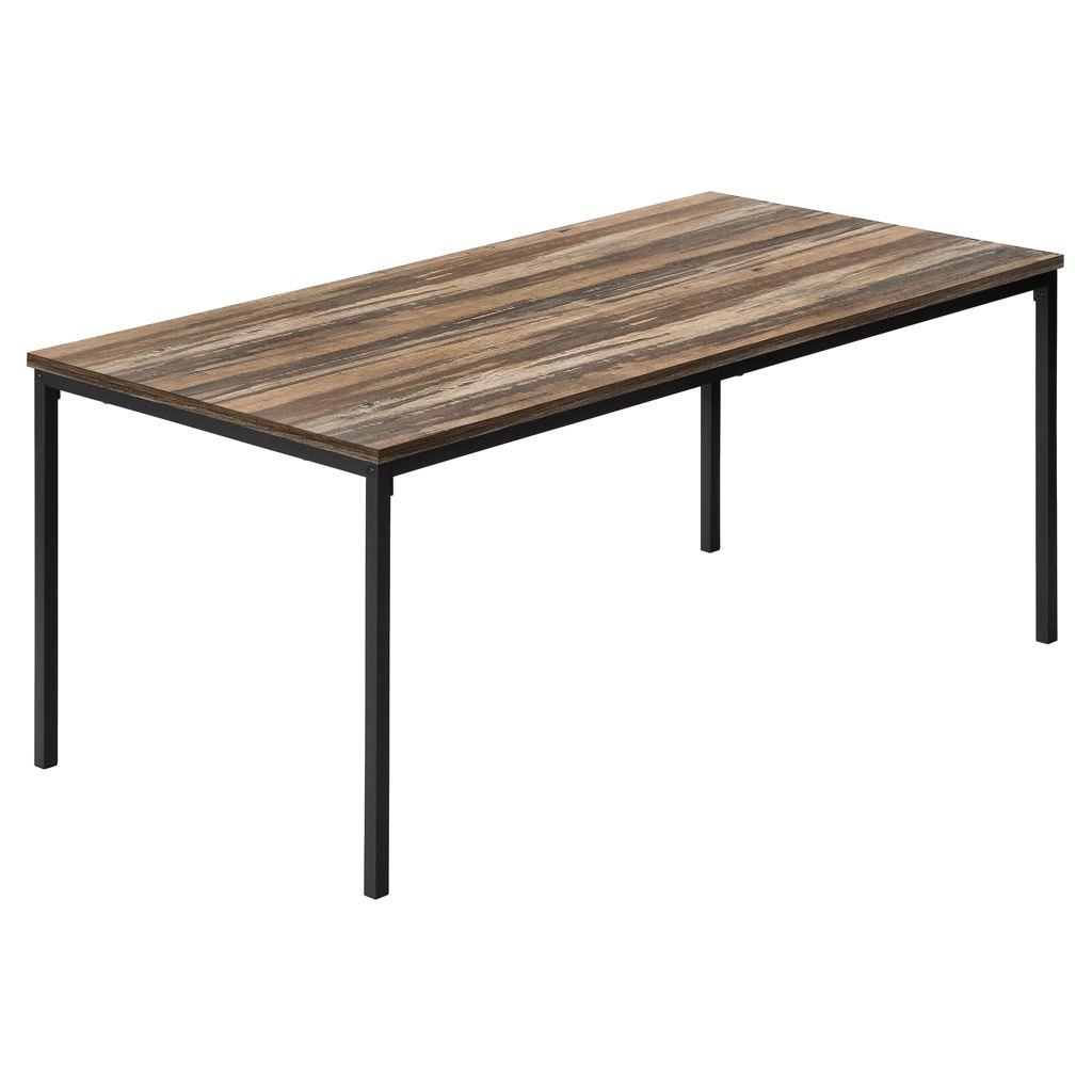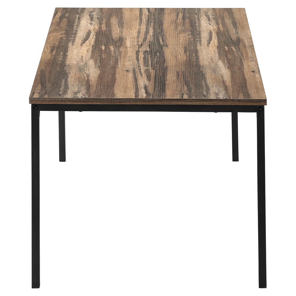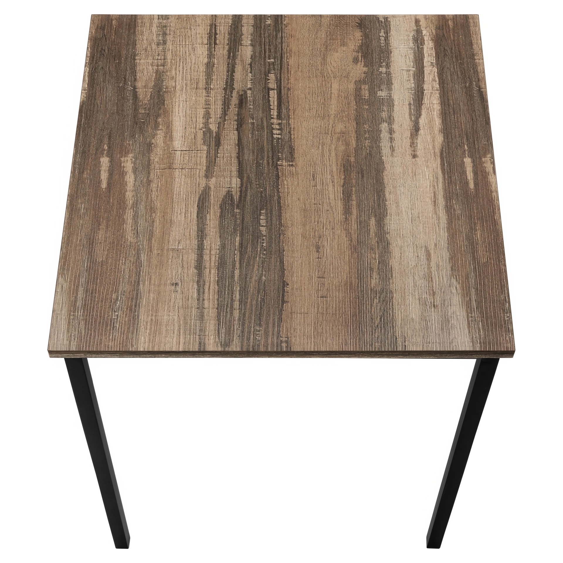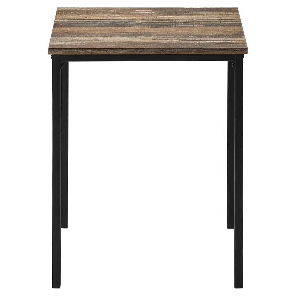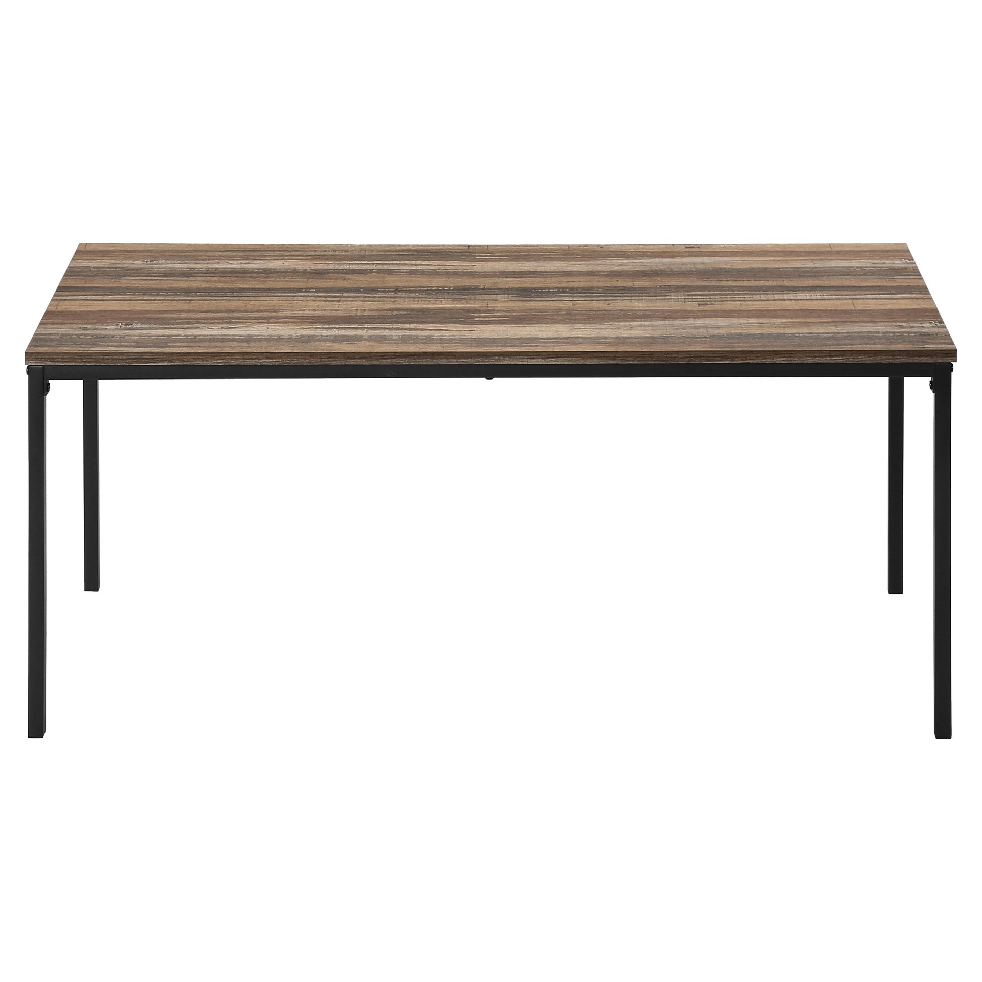Create a stylish living room setup with this 3 piece table set. This fashionable set includes one coffee table and two end tables, each with a sleek wood color laminate top and durable black metal frame.