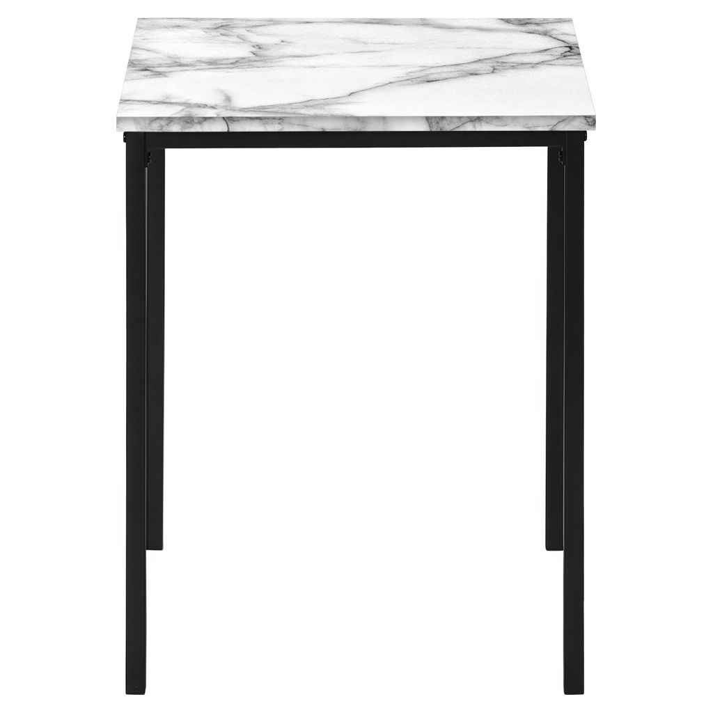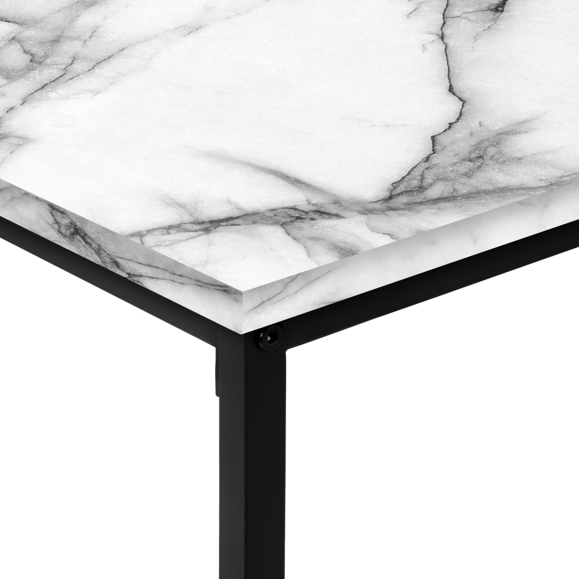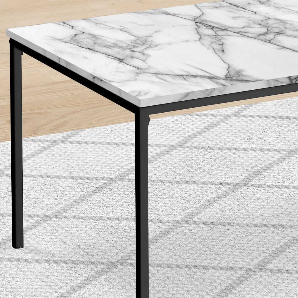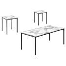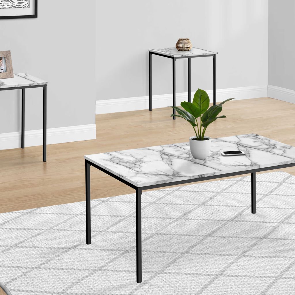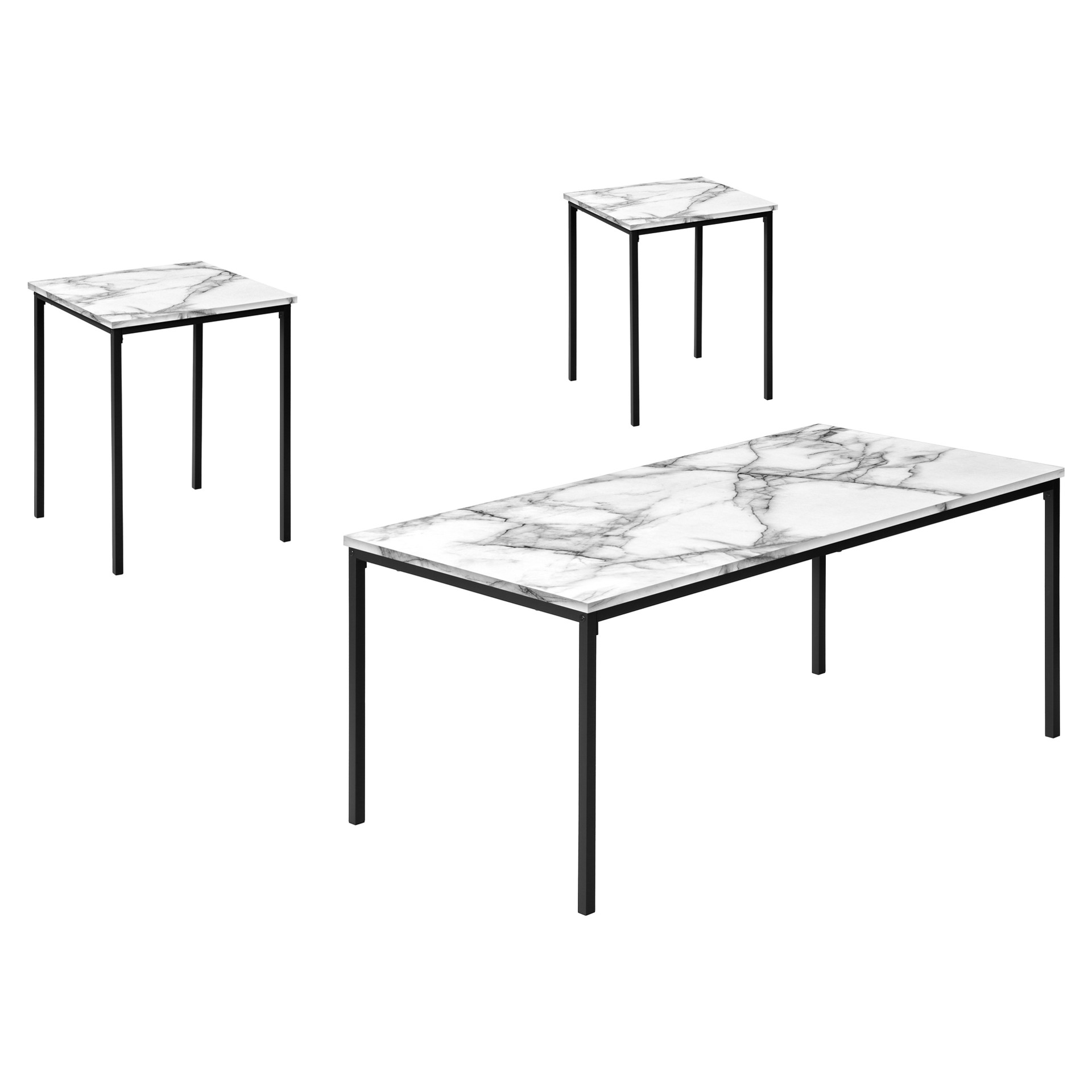 Create a stylish living room setup with this 3 piece table set. This fashionable set includes one coffee table and two end tables, each with a sleek white marble effect top and durable black metal frame.