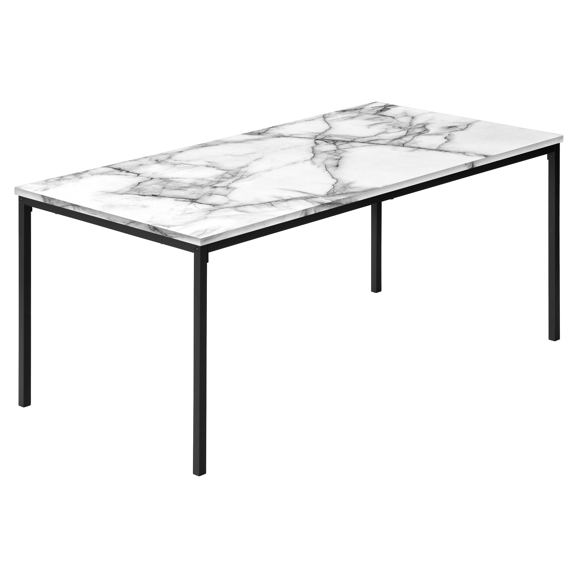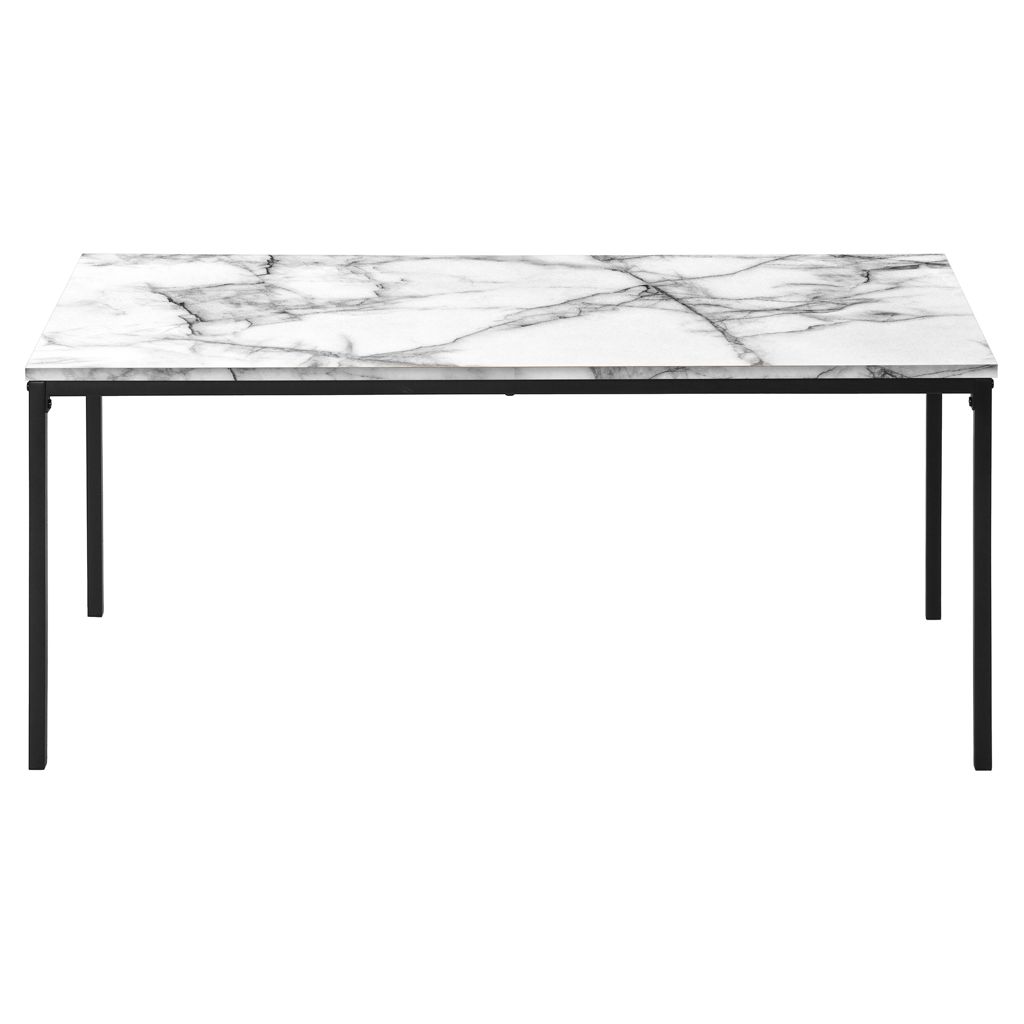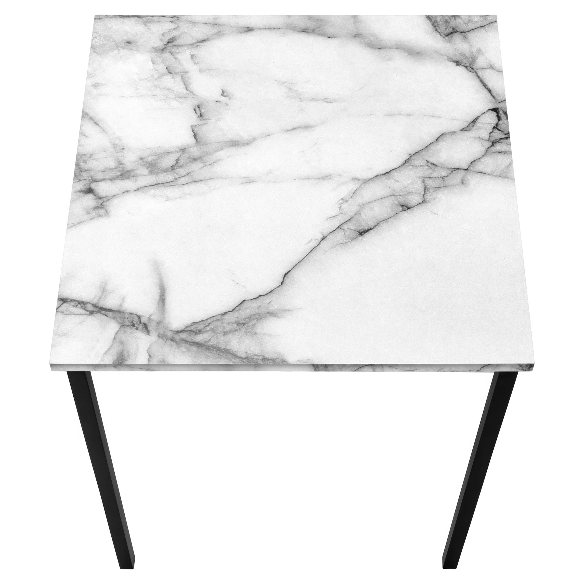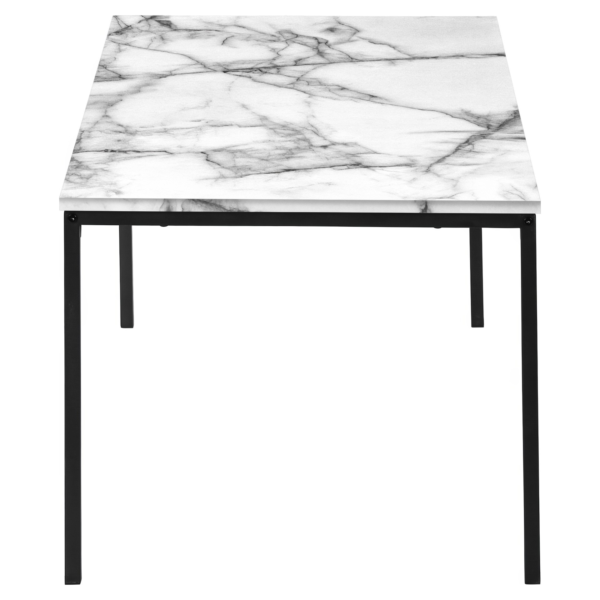 Create a stylish living room setup with this 3 piece table set. This fashionable set includes one coffee table and two end tables, each with a sleek white marble effect top and durable black metal frame.