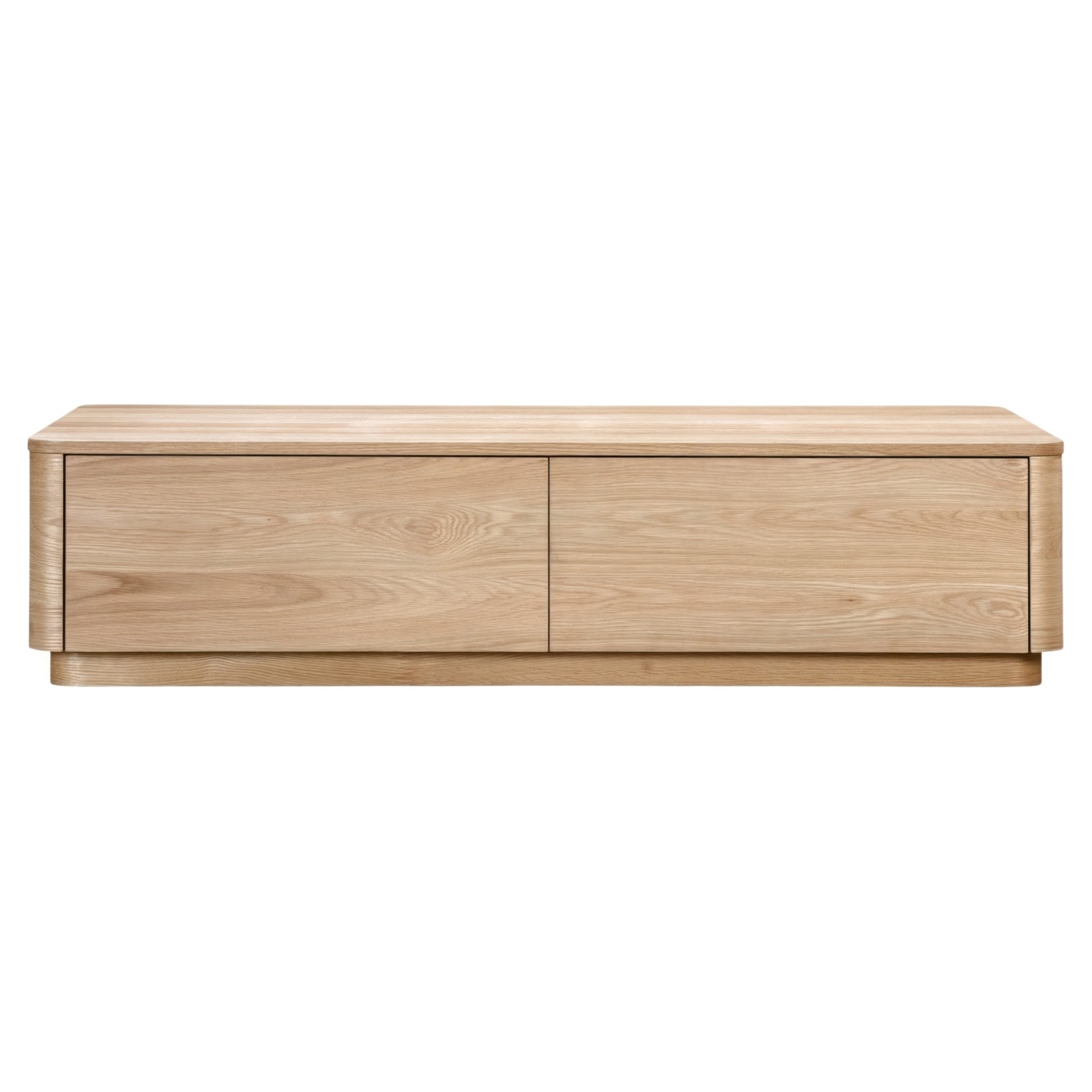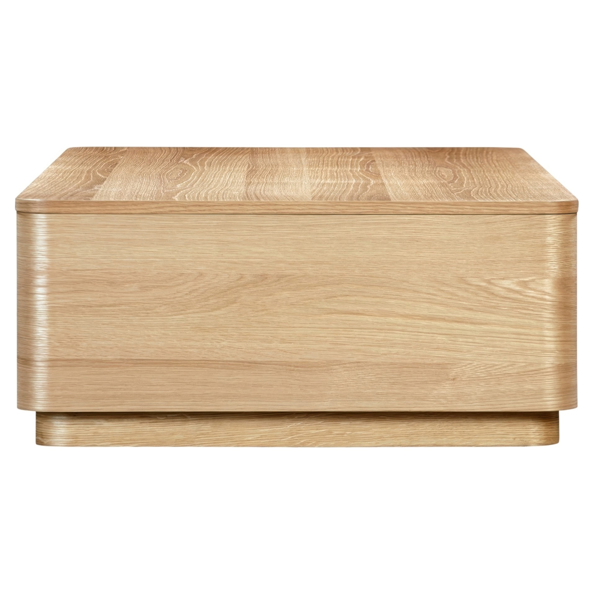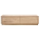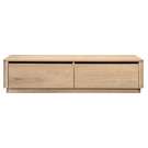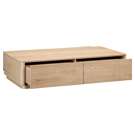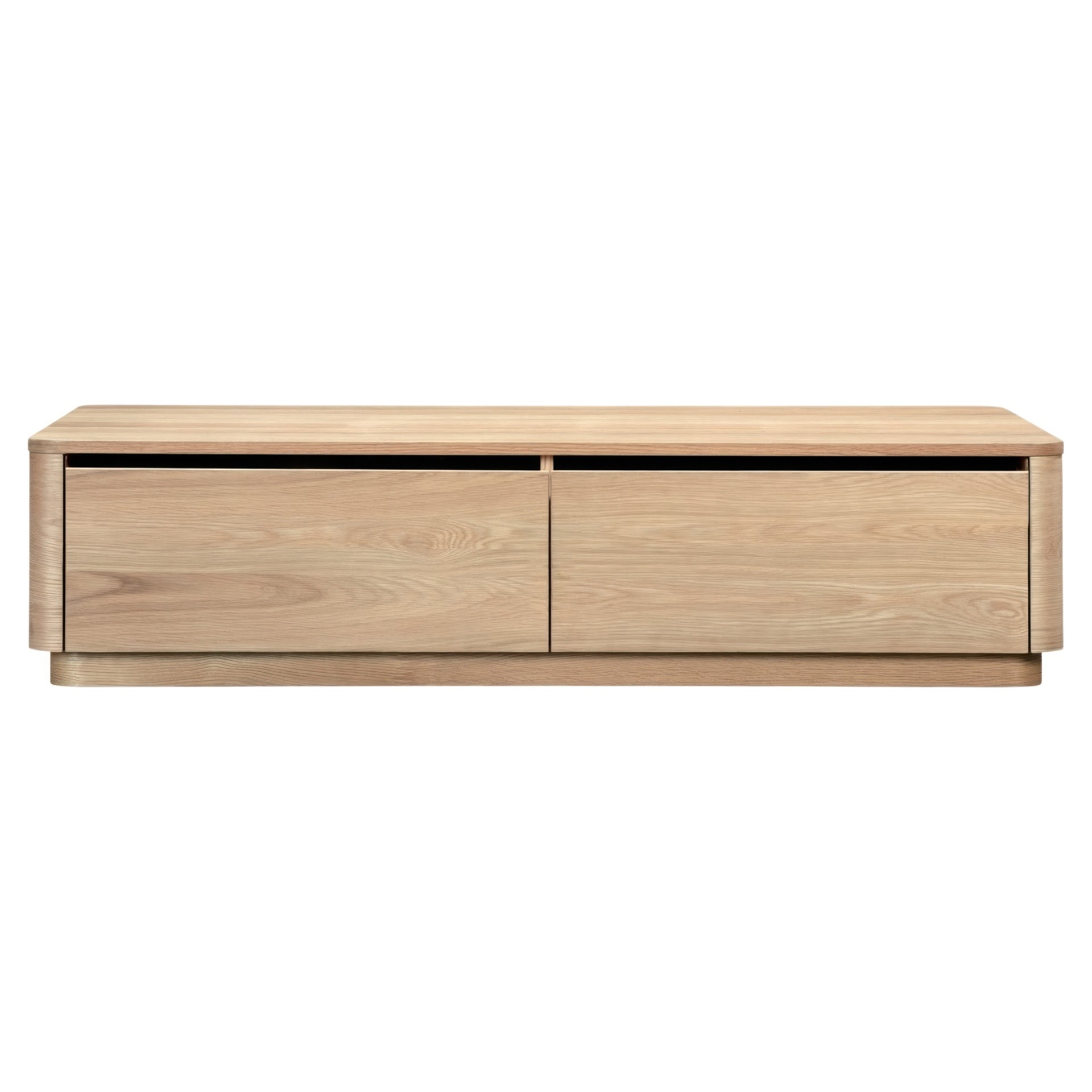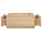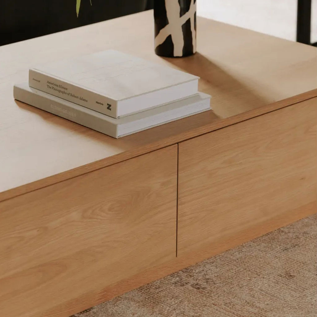 This coffee table boasts gently rounded corners and two large, push to open, smoothly gliding drawers that reveal generous storage space while embracing oak's natural beauty and character.