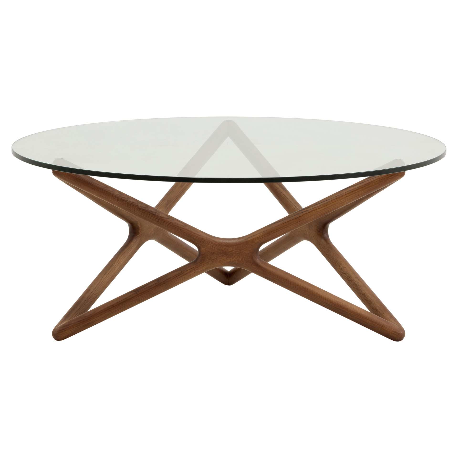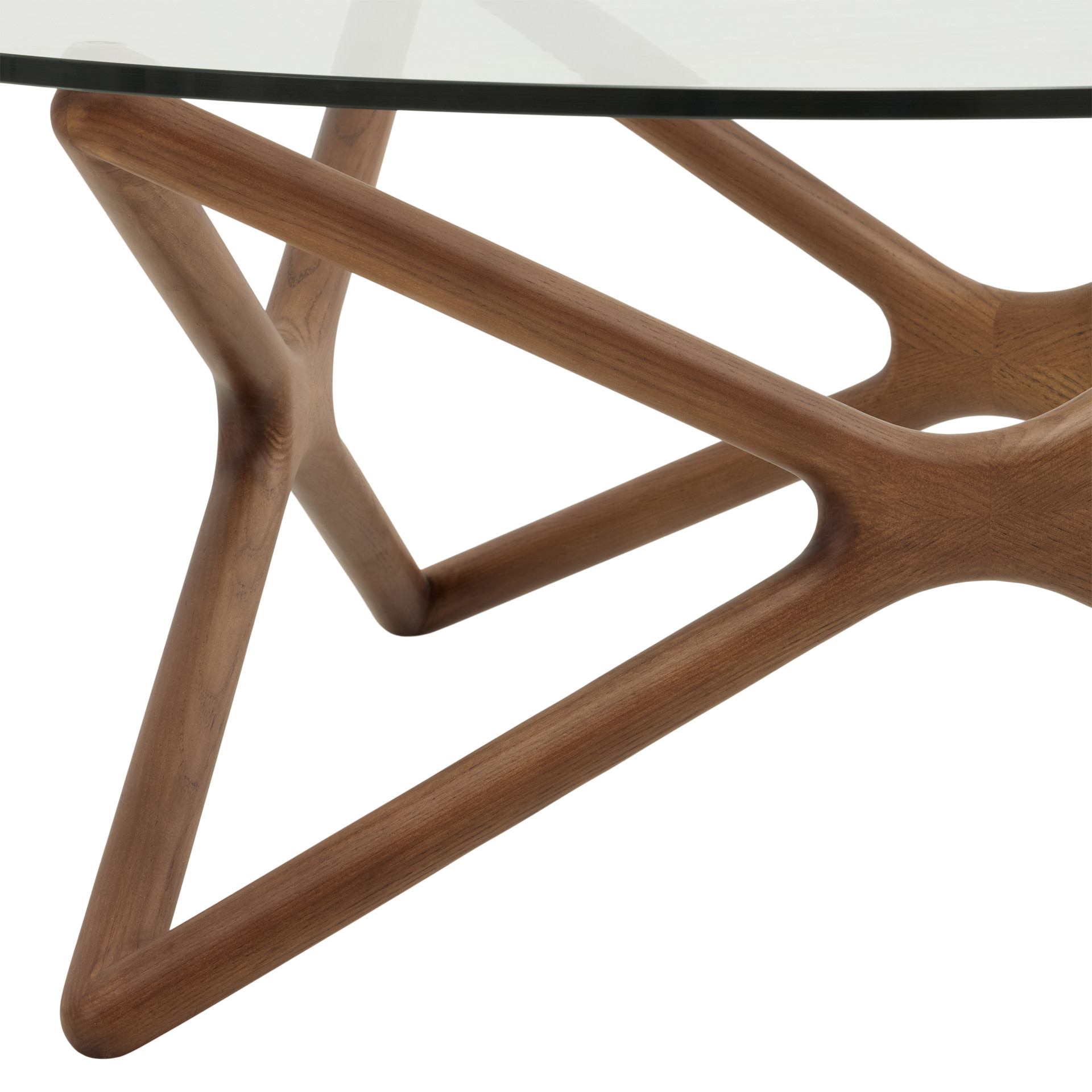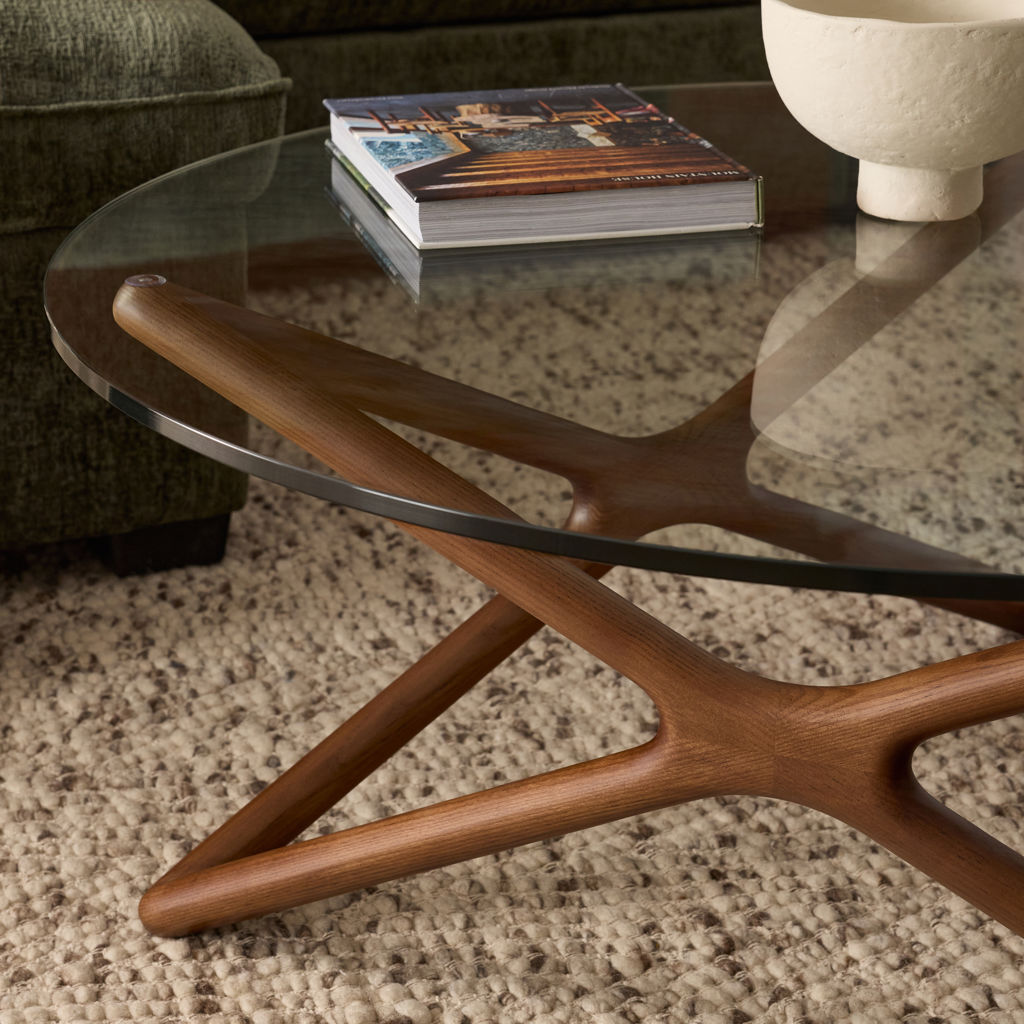 This stunning coffee table combines the elegance of tempered glass with the natural warmth of ash wood. Its sculpted structure with fluid, organic lines transforms every angle into a work of art, creating a play of light and shadow that shifts with your interior lighting.