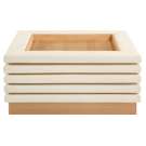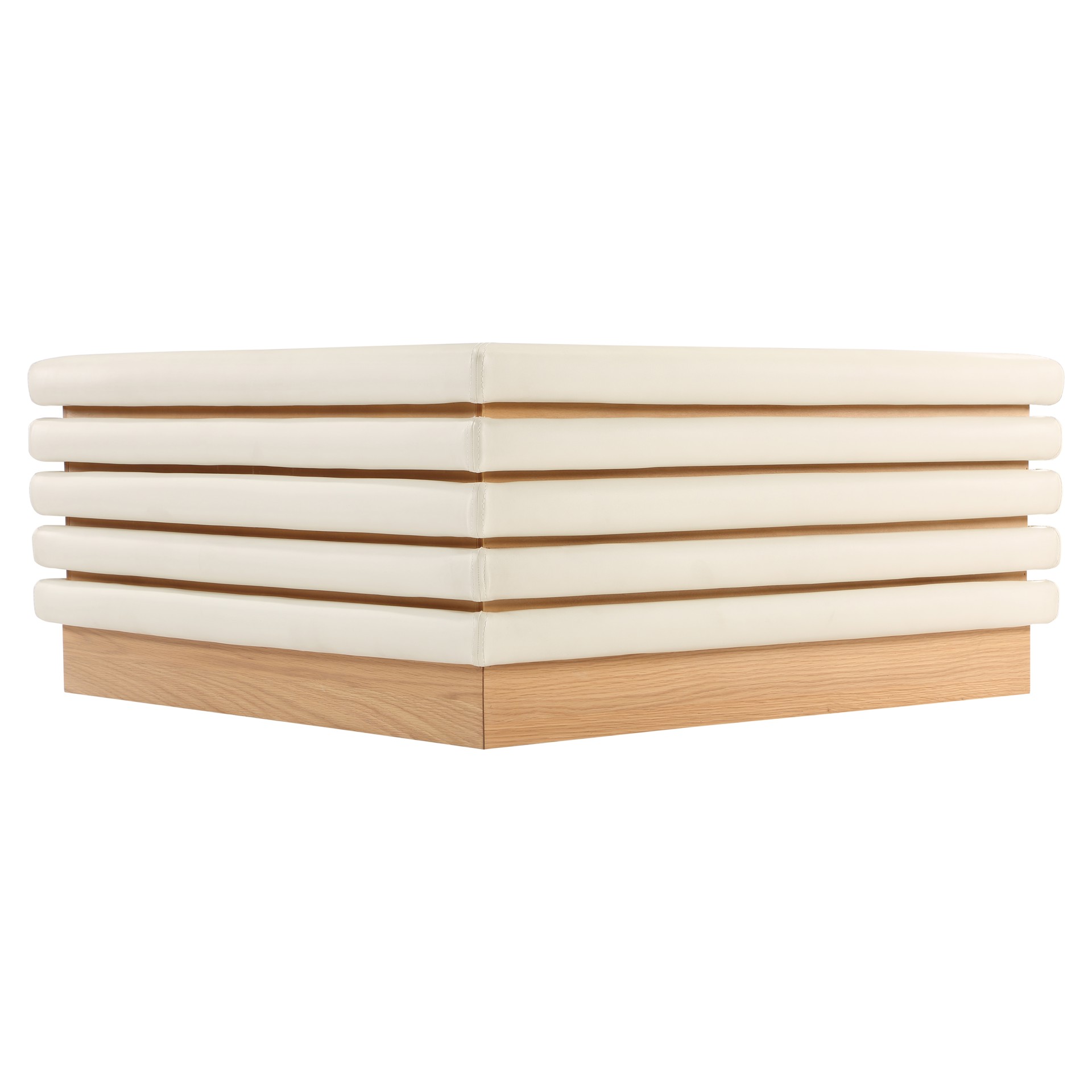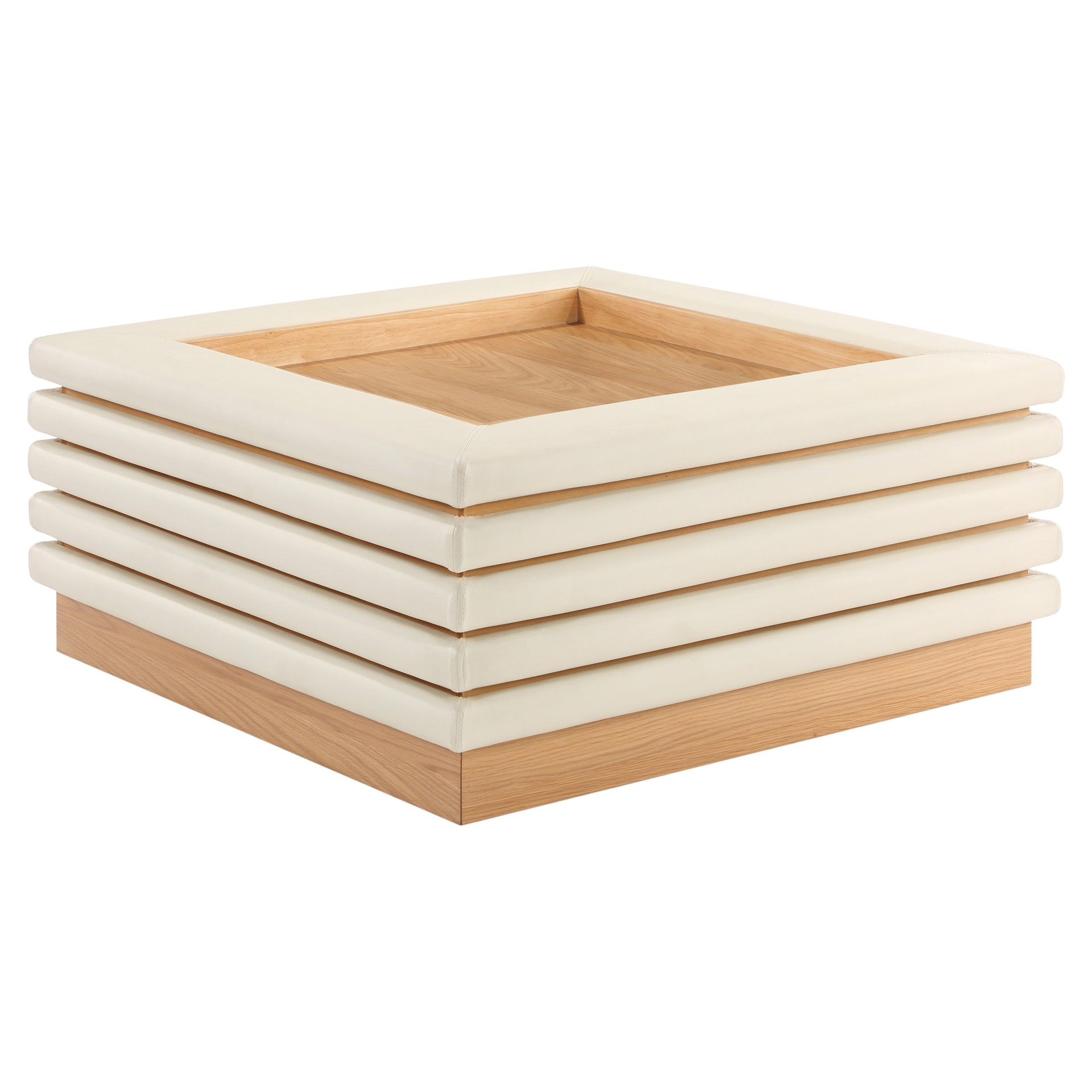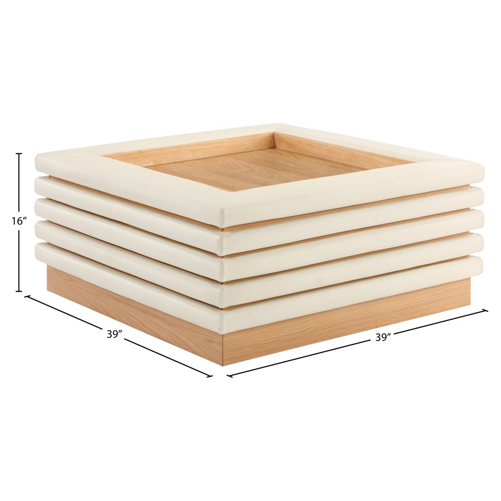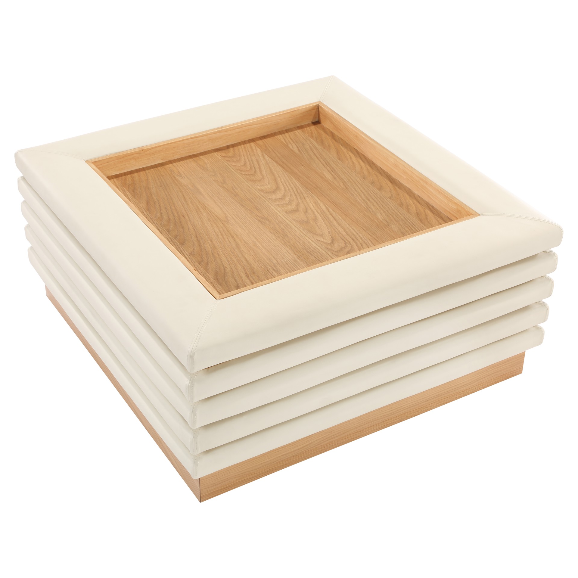 Put emphasis on style when you add this Rory coffee table to your current setup. This handsome table features a stacked look with soft cream faux leather accents against a natural finish oak veneer.