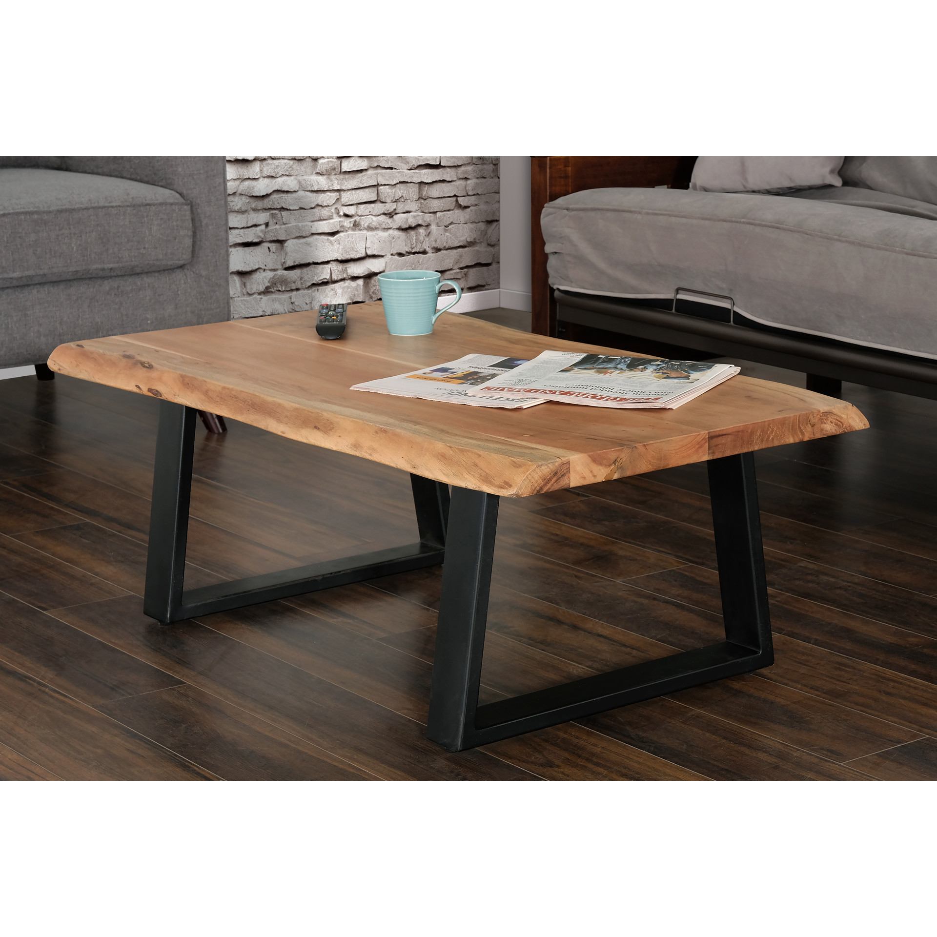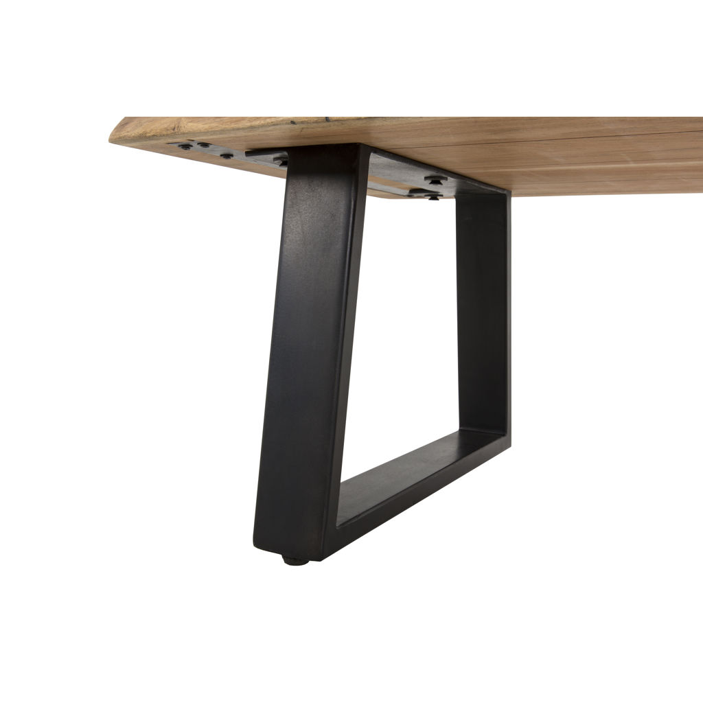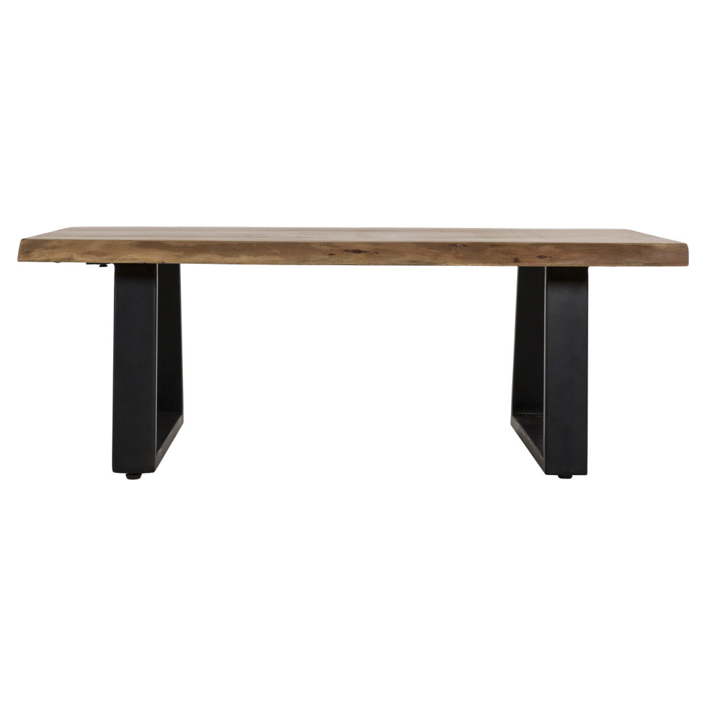 This stunning coffee table perfectly combines the authenticity of natural wood with the modern appeal of black metal. Its generous surface highlights the unique veins and shades of the wood, creating a truly distinctive centerpiece for your living room.