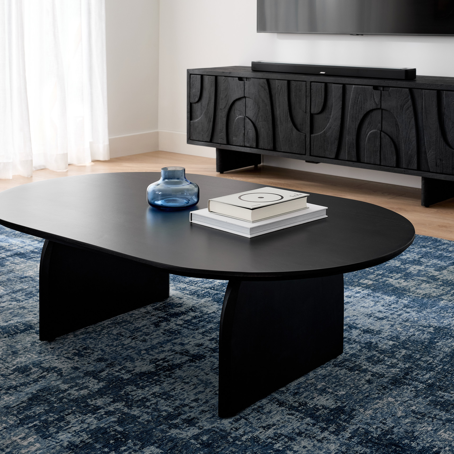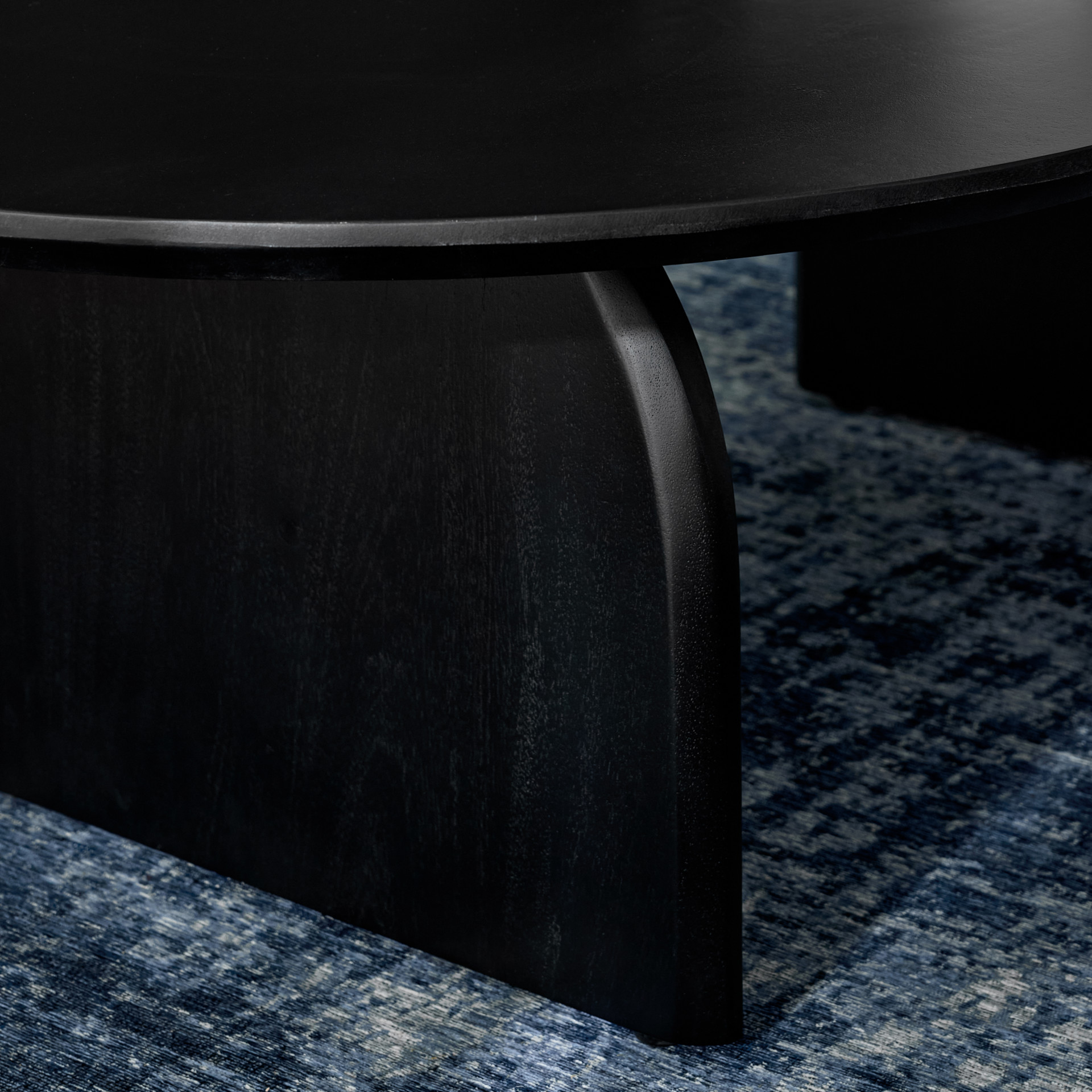 This black acacia coffee table embodies contemporary elegance with its bold geometric forms. Its dark matte finish beautifully highlights the natural grain of acacia wood, renowned for its exceptional strength and longevity.