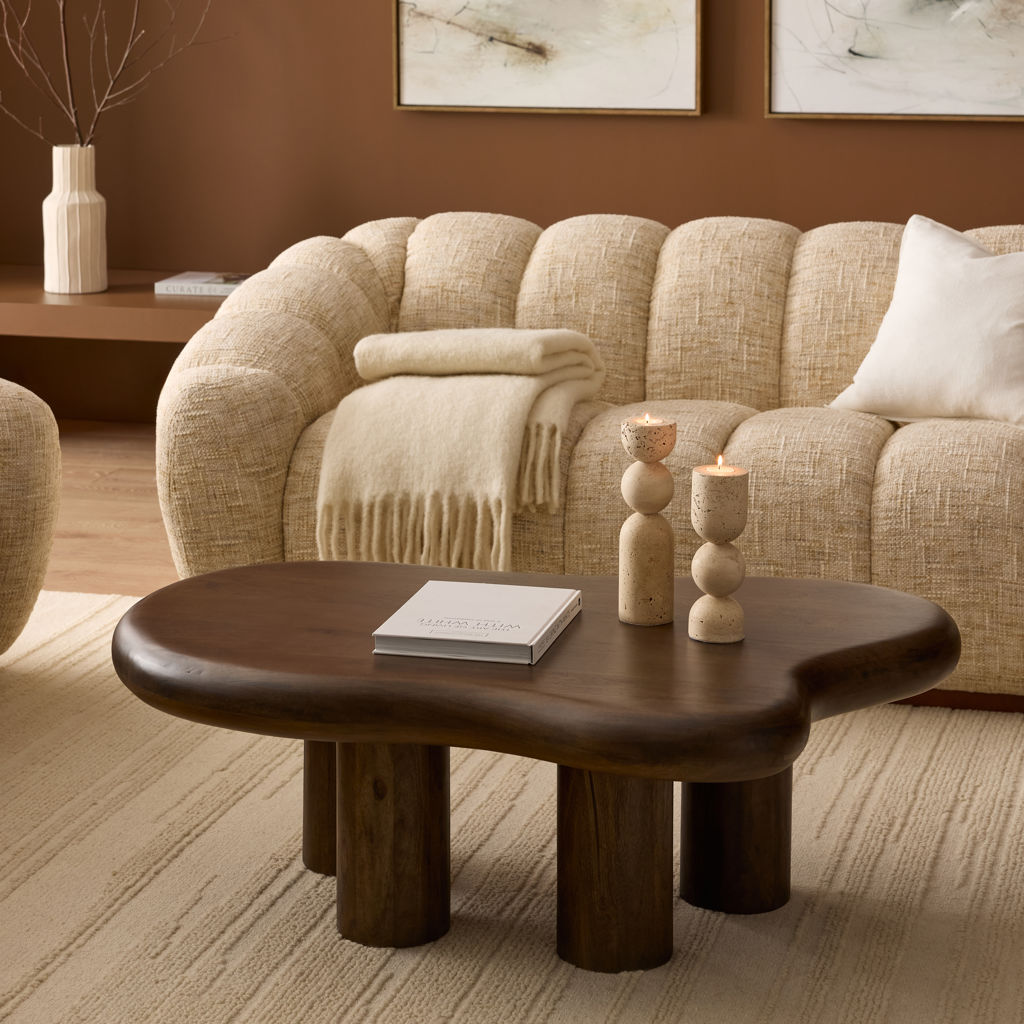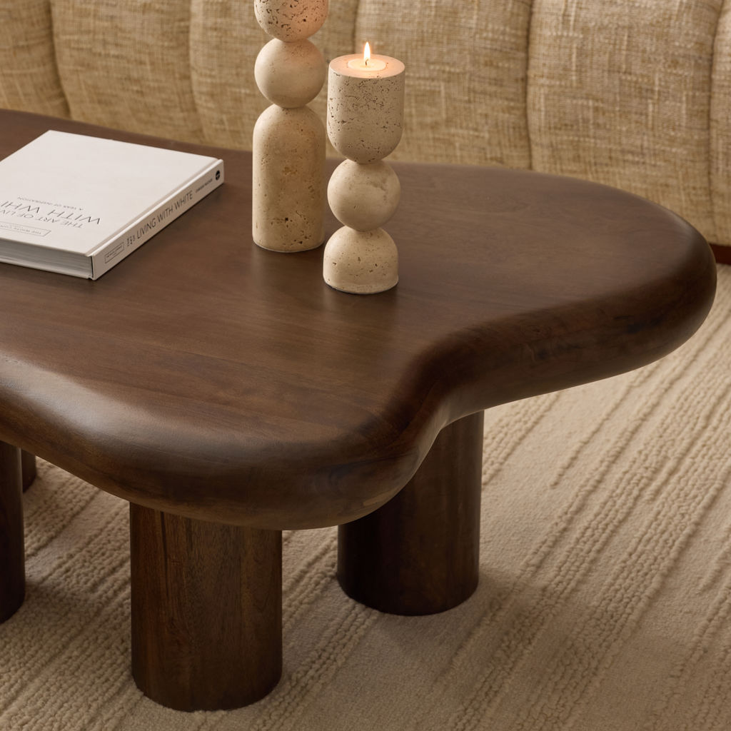 Its smooth tabletop with unique contours brings a natural, effortless flow to your space, while its solid mango wood construction ensures lasting durability and timeless appeal.
