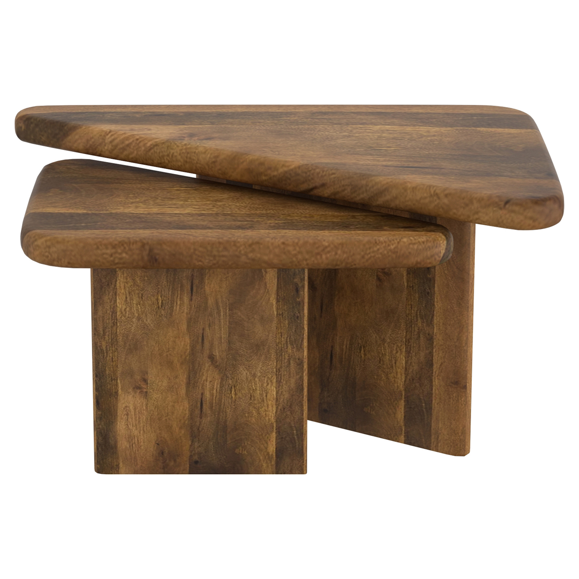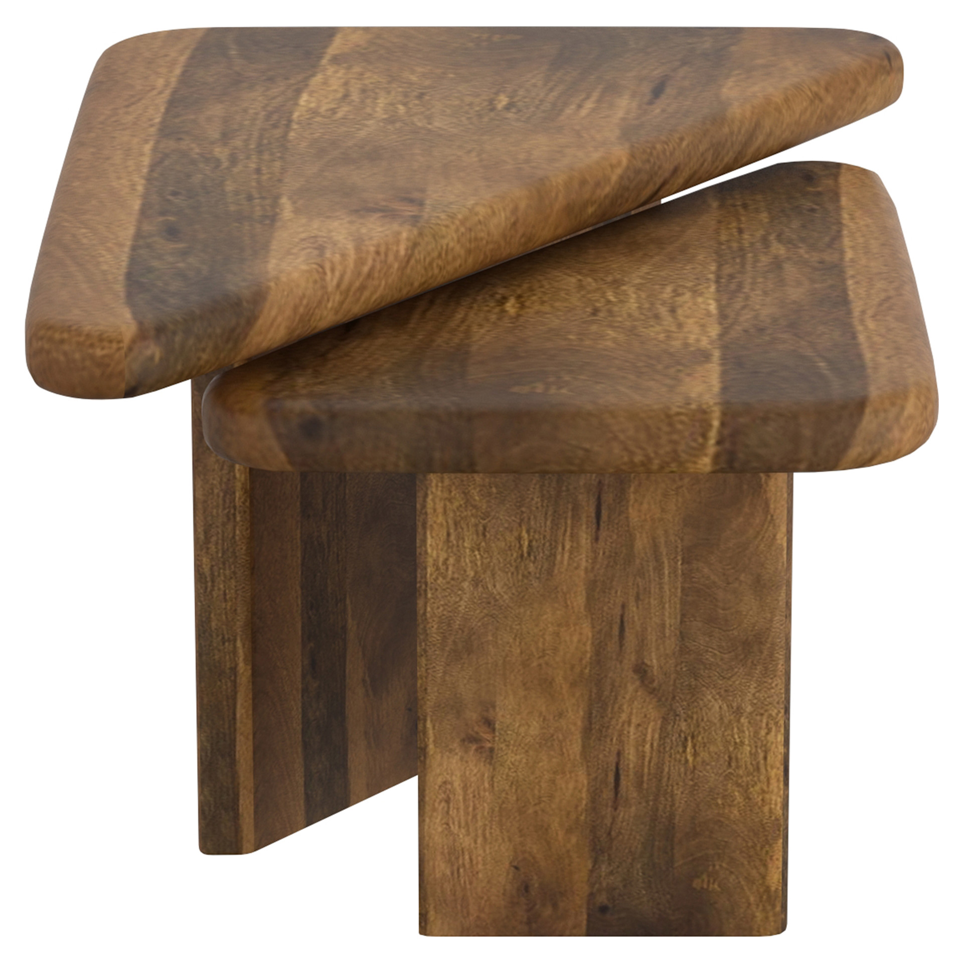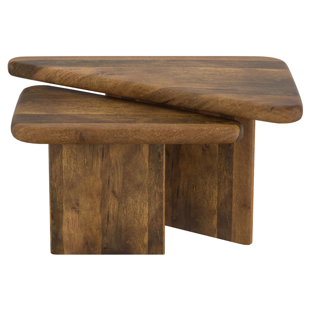 Geometry plays a big part in how our spaces come to life - these triangular tables work well create that visual interest. The solid mango wood tables have varying heights so they can be nested together or placed separately, whatever configuration appeals to you. Thick and sturdy tables tops are great to hold a host of snacks for a dinner party, or to kick your feet up on at the end of the day. Smaller scale tables will work well in smaller spaces, or nested together will create a larger table look.