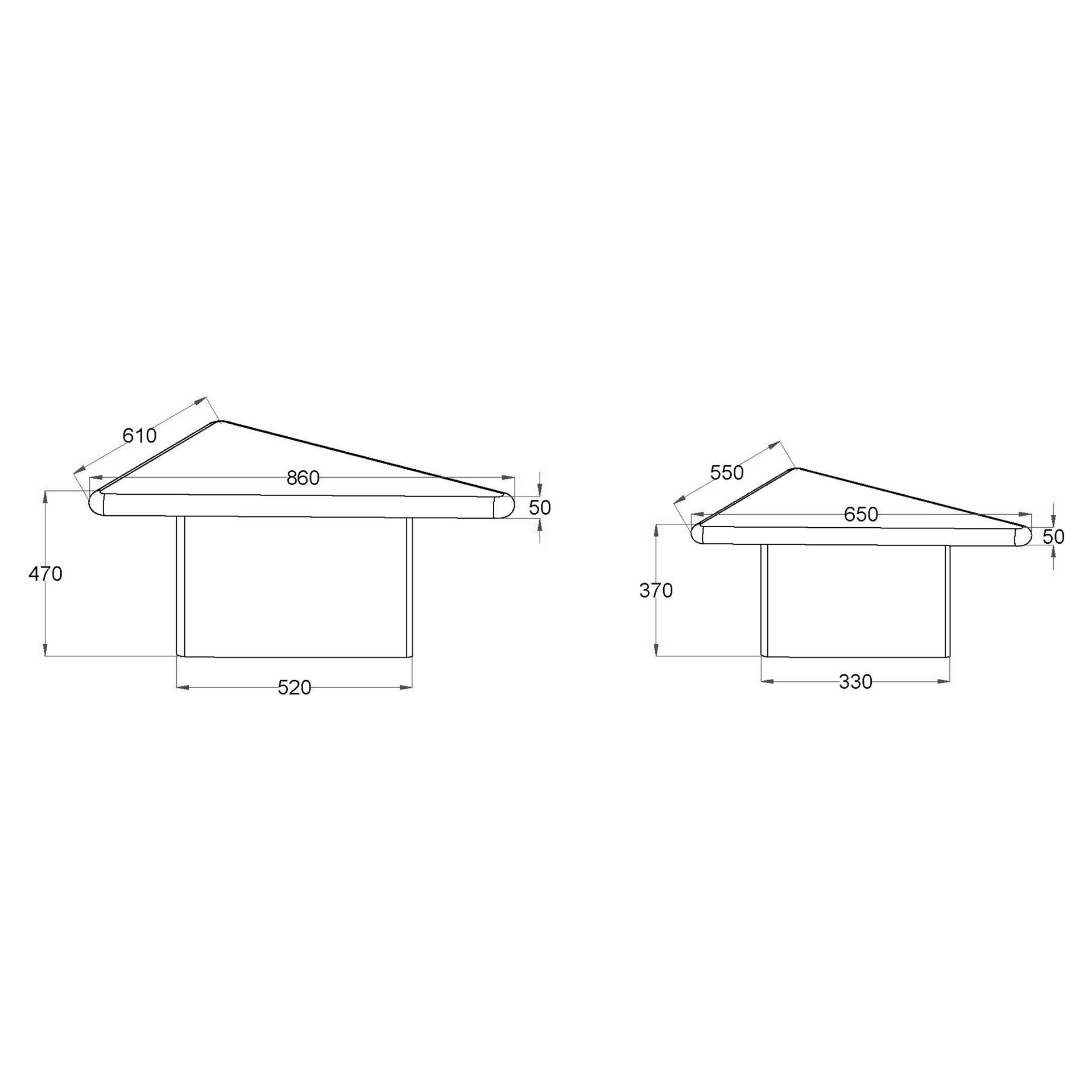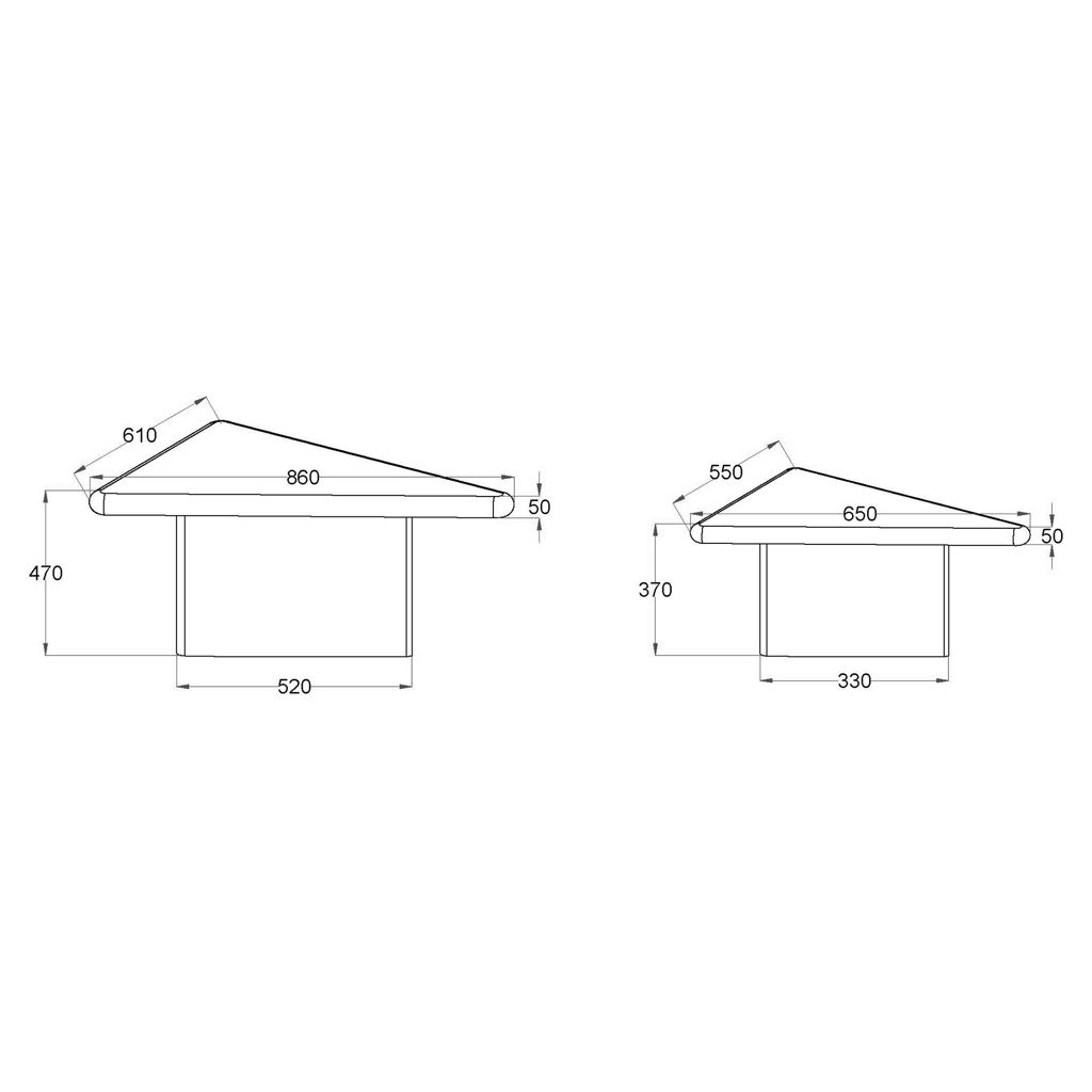 • 2-piece sturdy triangular table design