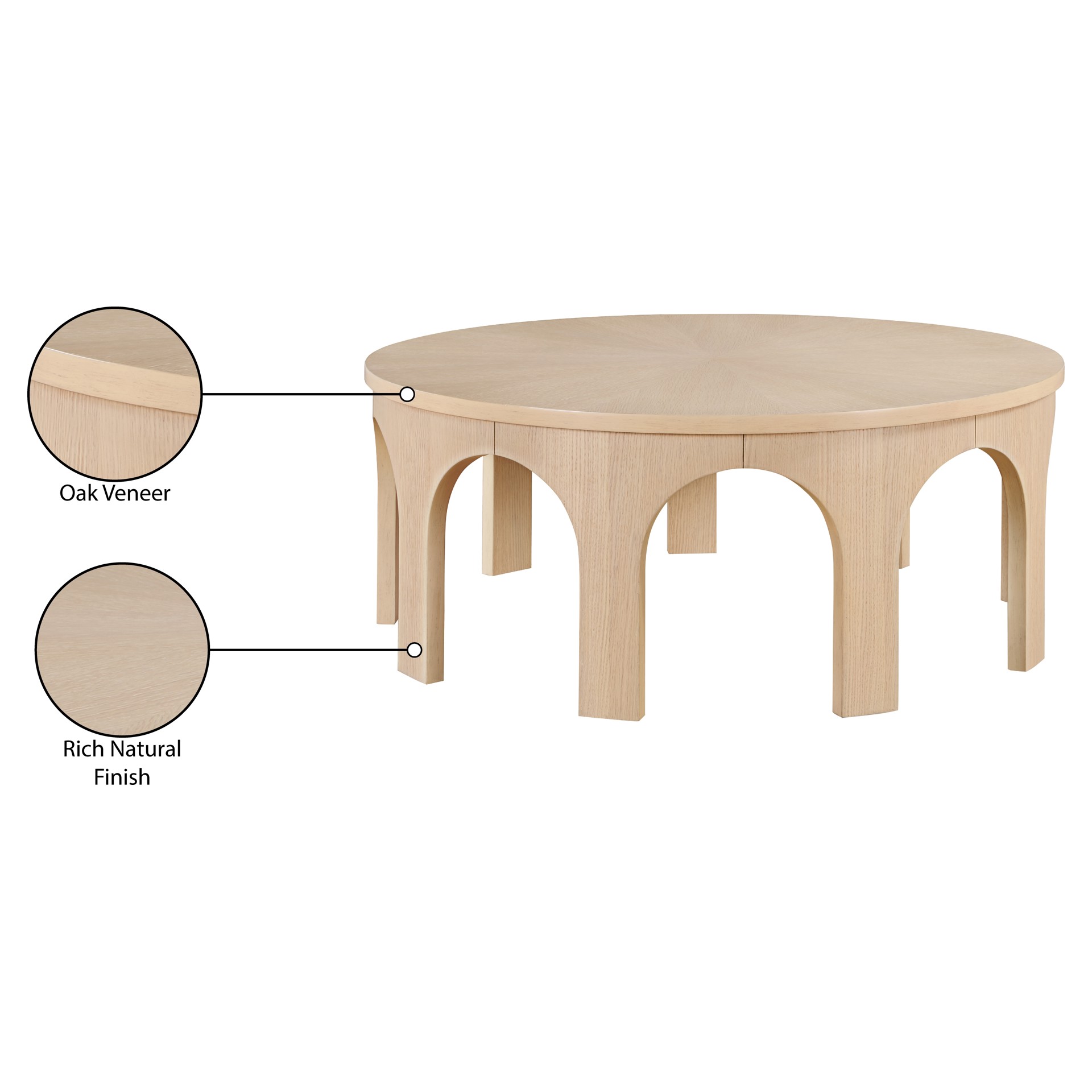 Complete the look of your space with the stunning Westfield natural coffee table. Its rich natural oak finish, oak veneer, and blend of solid wood and MDF seamlessly come together in an art deco design.