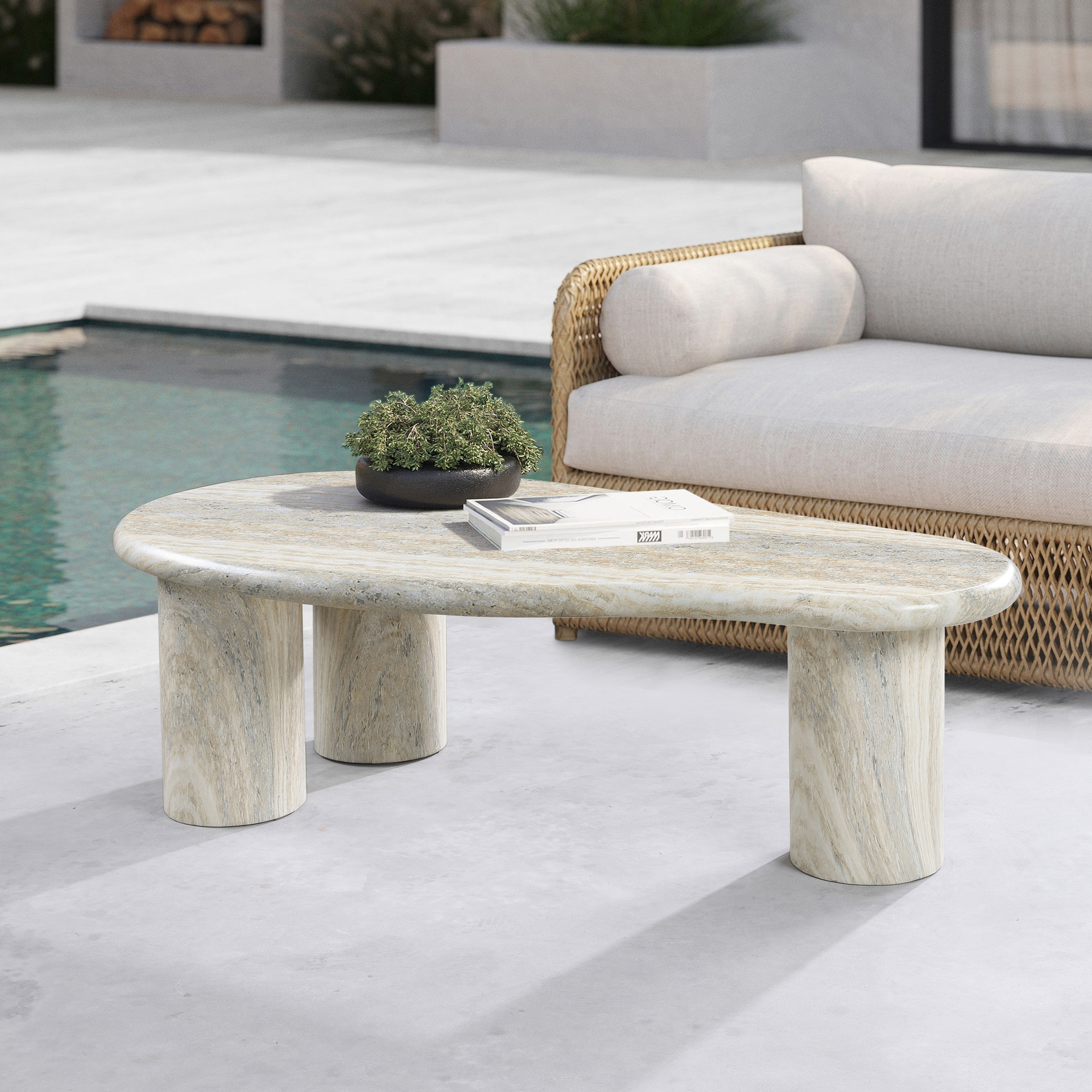 Crafted with precision and durability in mind, this stunning piece becomes the focal point of gatherings, fostering moments of connection and warmth. Embrace sophistication and style with the Sassari concrete coffee table with a travertine finish, a testament to exquisite taste and timeless beauty.