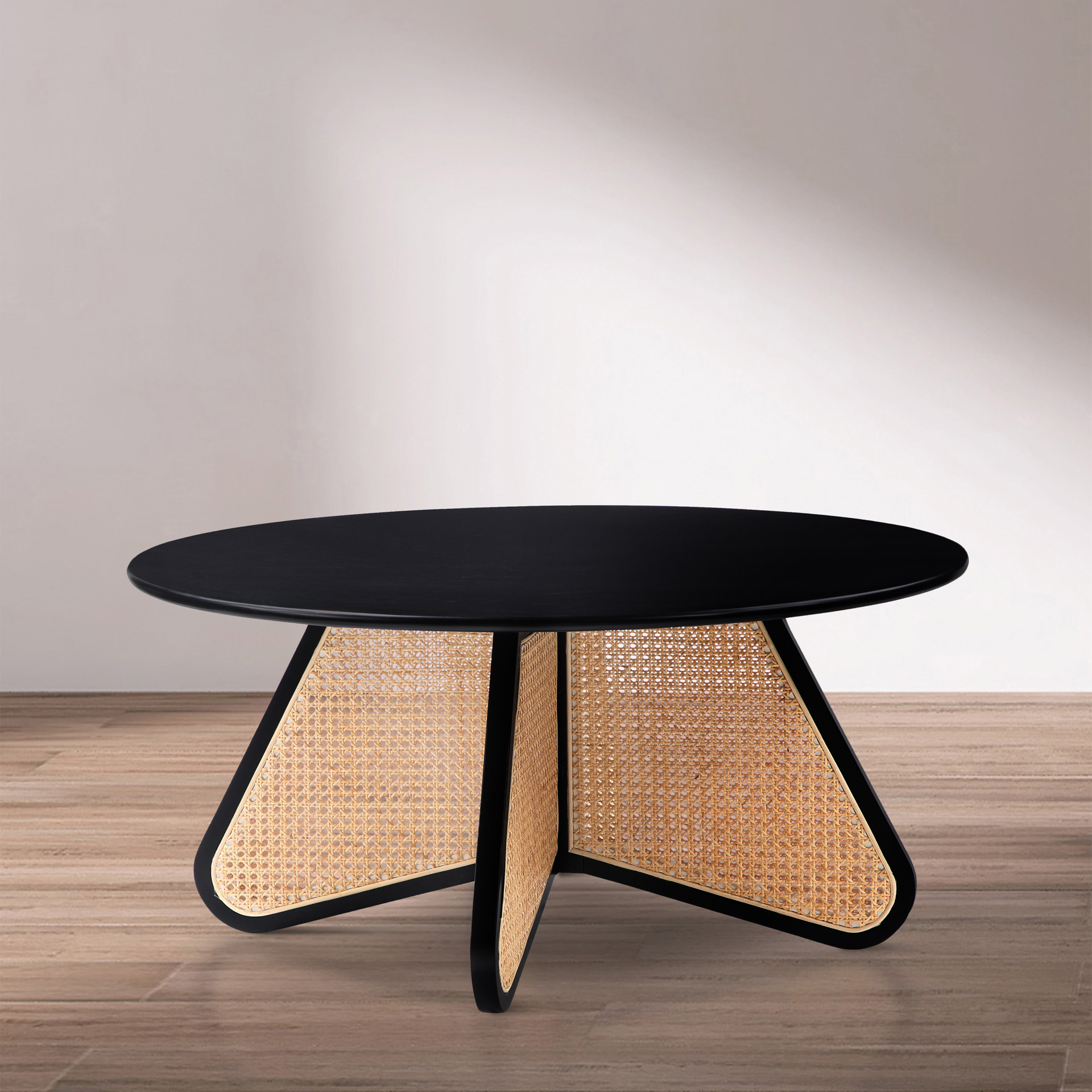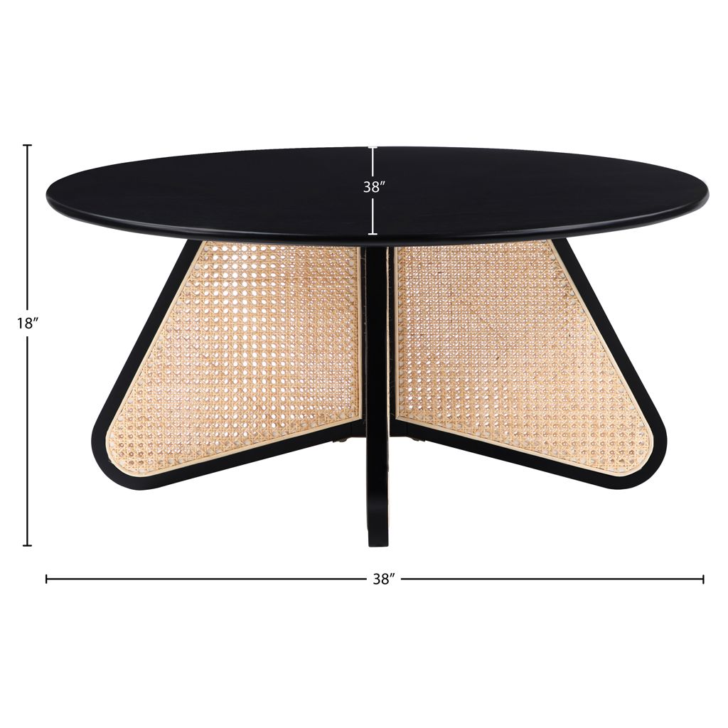 Construction with rubberwood and wood products gives this Butterfly table a resilient design, while its natural cane bottom adds a striking visual and instantly draws the eye.