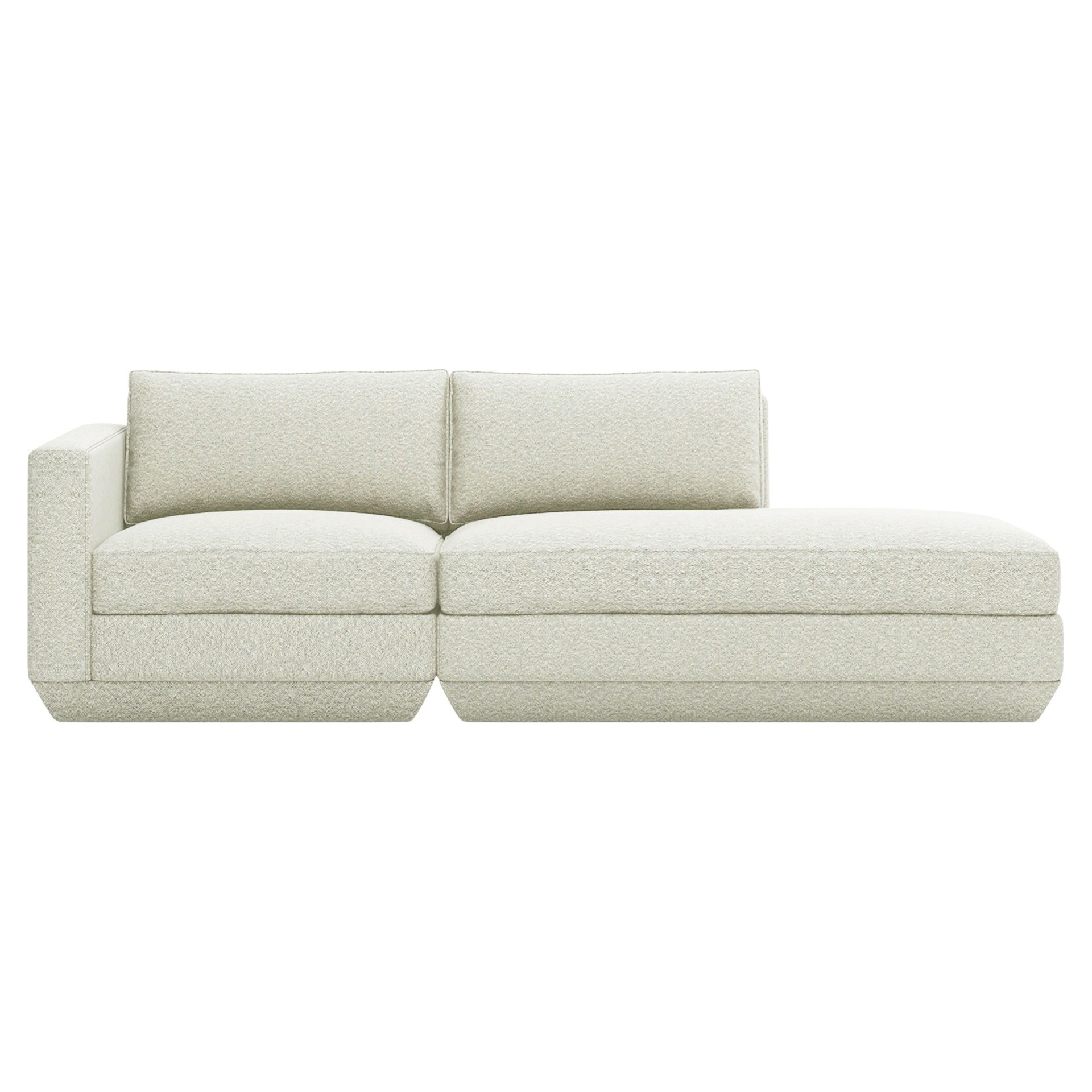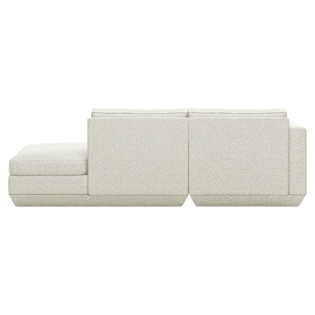 Components can then be easily reconfigured or added at a later date to suit your changing lifestyle. Each component features a relaxed silhouette inspired by 1970s modernism: a low, deep seat created by plush seat and back cushions (filled with eco-friendly synthetic down derived from recycled water bottles) and an attractive, slightly sloping, chamfered base.
