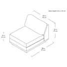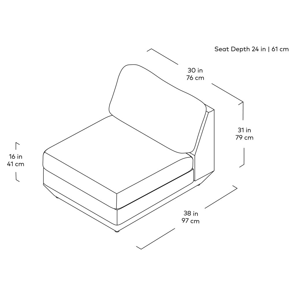 Components can then be easily reconfigured or added later to adapt to your evolving lifestyle. Each component showcases a relaxed silhouette inspired by 1970’s Modernism: a low and deep sit created by plush seat and back cushions (filled with eco-friendly synthetic down derived from recycled water bottles), and an attractive, subtly angled, chamfered base.