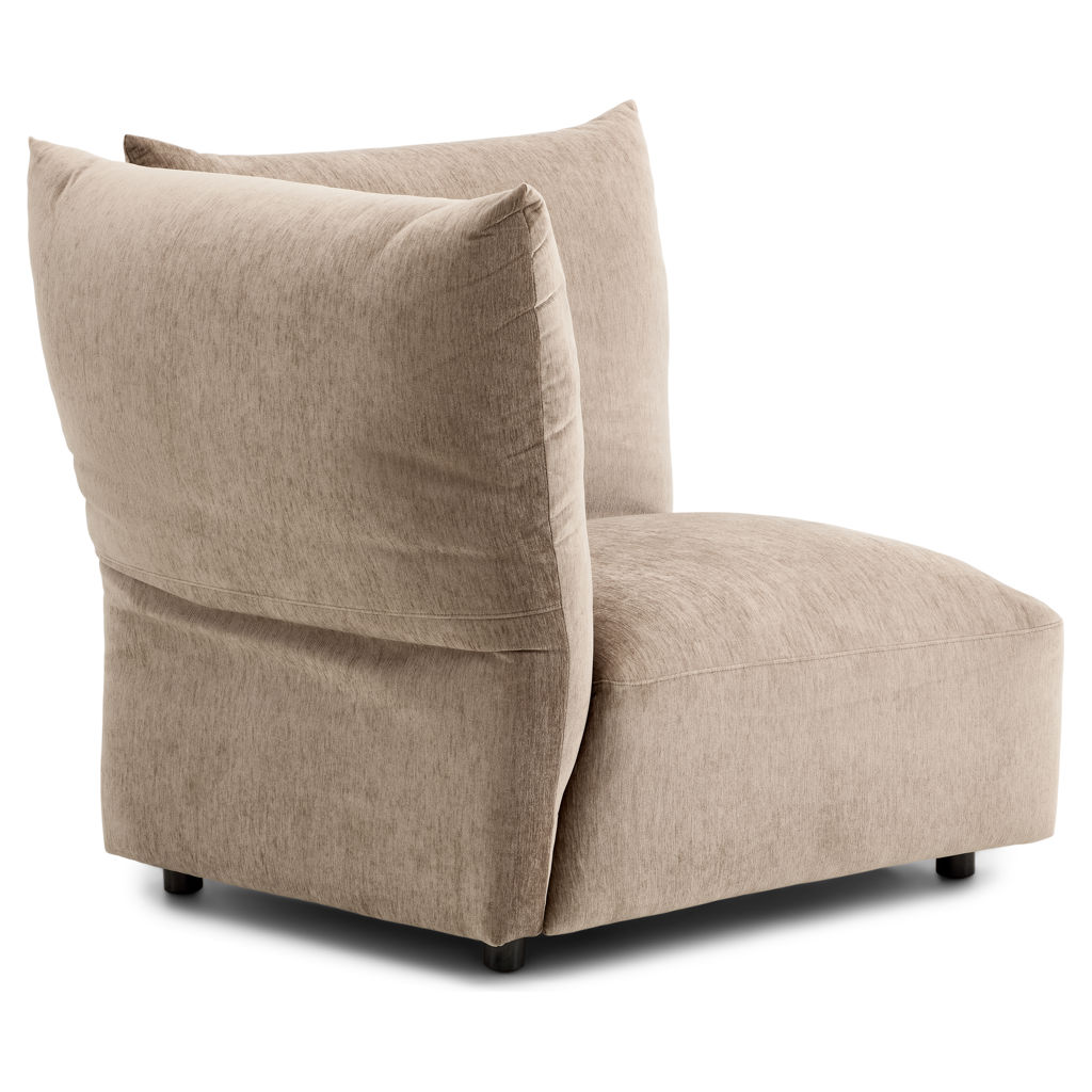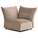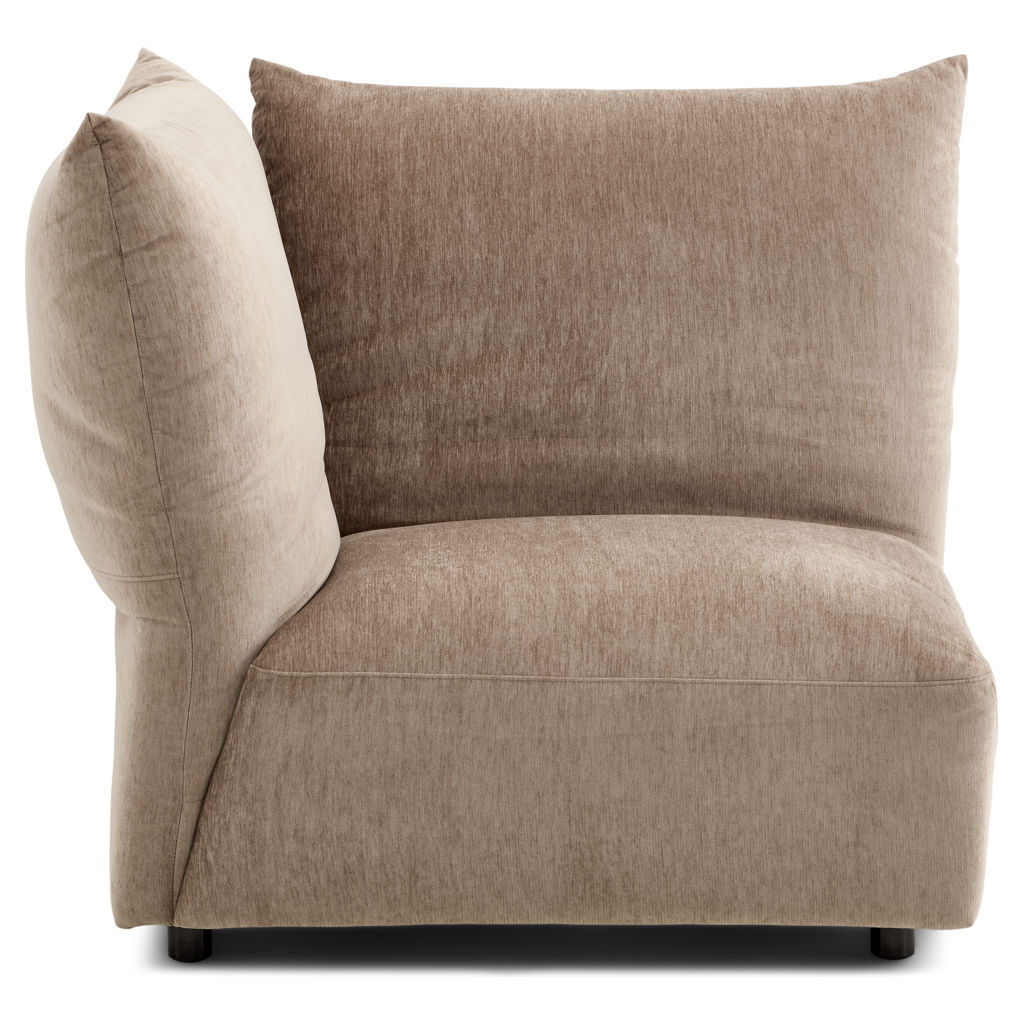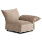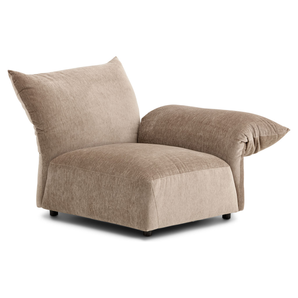 Offered as standard in a soft, plush taupe velvet, the Tobago collection uses 3 basic components (corner chair with extra-deep seat and 3 adjustable backrests, chair with right/left armrests, and chair without armrests) that can be combined to create an unlimited number of seating configurations.