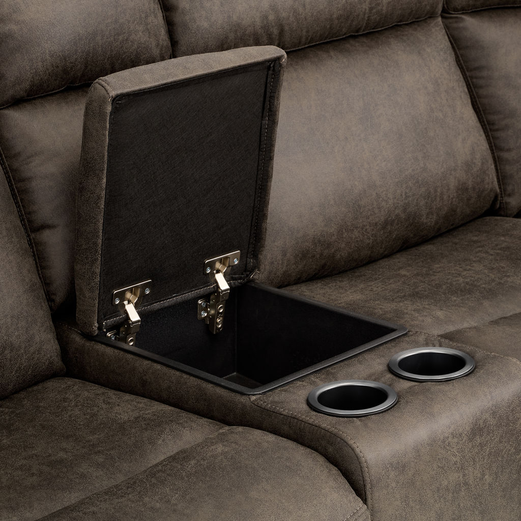 Equipped with intuitive power controls, a convenient storage compartment, built-in cup holders, and a USB port, this piece combines elegance with functionality. Its modular configuration adapts perfectly to your space, while its neutral tone blends effortlessly with any décor.