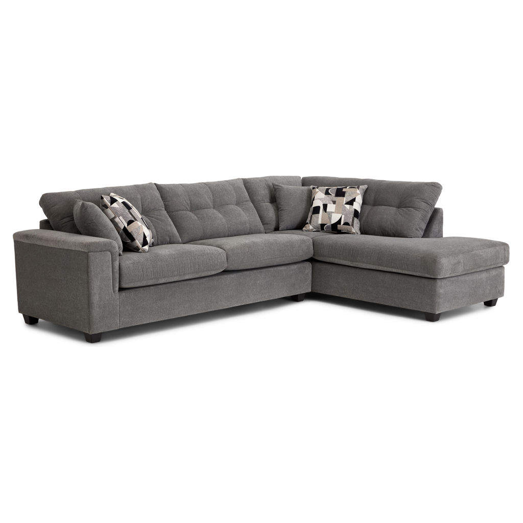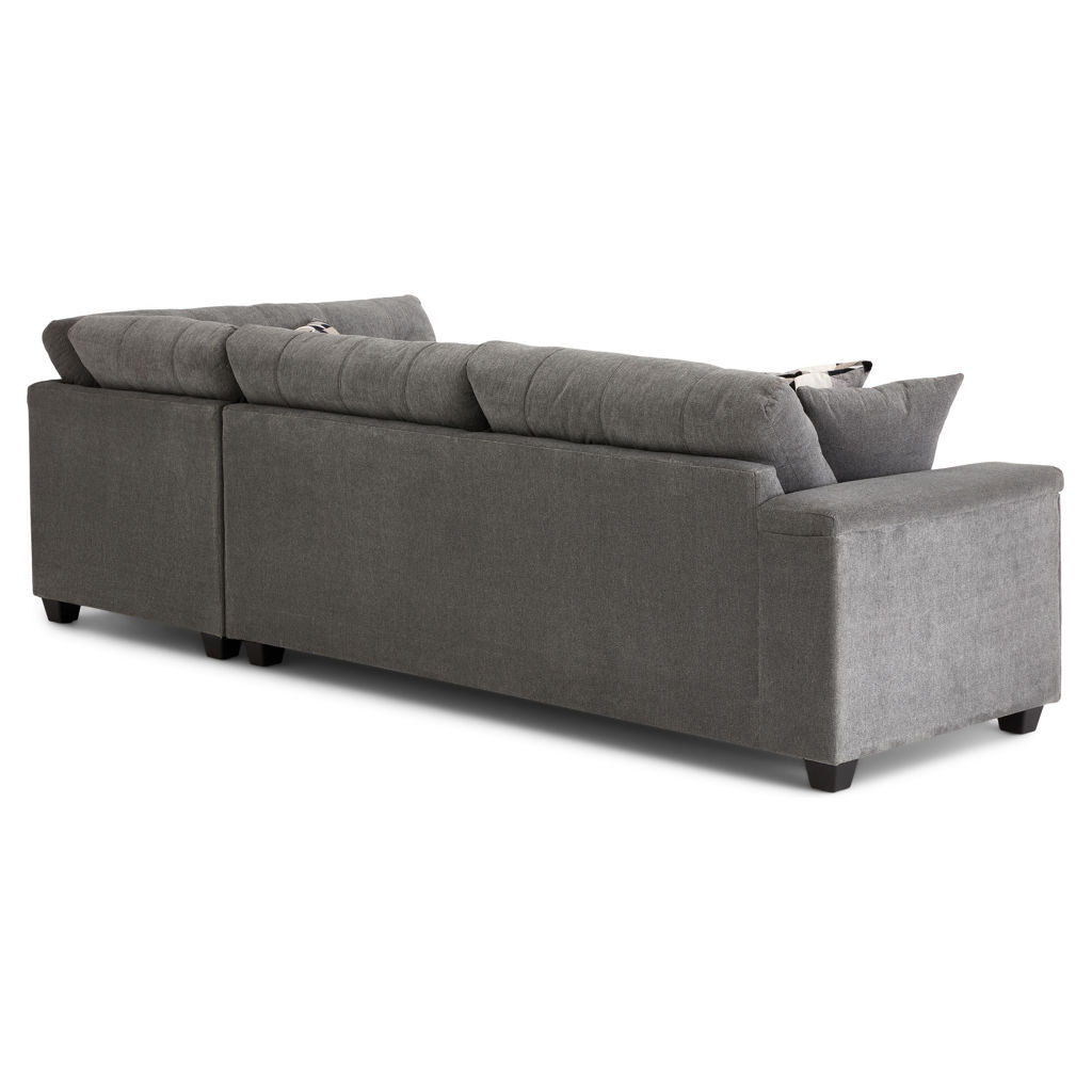 Transform your living room into a true haven of comfort with this stunning sectional with chaise lounge. Its timeless gray fabric blends seamlessly with any décor, while the plush, generously padded cushions invite you to unwind in absolute relaxation.