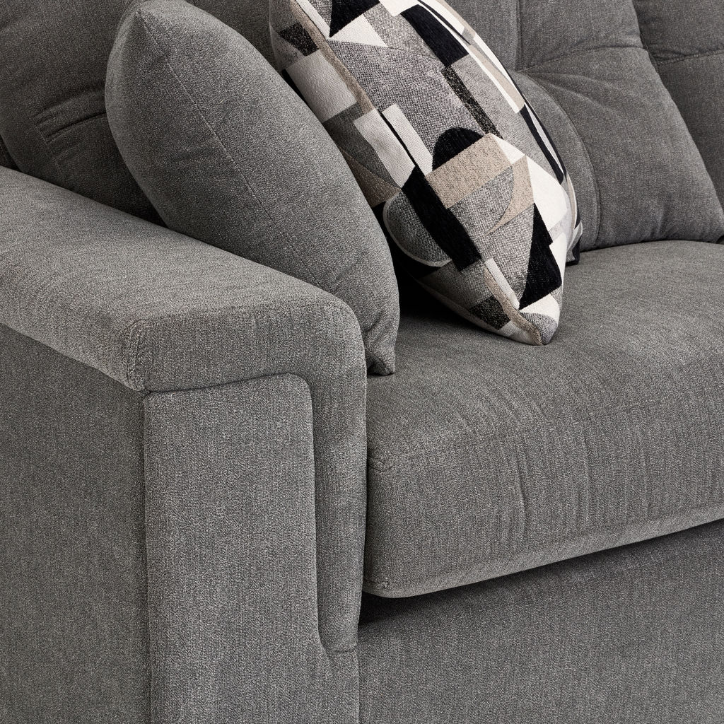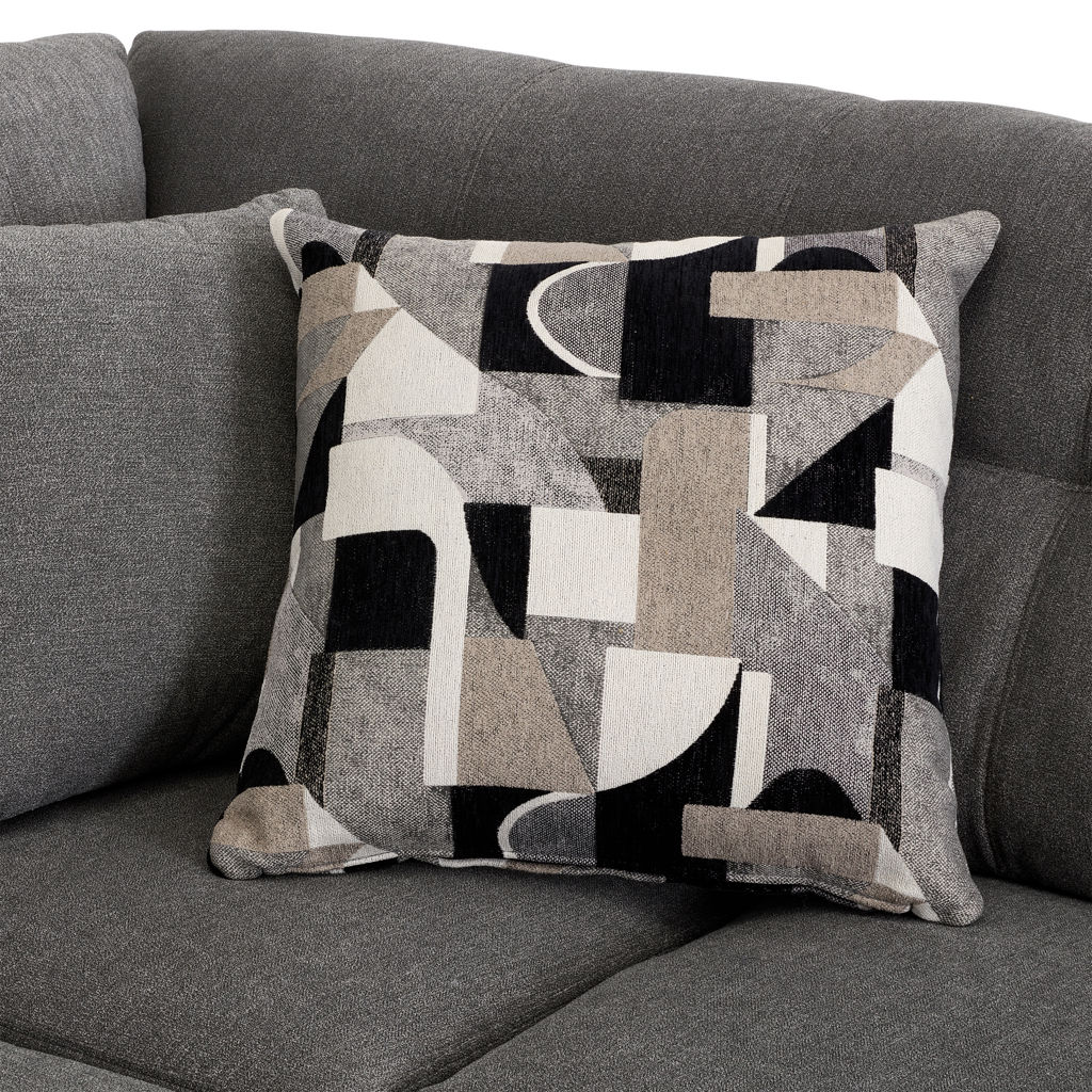 Decorative cushions with geometric patterns add a touch of modern elegance, creating a harmonious and sophisticated ensemble. Built on a sturdy base, this sectional combines durability and style for years of enjoyment.