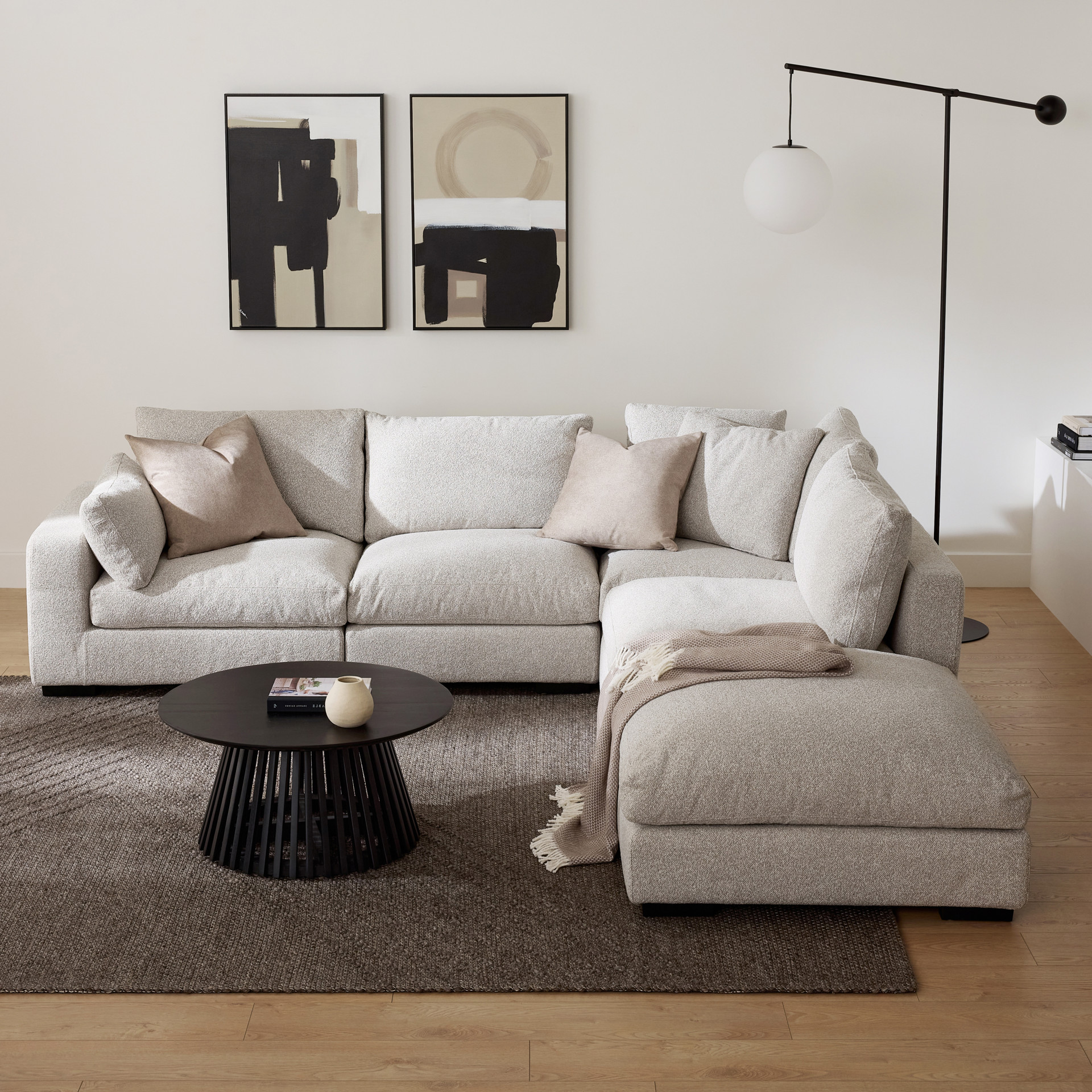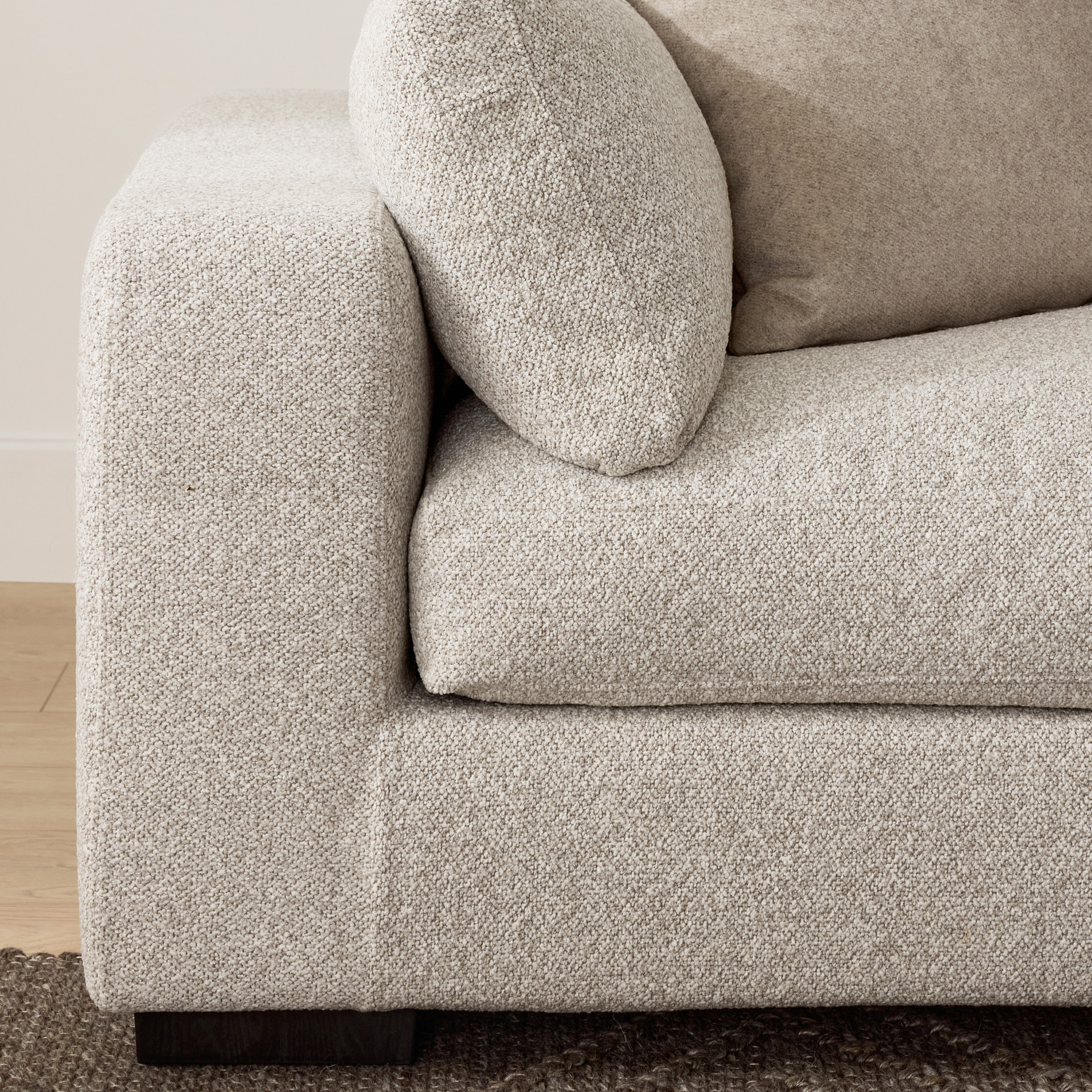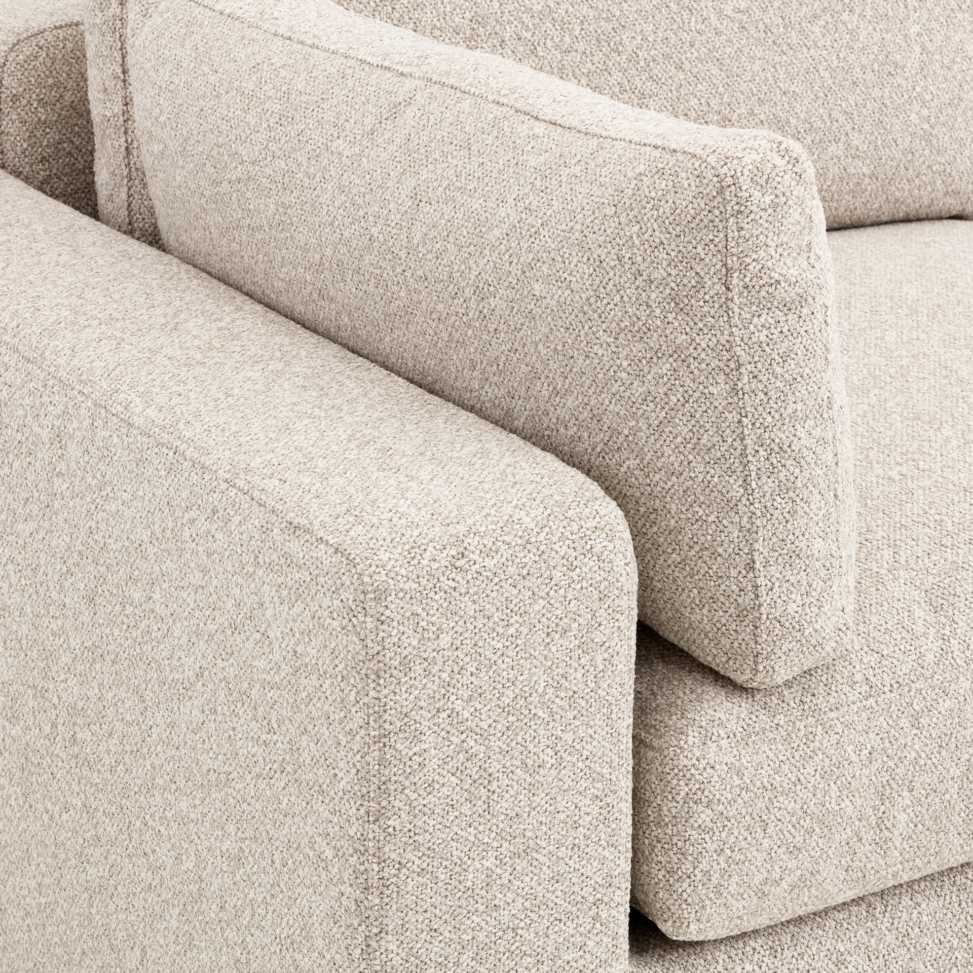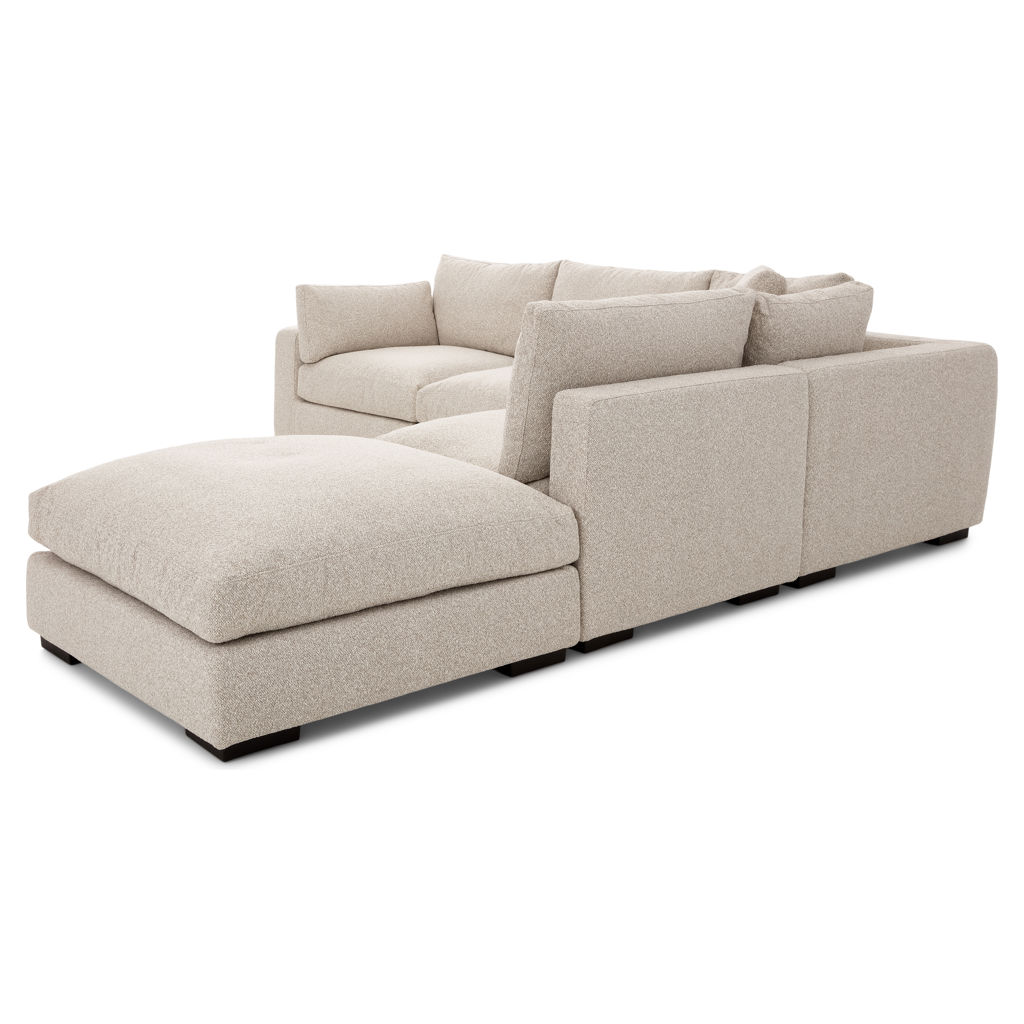 The Onza modular collection redefines modern comfort with its innovative design and luxurious appeal. Available as standard in a tweed greige fabric that blends perfectly with a variety of décor styles, it evokes sophistication and versatility.