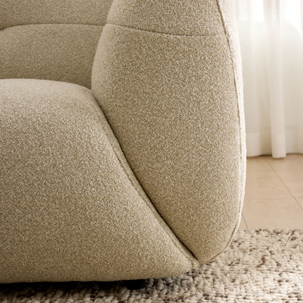 Its soft, textured upholstery enhances comfort, while the curved silhouette adds a warm, modern presence. Ideal for relaxing, entertaining, or simply enjoying quiet moments, it combines style, comfort, and everyday functionality.