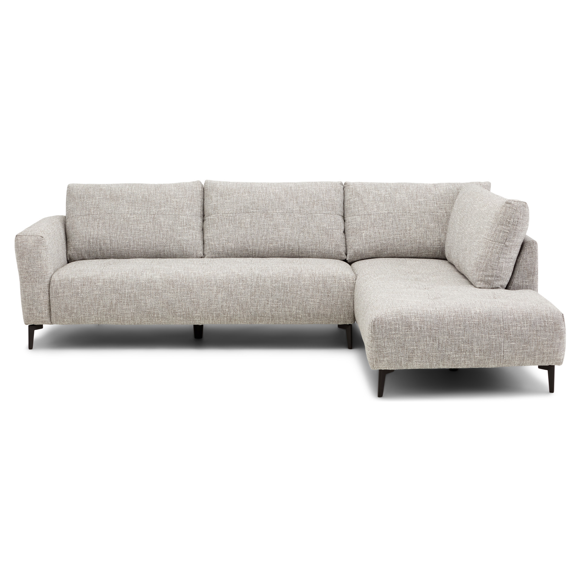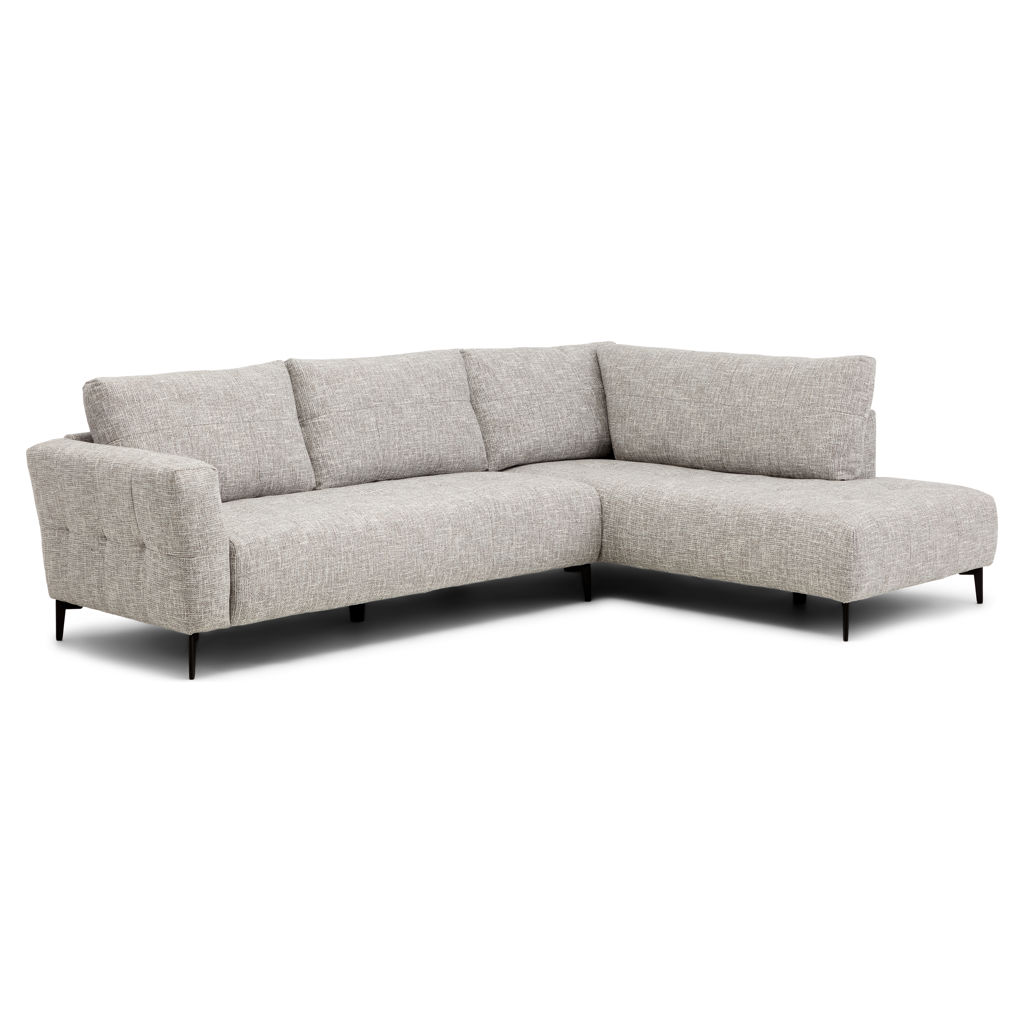 Combining modern design with exceptional comfort, this 2-piece sectional is the perfect addition to elevate your living room. Its clean silhouette and versatile greige fabric blend effortlessly with any décor, while its sturdy construction and refined finishes make it both stylish and durable.