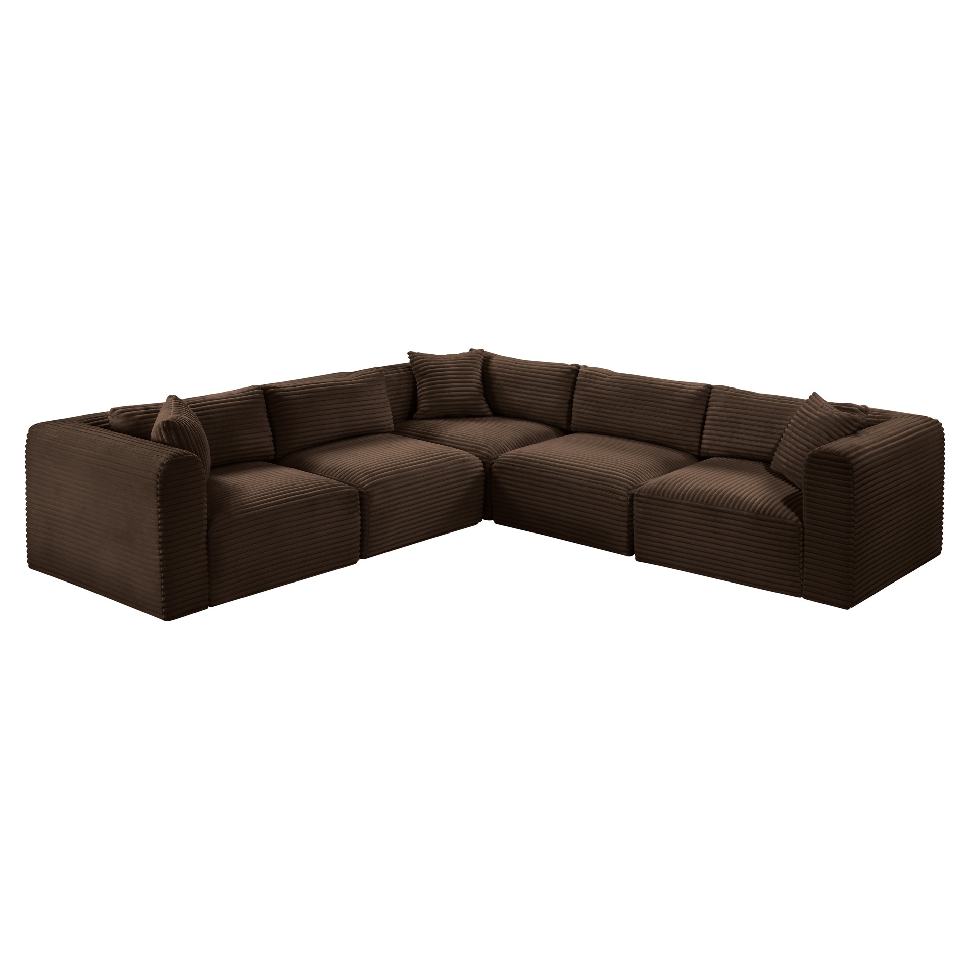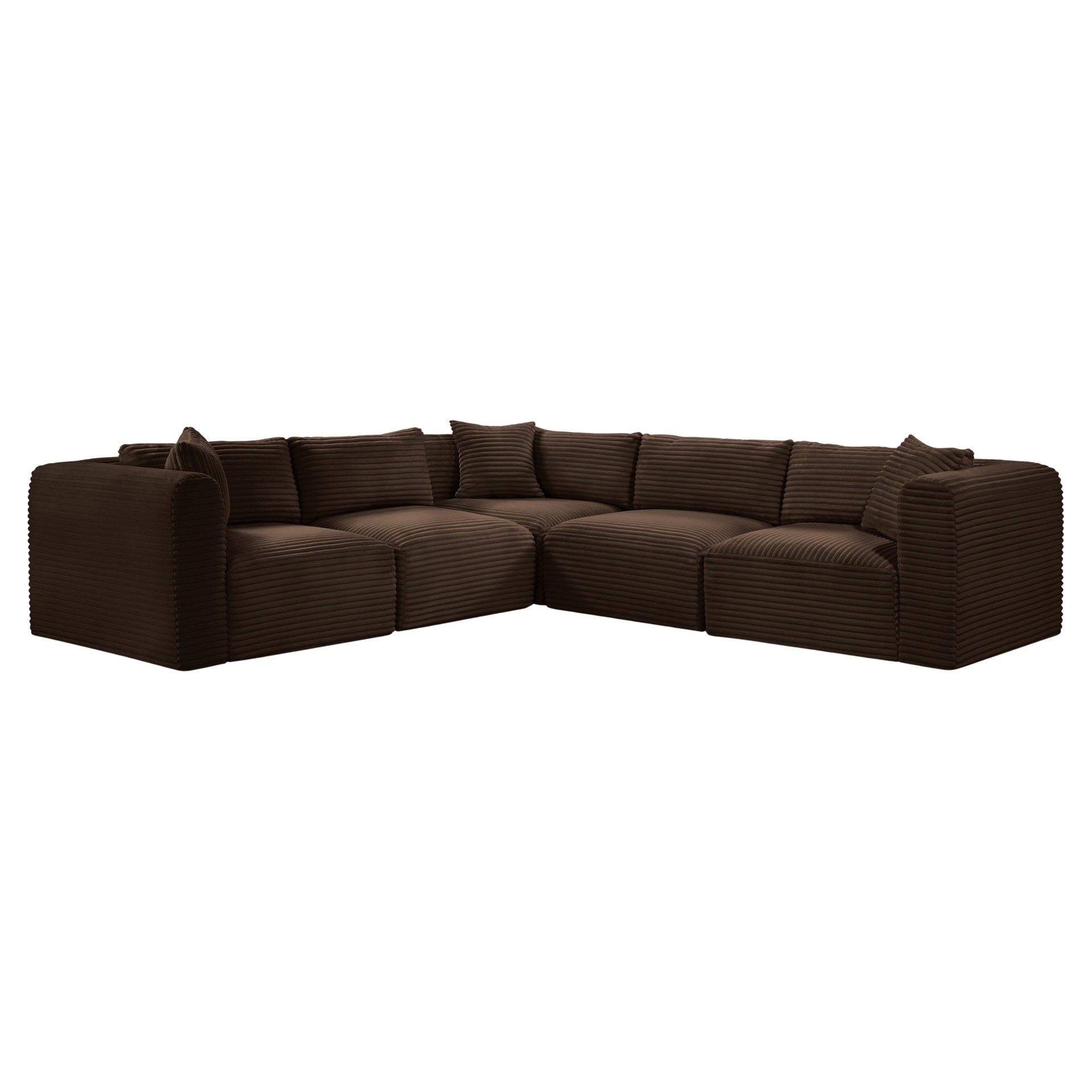 Shaggy 5-Piece Corduroy Modular Sectional Meridian Furniture 641BROWN-SEC5C