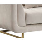 Curved, generous lines invite relaxation, while plush cushions ensure optimal comfort for all your moments of rest. The elevated structure with gold legs adds a refined touch and creates a sense of spaciousness in your room.