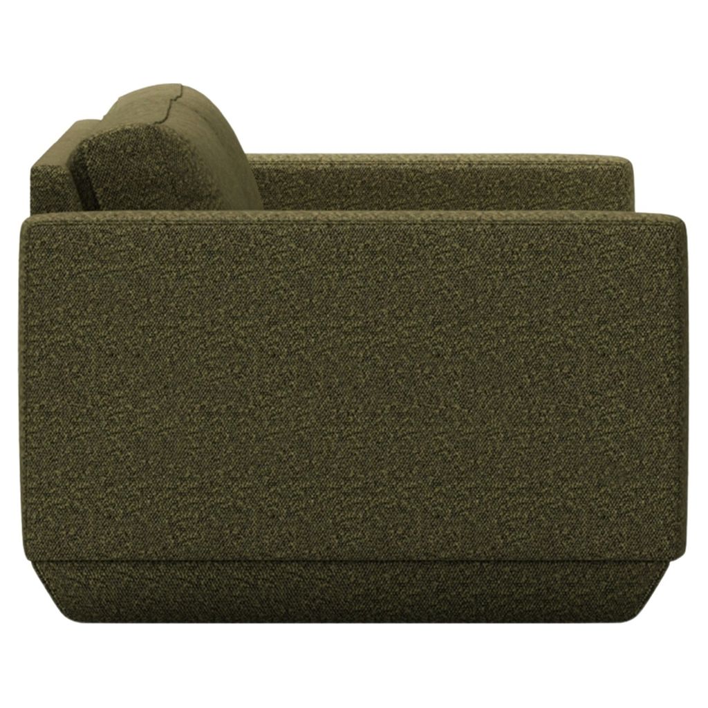 Components can then be easily reconfigured or added at a later date to suit your changing lifestyle. Each component features a relaxed silhouette inspired by 1970s modernism: a low, deep seat created by plush seat and back cushions (filled with eco-friendly synthetic down derived from recycled water bottles) and an attractive, slightly sloping, chamfered base.