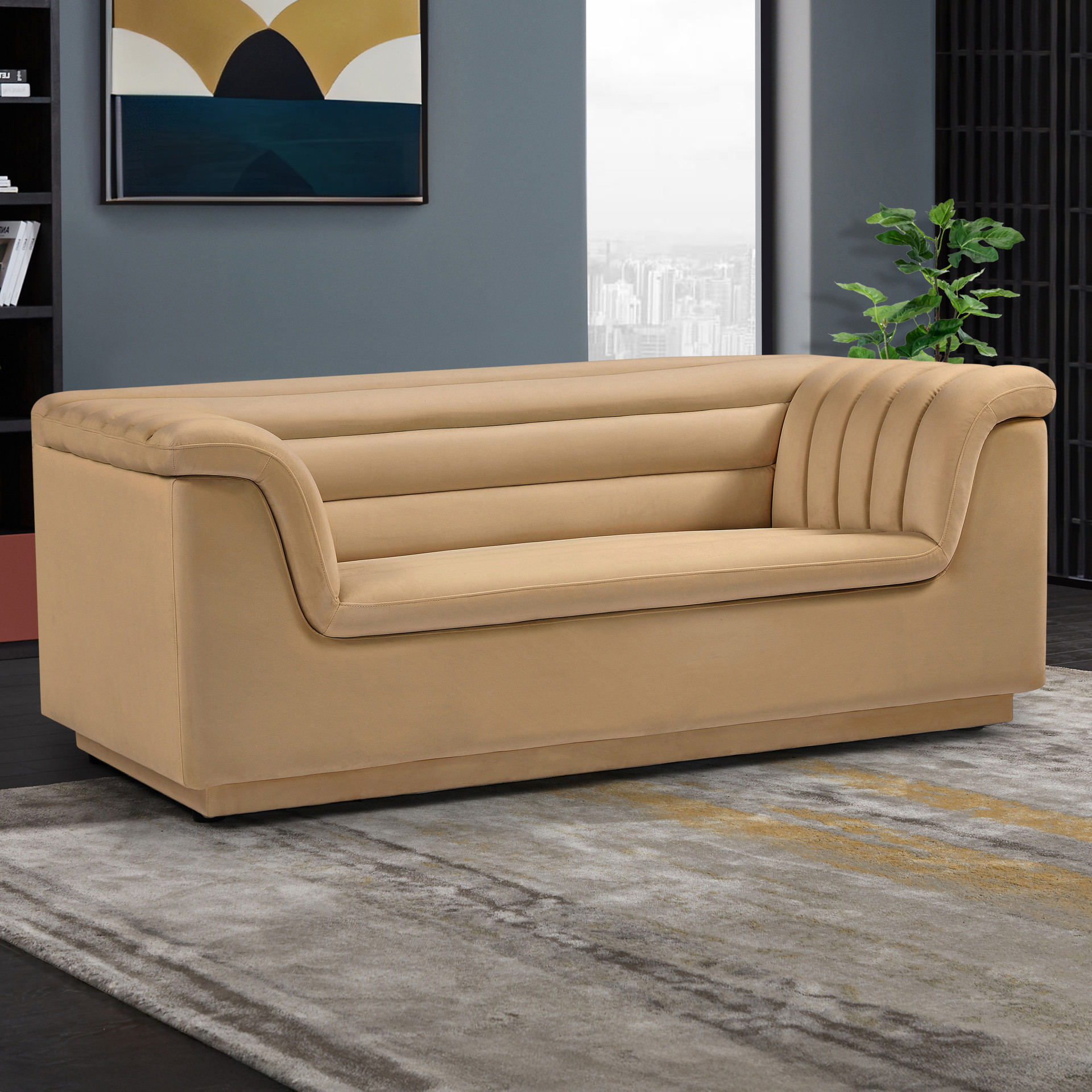 Cascade Velvet Fabric Loveseat Meridian Furniture 192CAMEL-L