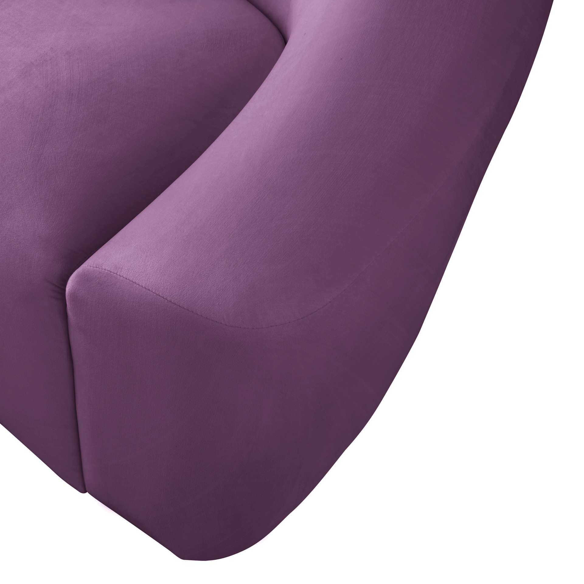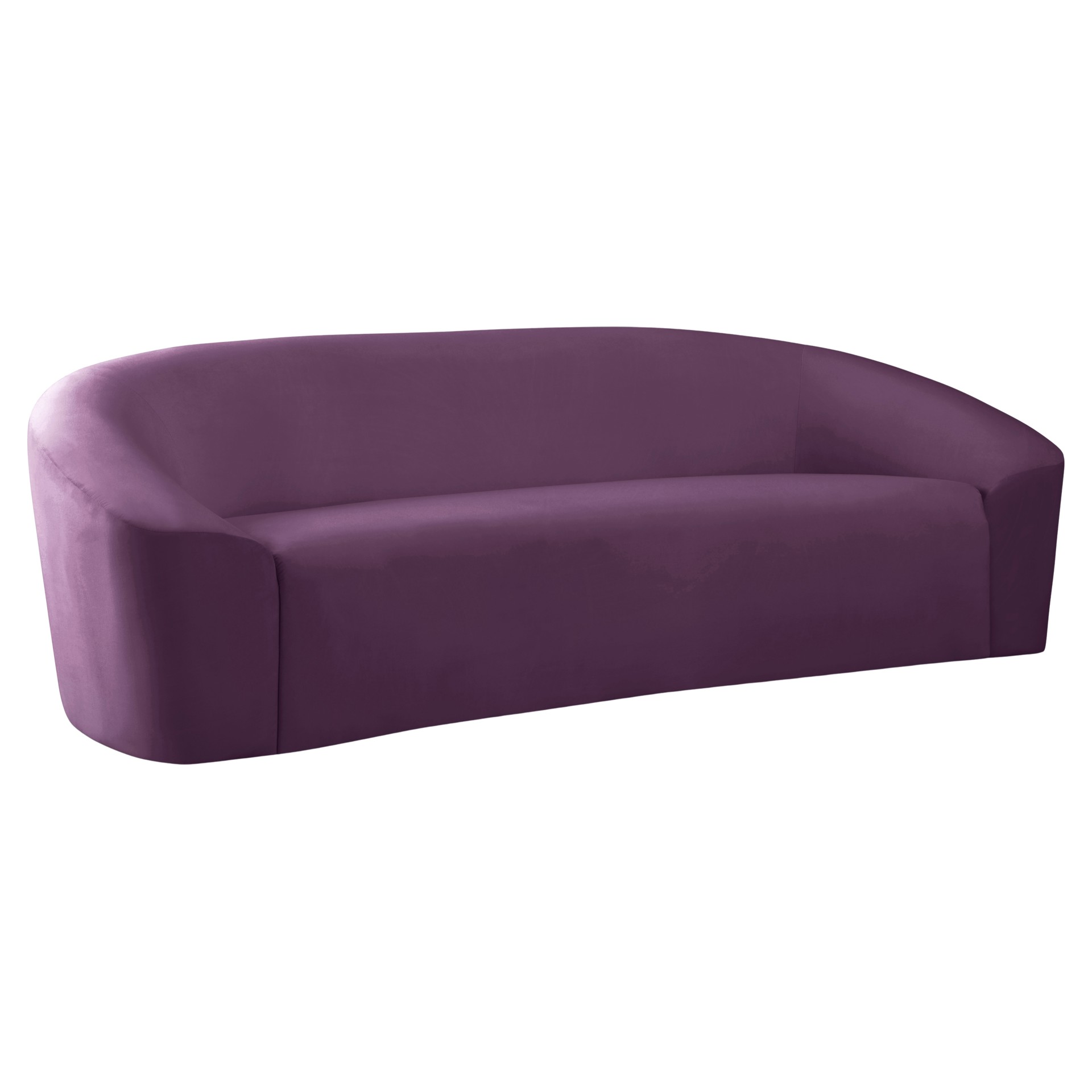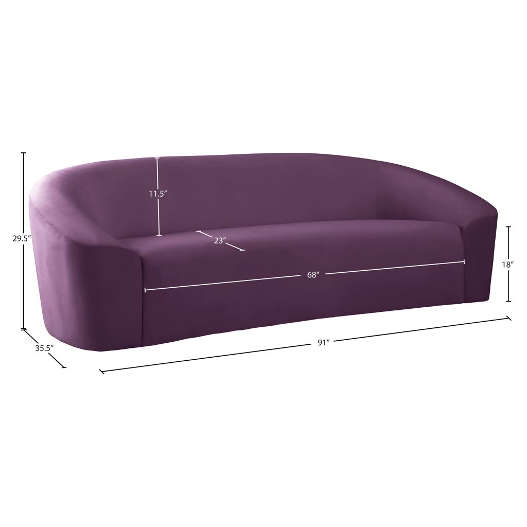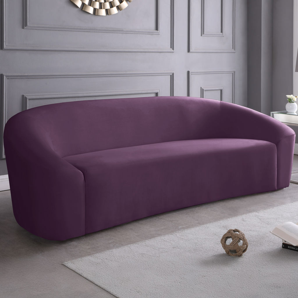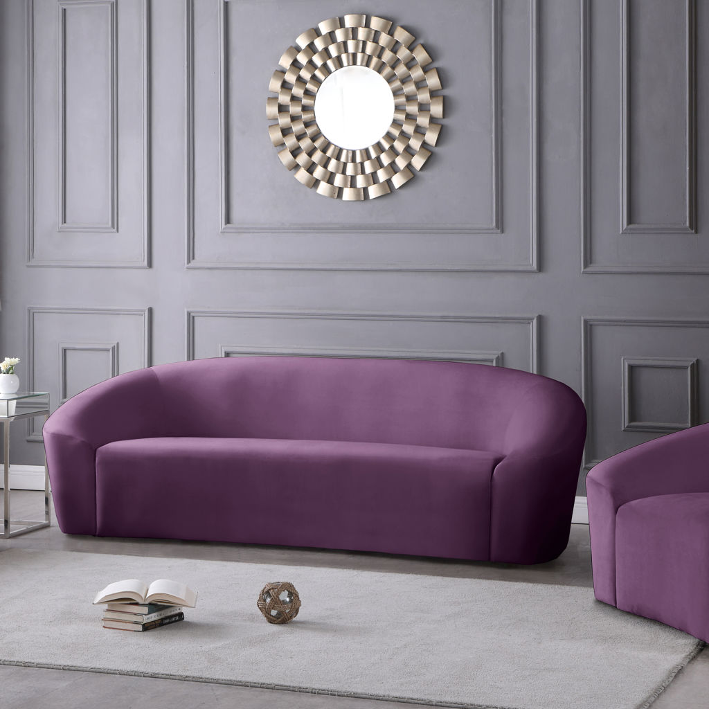Go for easy, breezy style with this lovely Riley velvet sofa. The sleek purple velvet is a showstopper in the living room, den, or great room, adding a casual yet modern vibe wherever you choose to use it. The velvet material feels soft and welcoming to the touch, ensuring that your leisure time is well spent in cloud-like comfort. Pair it with other items in the Riley collection, or use it on its own as a standalone piece.