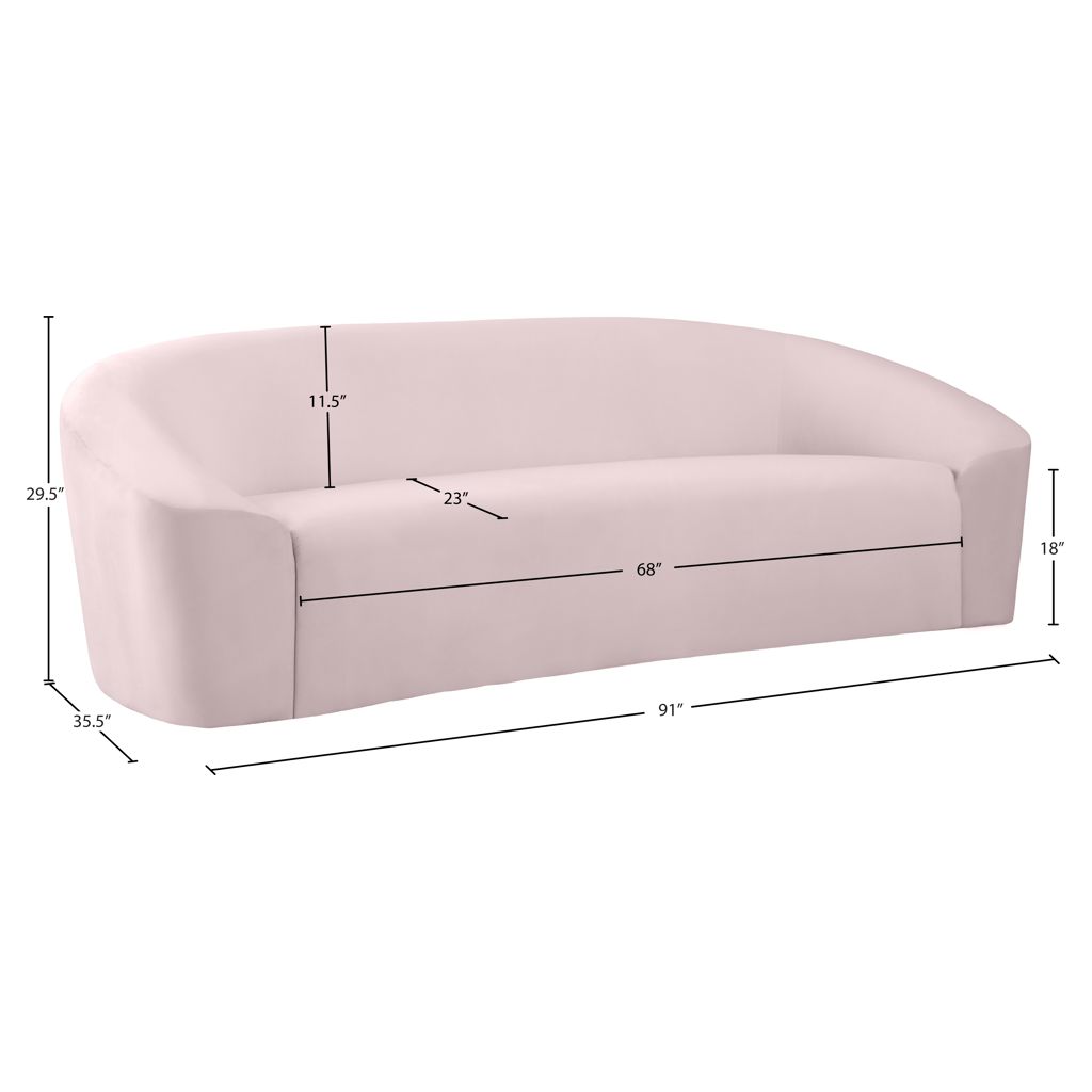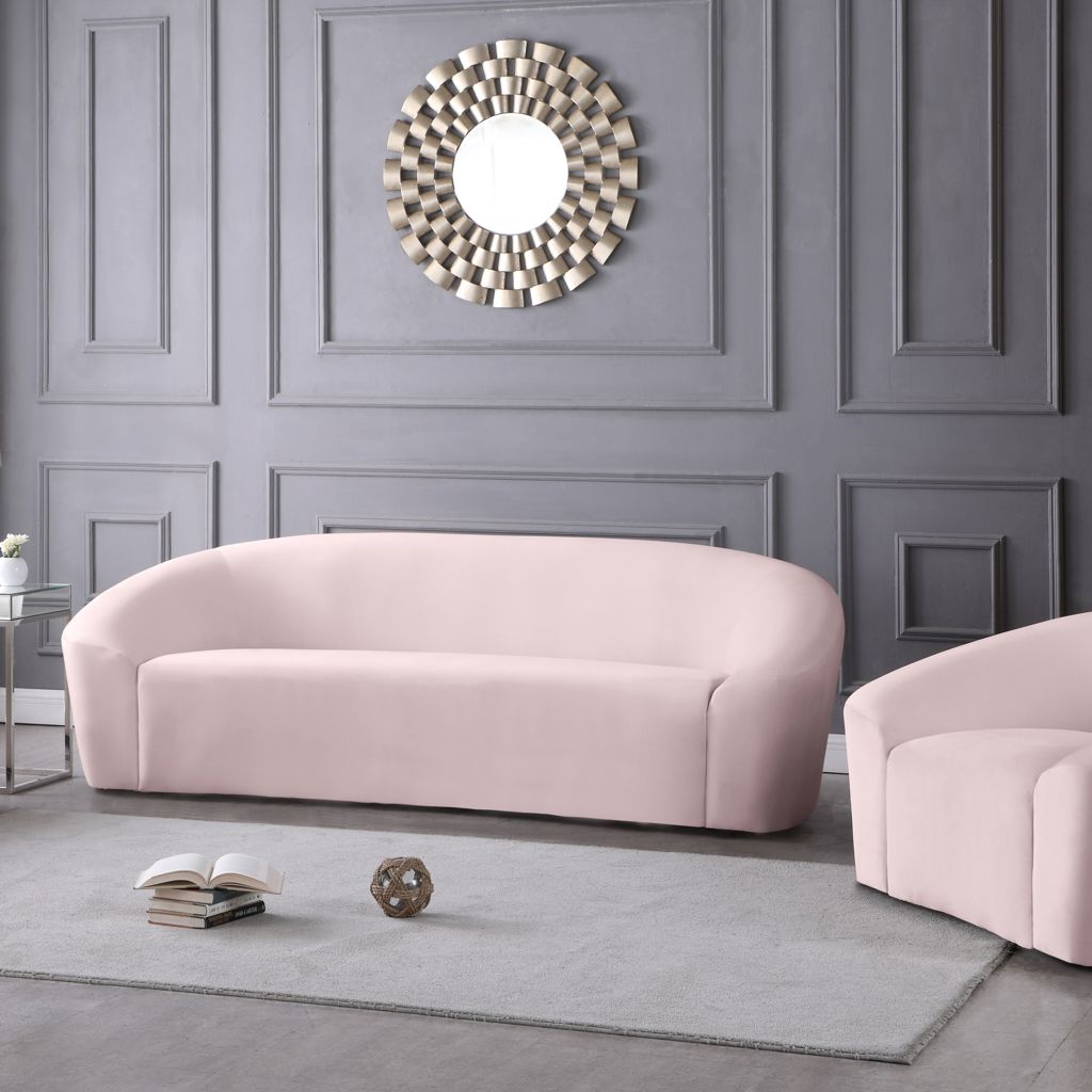 Go for easy, breezy style with this lovely Riley velvet sofa. The sleek pink velvet is a showstopper in the living room, den, or great room, adding a casual yet modern vibe wherever you choose to use it. The velvet material feels soft and welcoming to the touch, ensuring that your leisure time is well spent in cloud-like comfort. Pair it with other items in the Riley collection, or use it on its own as a standalone piece.