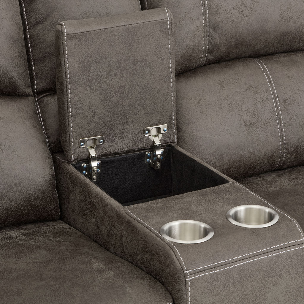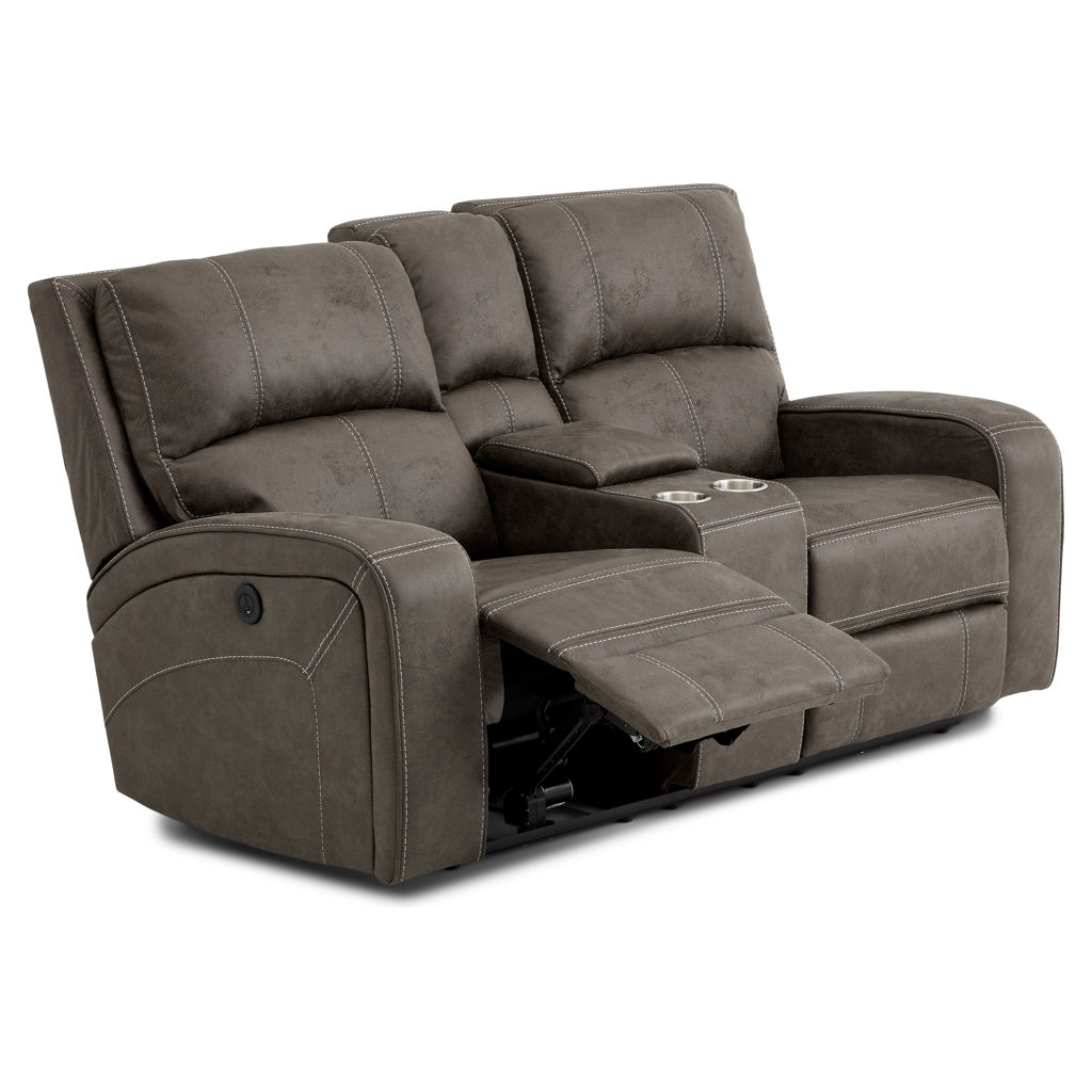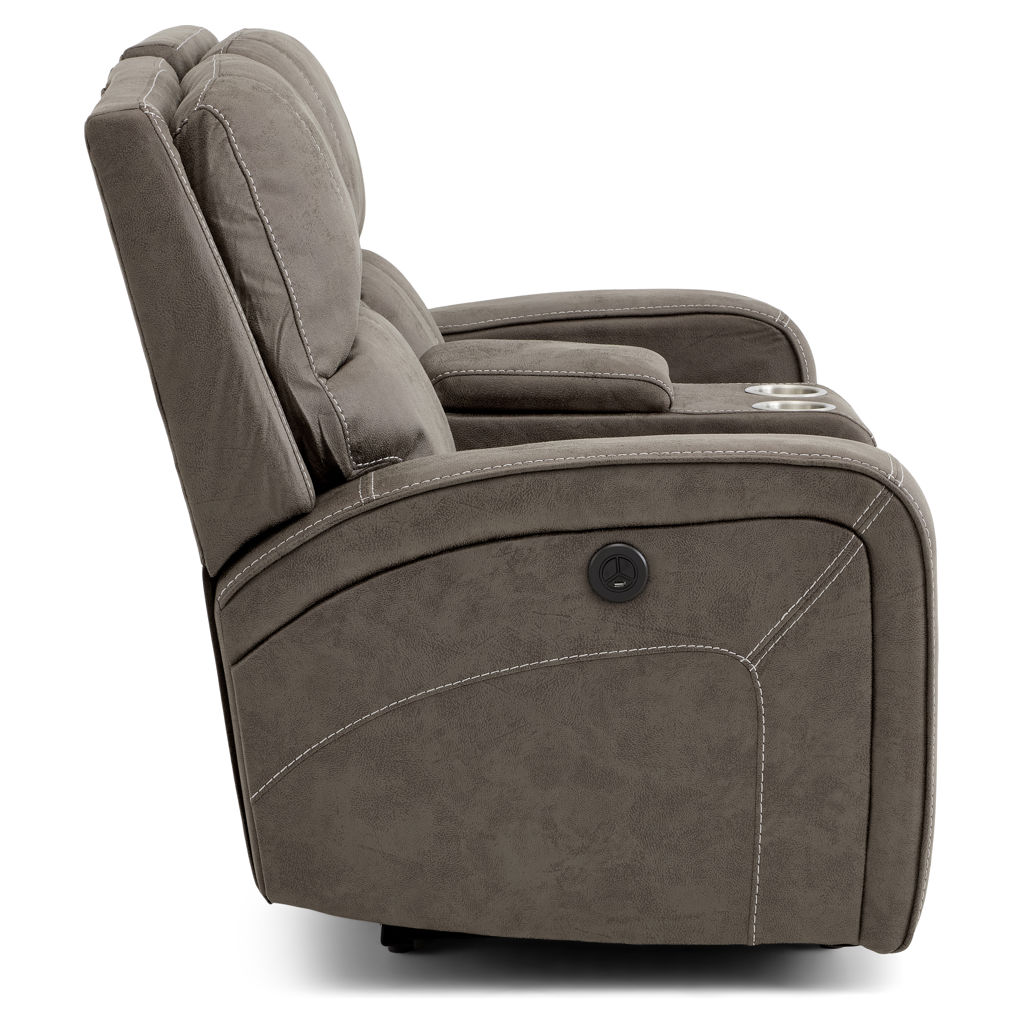Perth Power Reclining Loveseat with Cupholder Console Kwality Imports ltd 8279-L-DGR