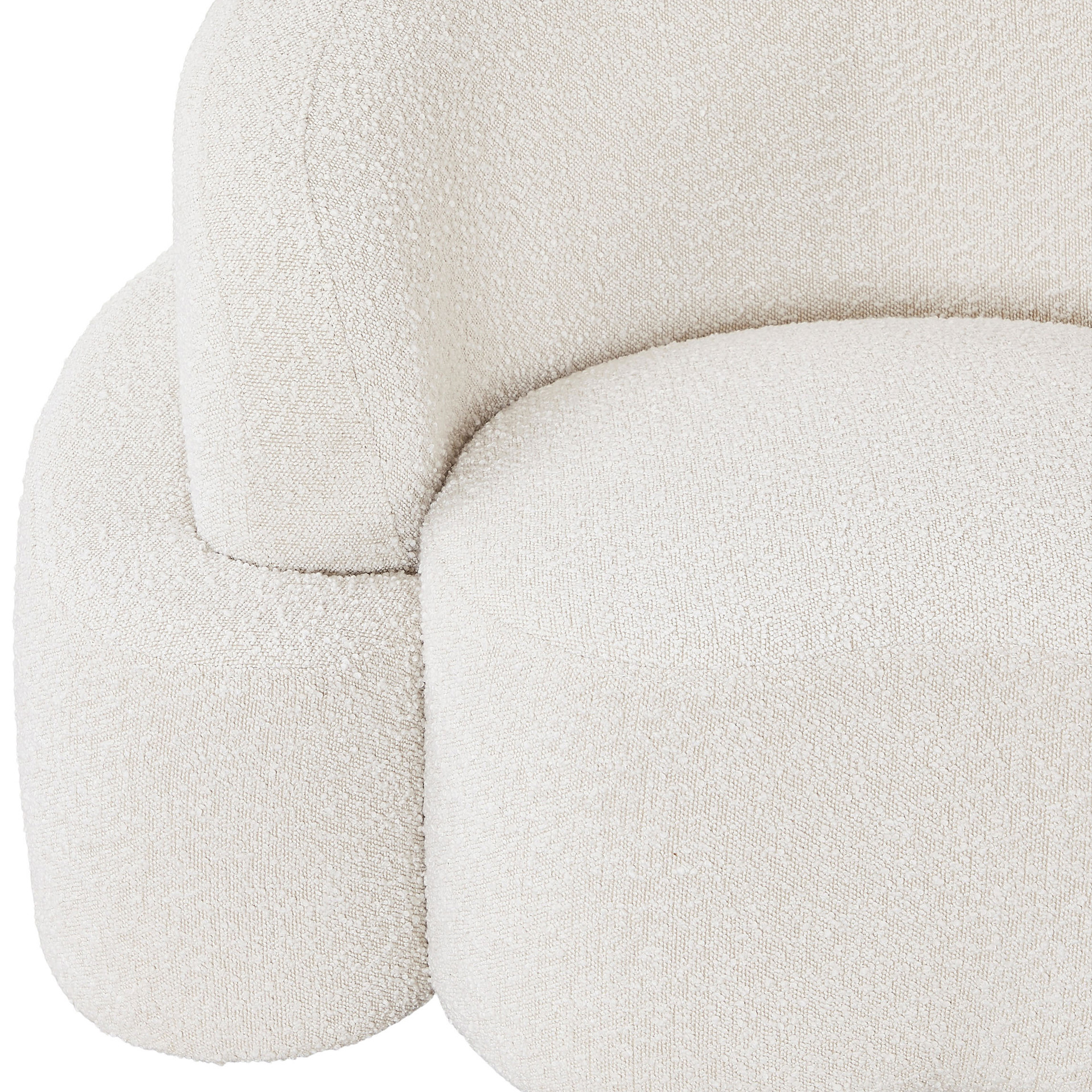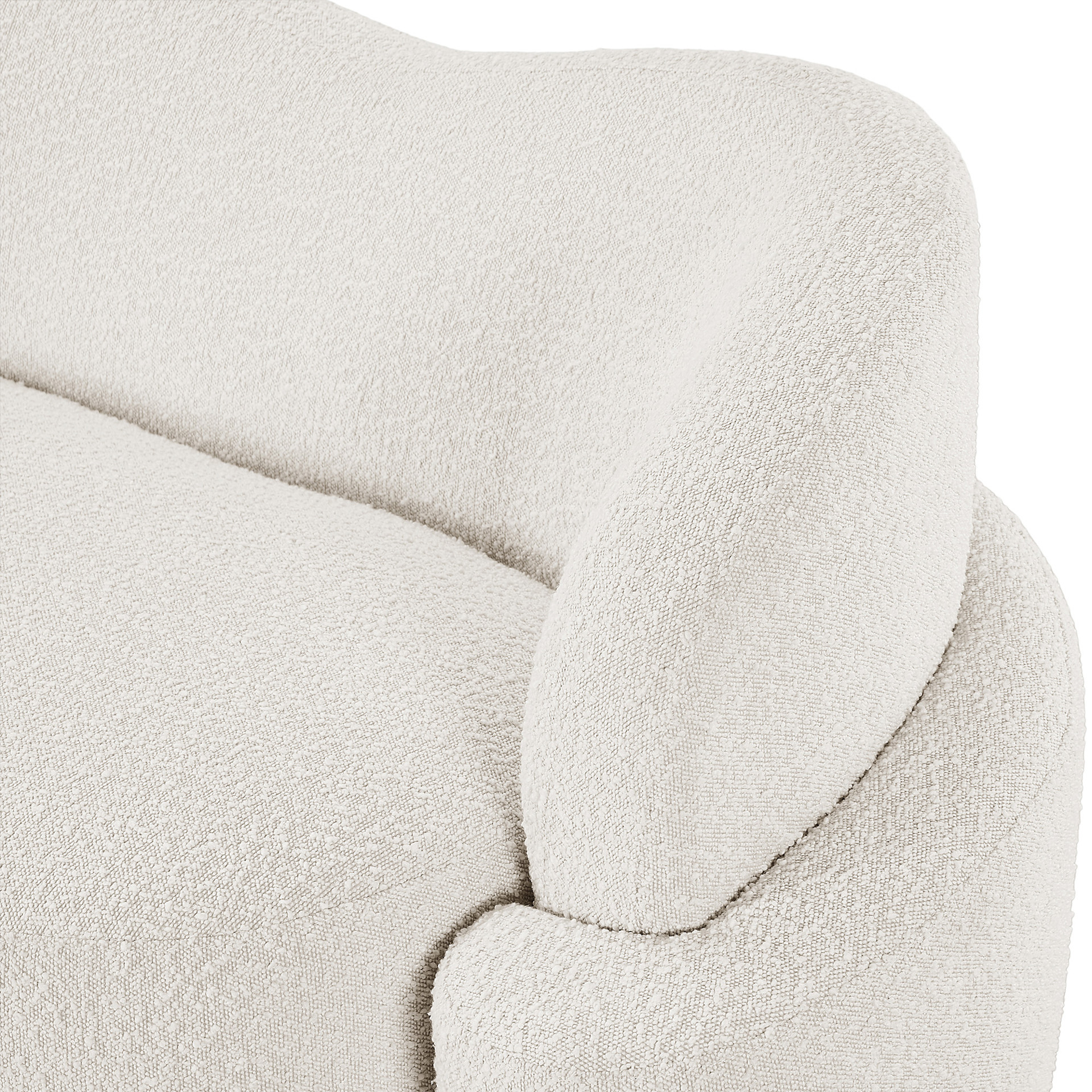 A delight to come home to at the end of the day, this sofa features a curved seat and back for a modish look and its covered in rich cream boucle fabric for softness you can appreciate.