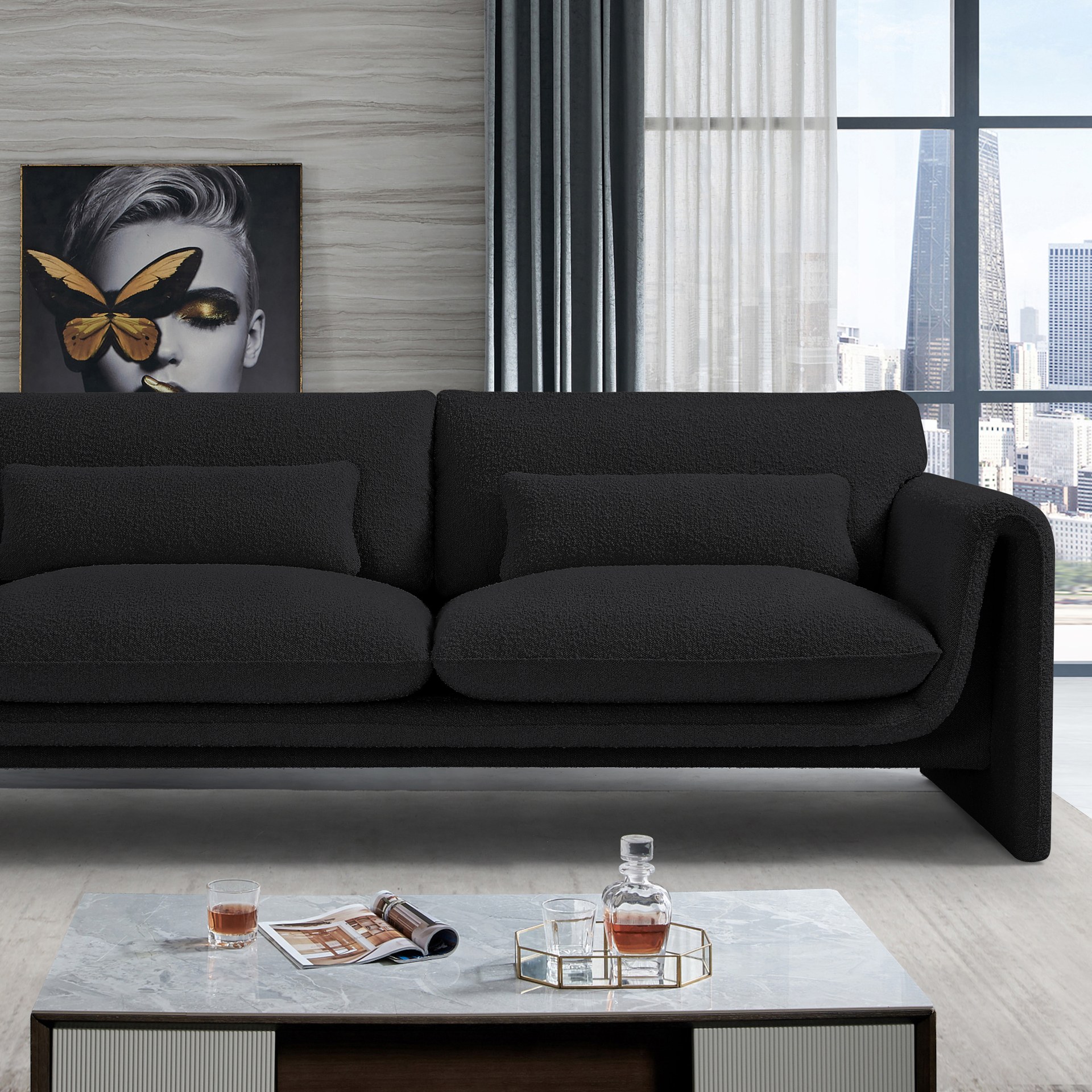 Stylus Black Boucle Fabric Sofa