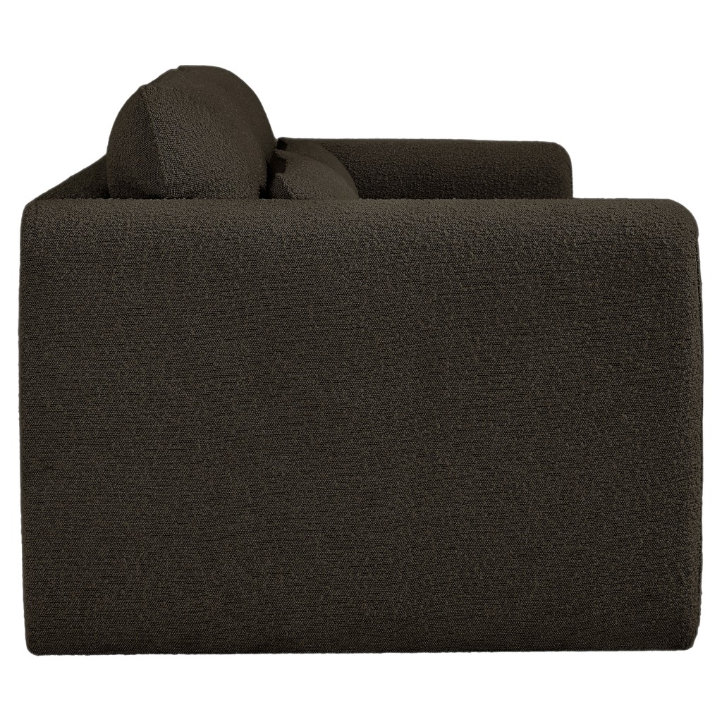 Thickly padded seat and back cushions cradle your body in supportive comfort while the rich brown boucle fabric caresses the skin and leaves you feeling relax and recharged.