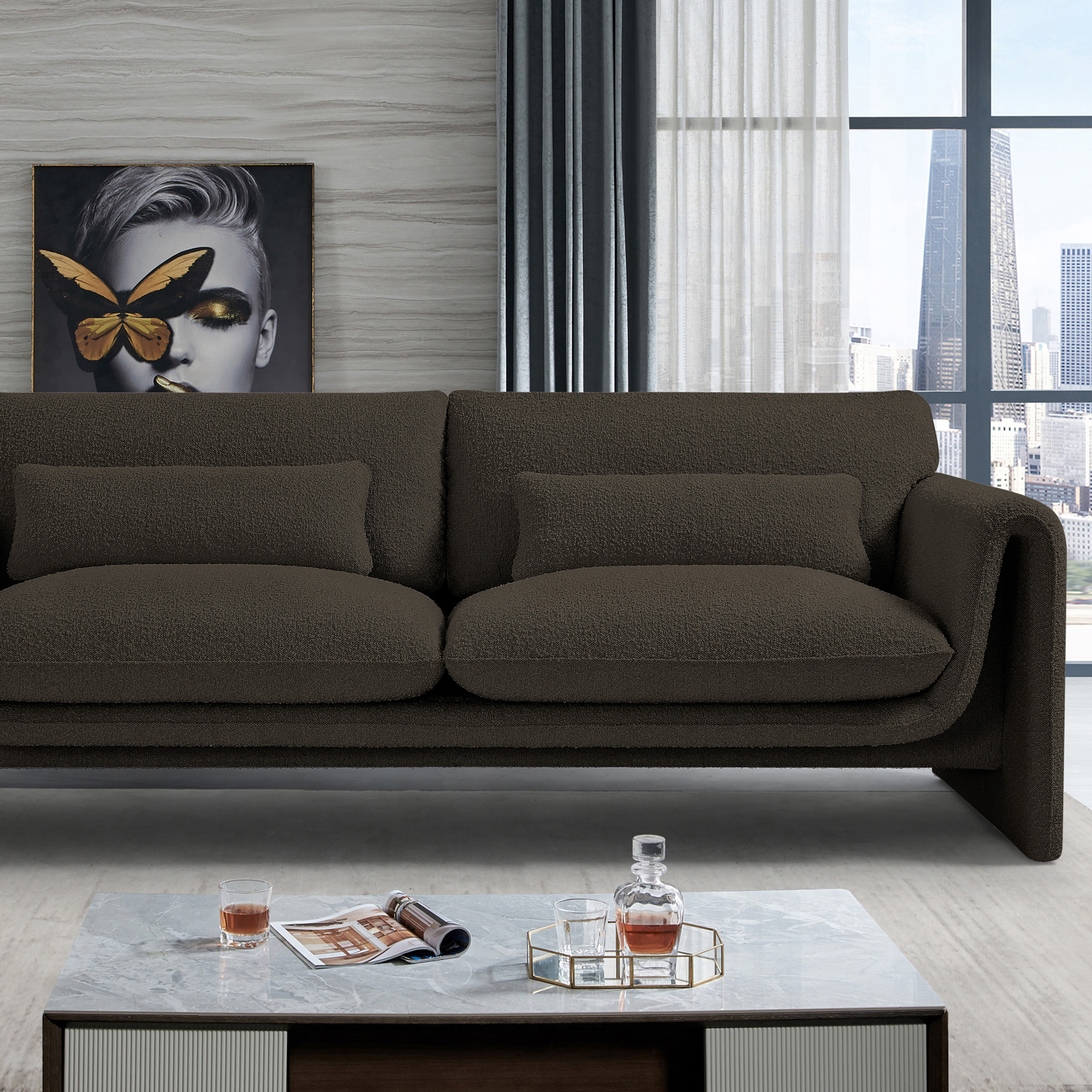 Stylus Brown Boucle Fabric Sofa Meridian Furniture 198BROWN-S