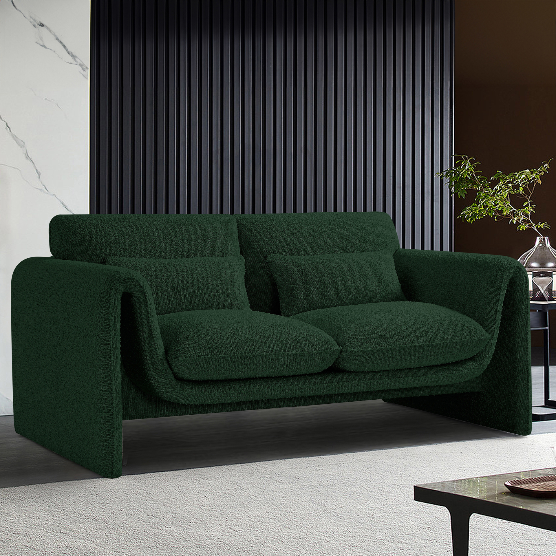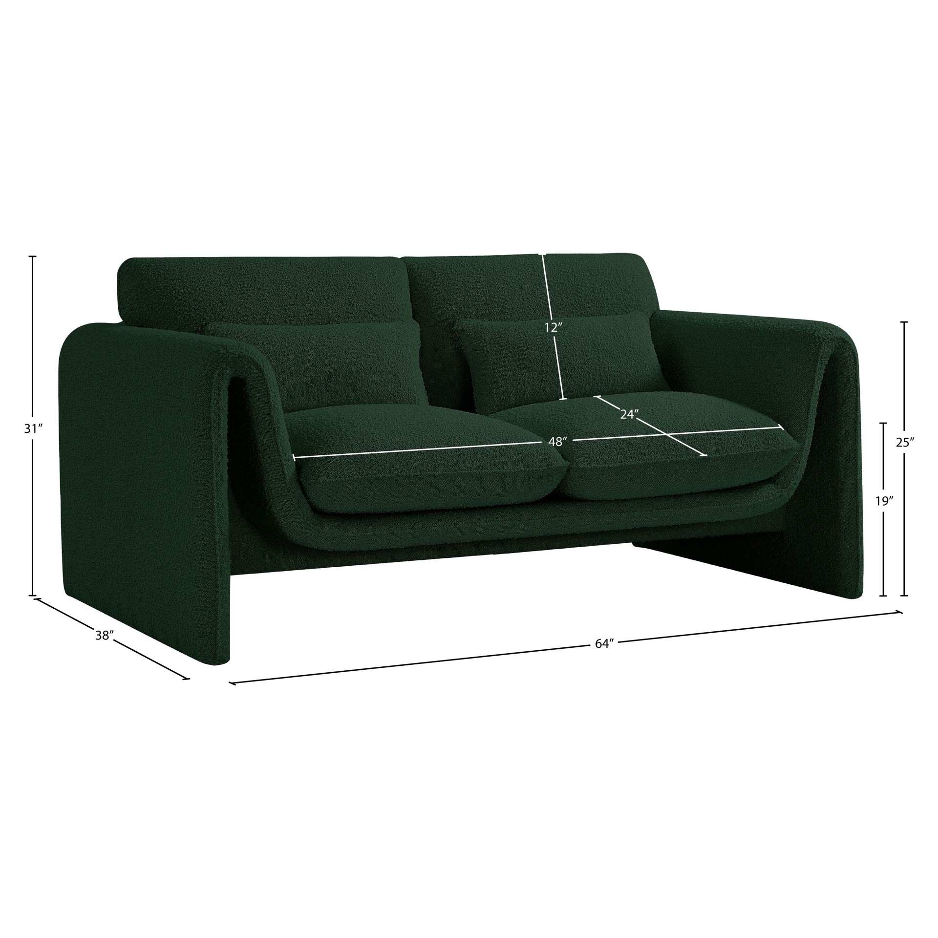 Stylus Green Boucle Fabric Loveseat Meridian Furniture 198GREEN-L