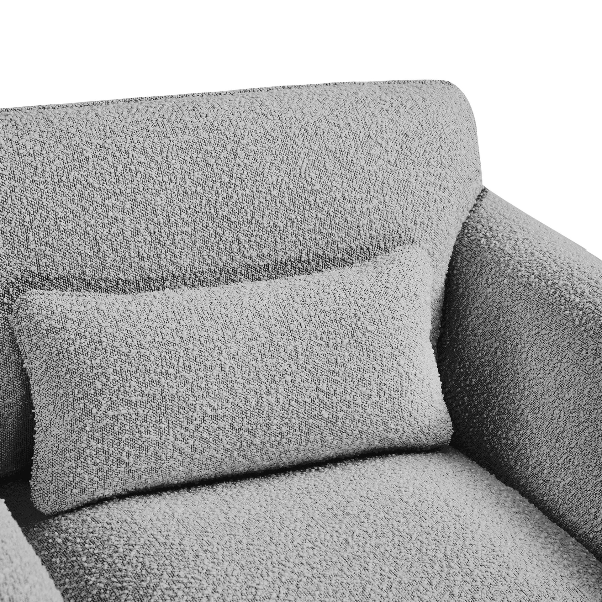 Thickly padded seat and back cushions cradle your body in supportive comfort while the rich grey boucle fabric caresses the skin and leaves you feeling relax and recharged.